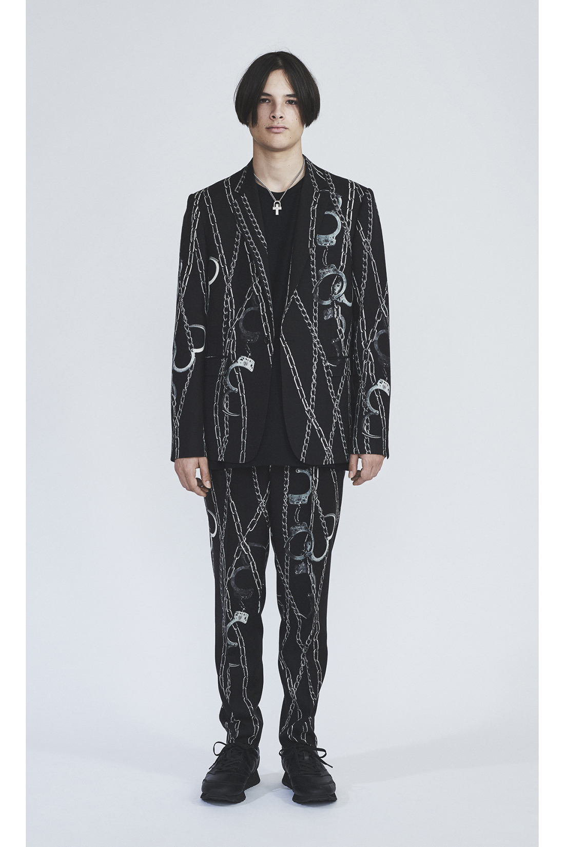 ダン・コーレンの作品から着想し、拘束具を抽象的に捉え再構築した柄をインクジェットでプリントしています。- WOOL GABARDINE INKJET CHAIN AND HANDCUFF:WOOL 100%