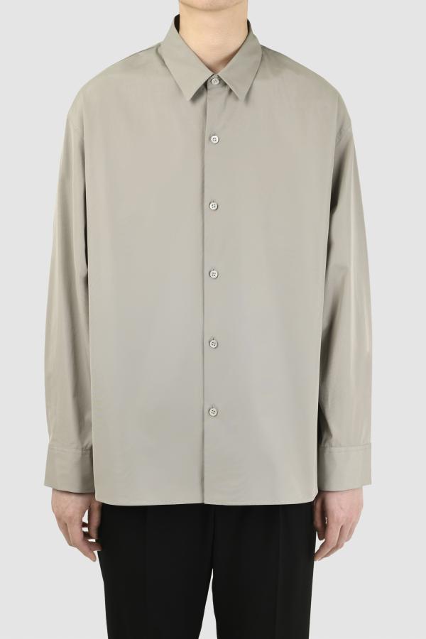 美しい光沢とやさしい風合いを持つブロード素材を使用したショートオープンカラーシャツ。