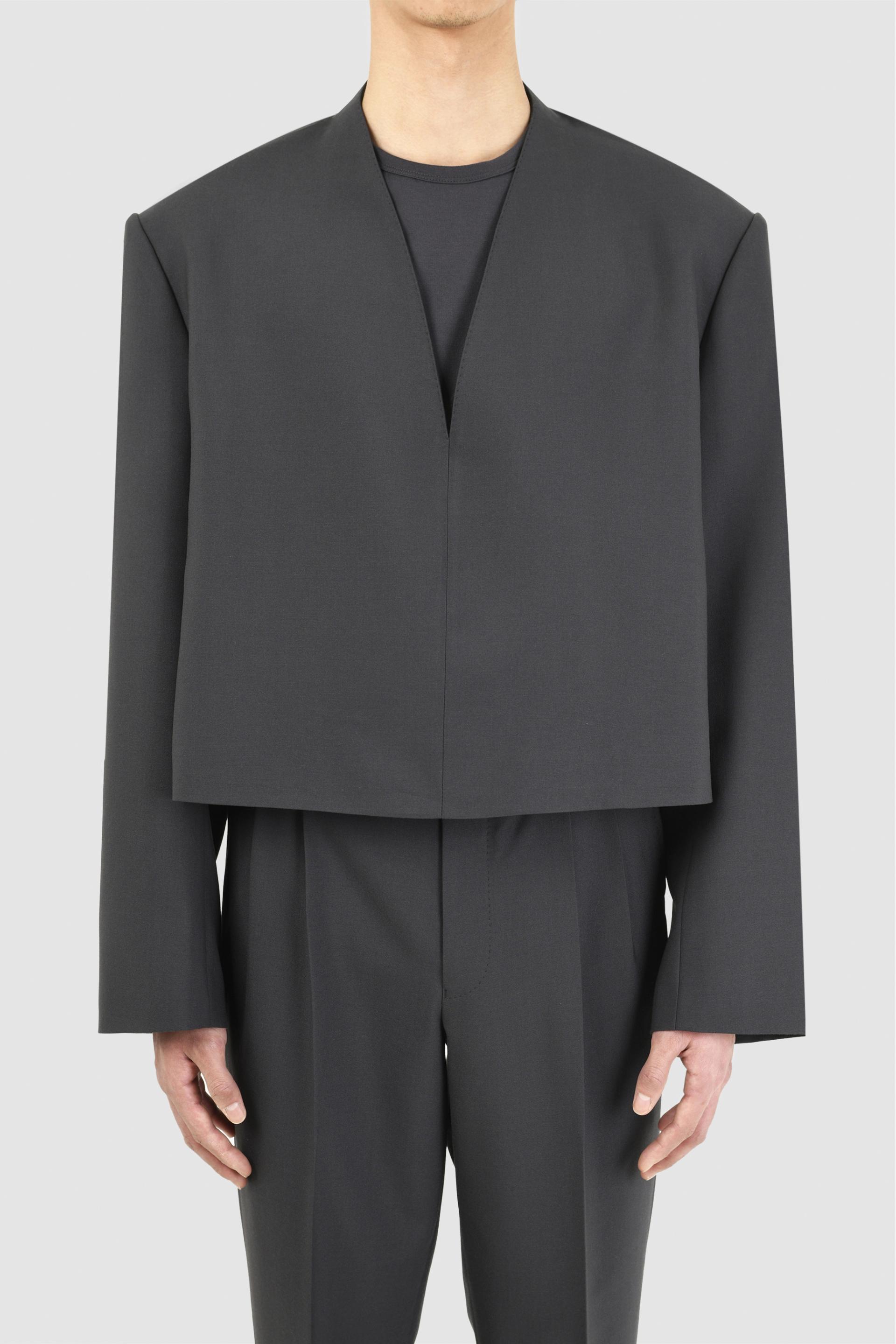 上品な光沢としなやかな風合いを持つウールギャバ素材を使用したプルオーバージャケット。