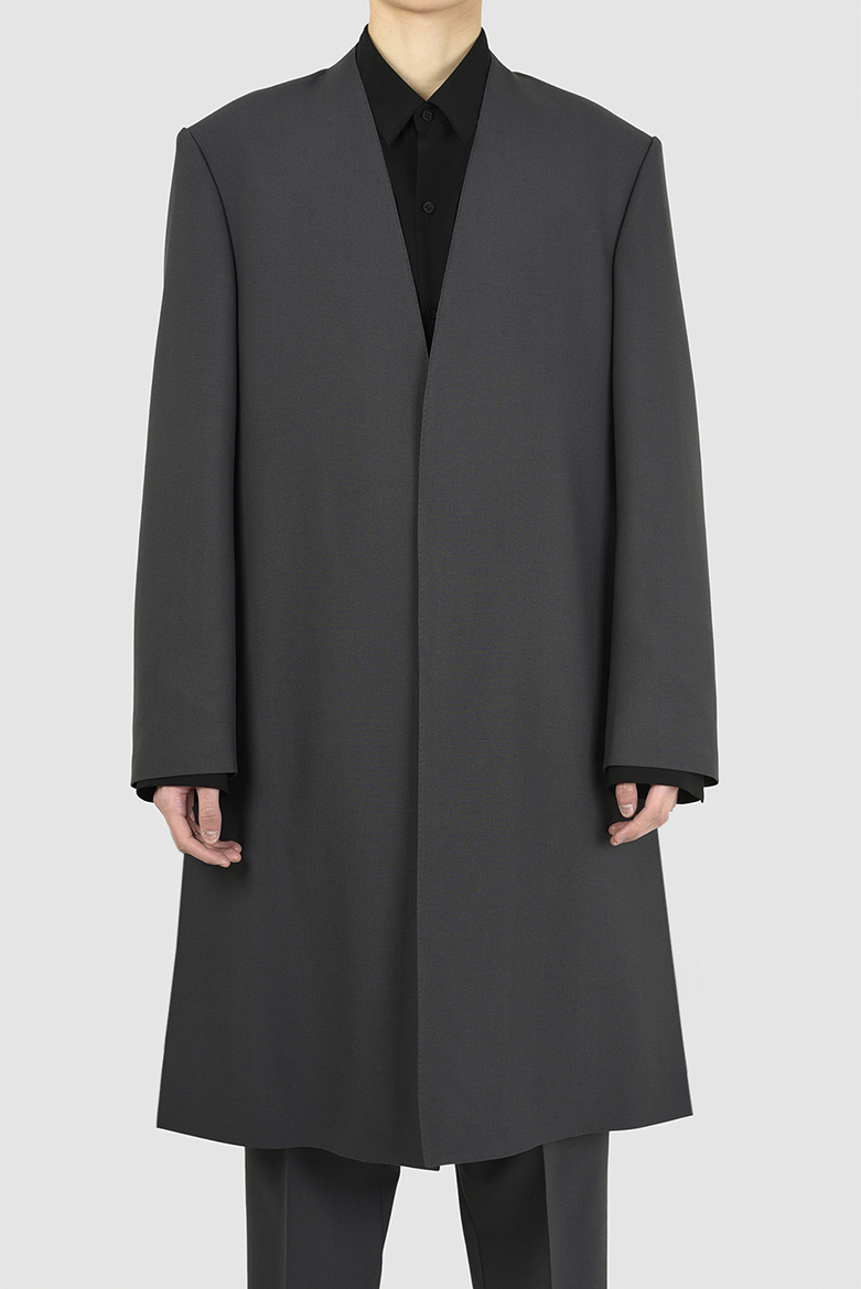 COLLARLESS FLARE LONG JACKET