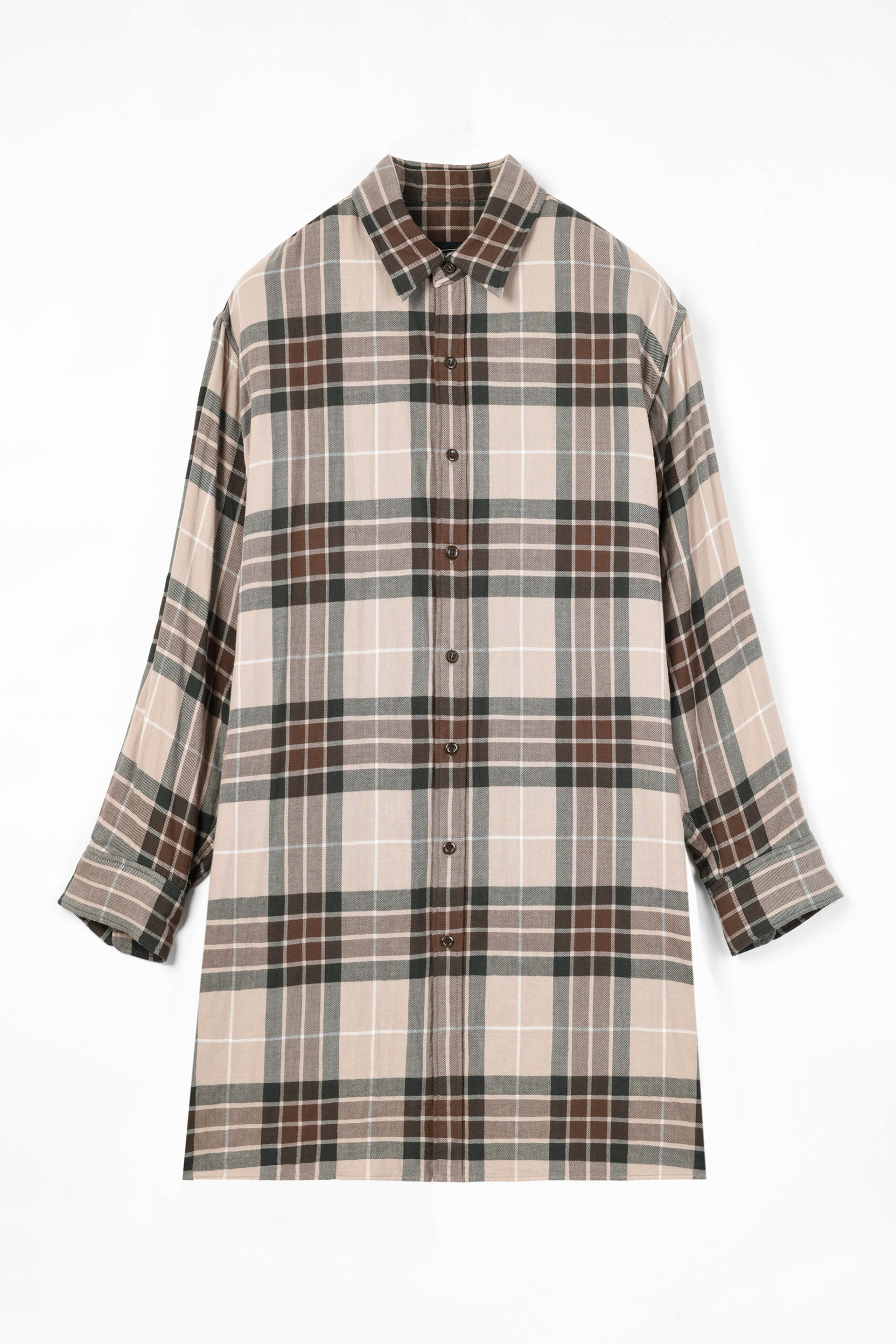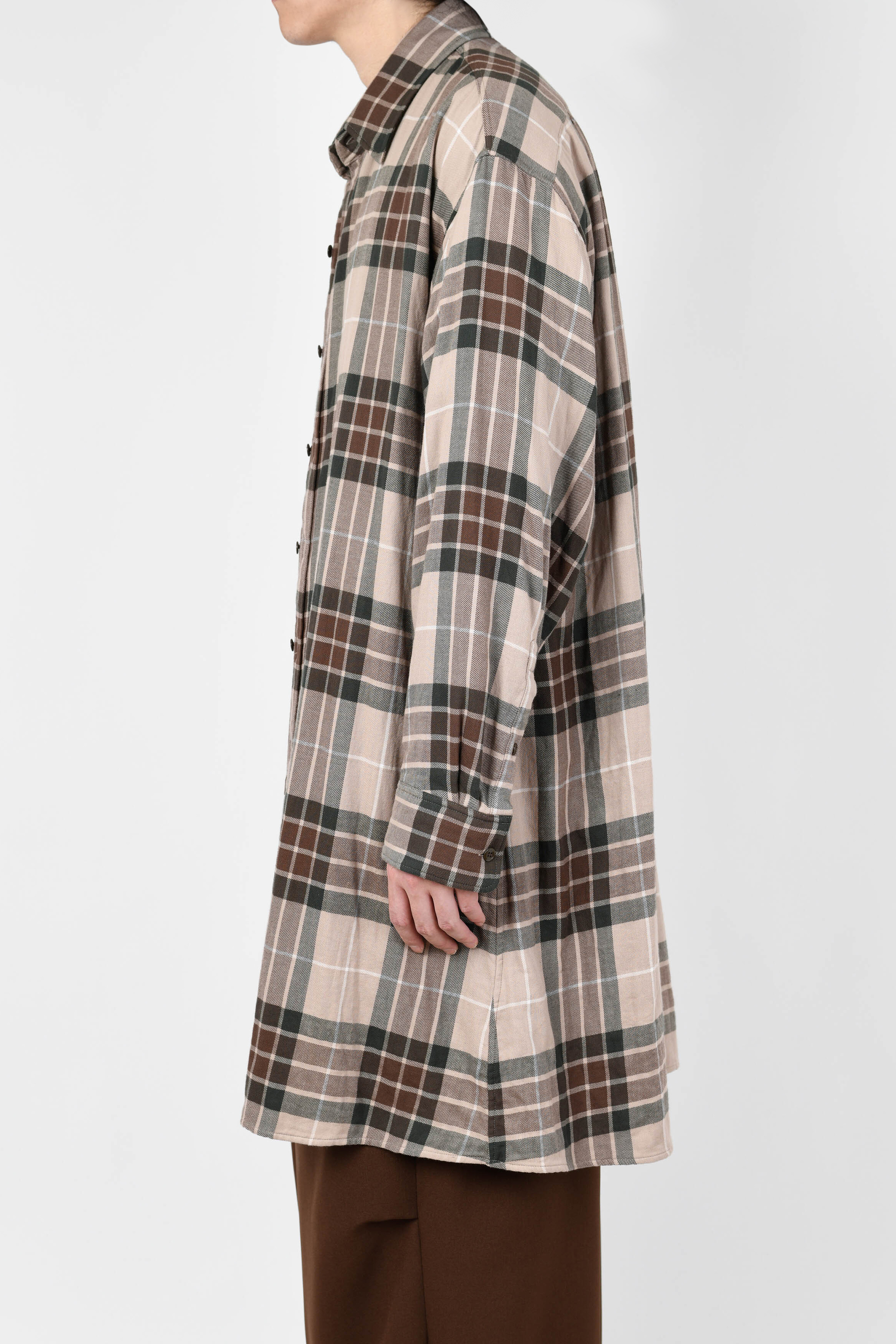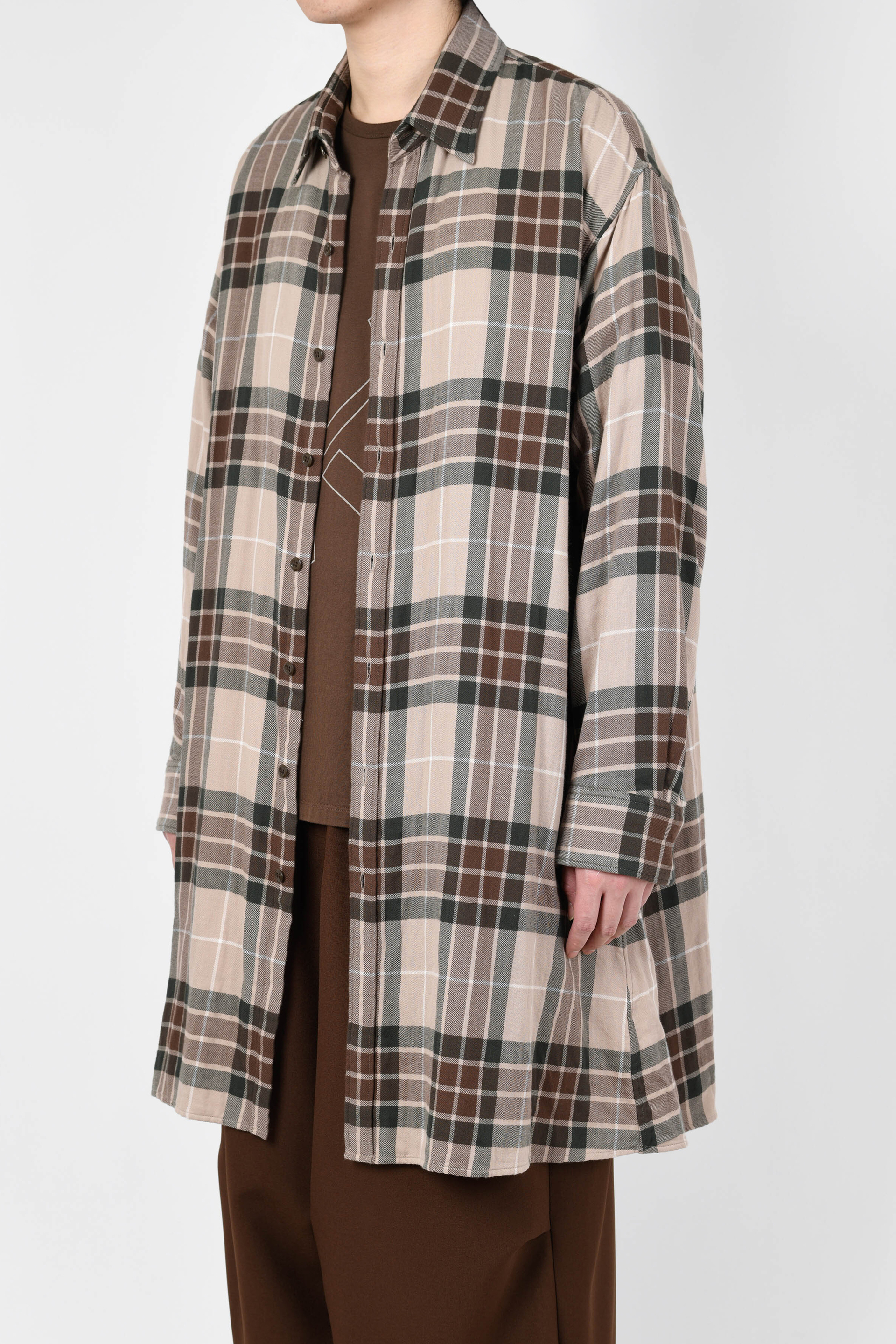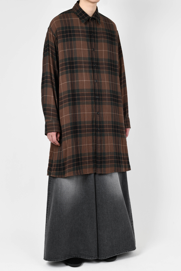 パンクチェック柄のガーゼ素材を使用したロングシャツ。