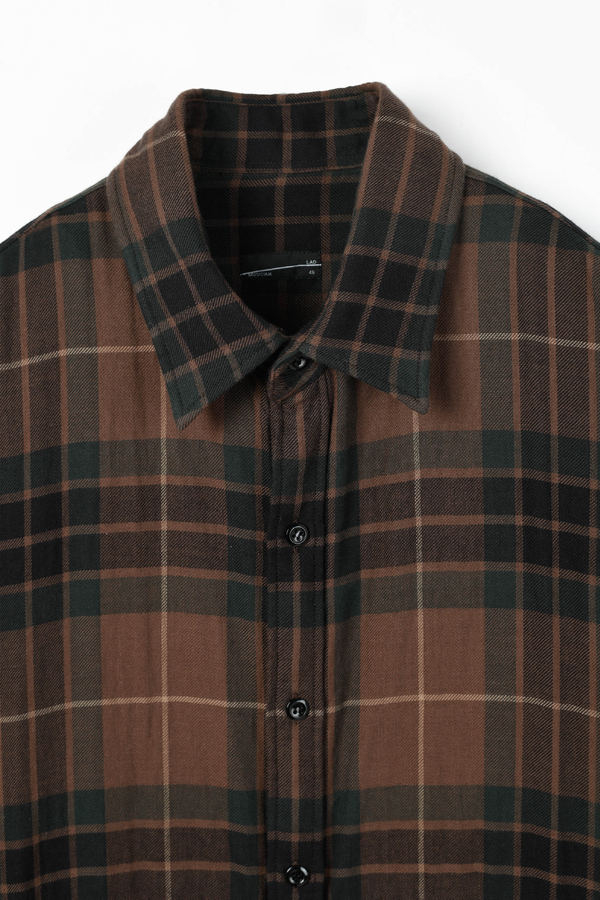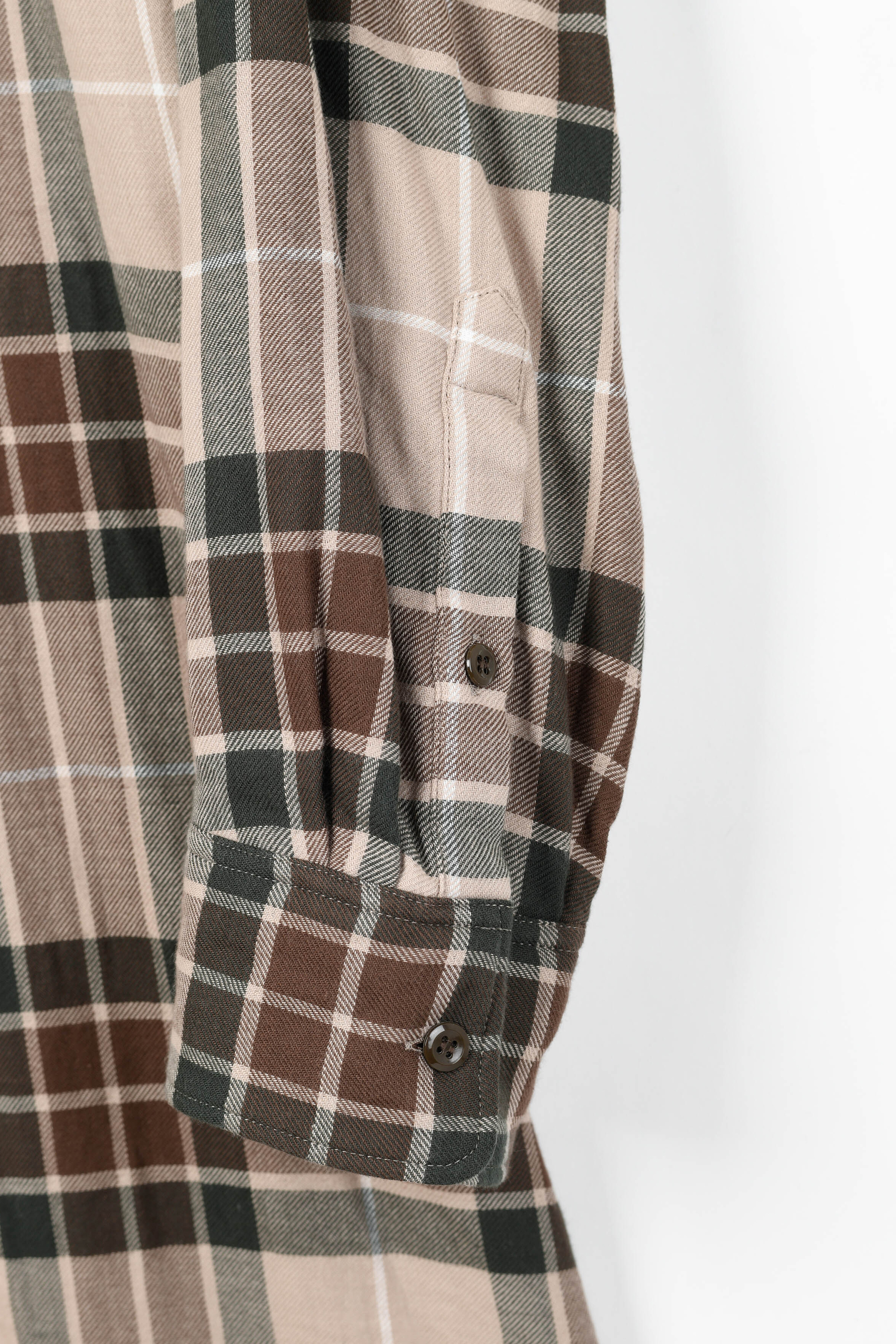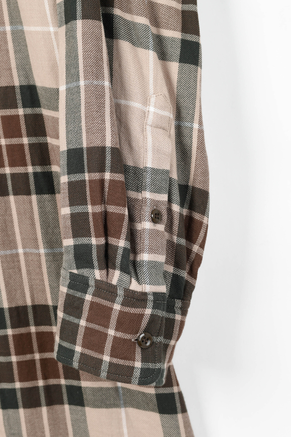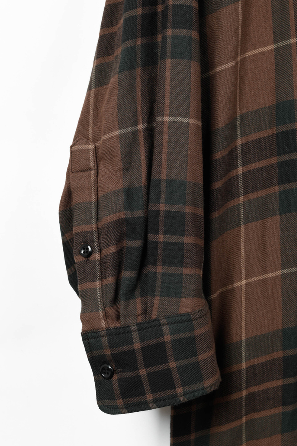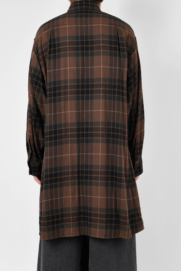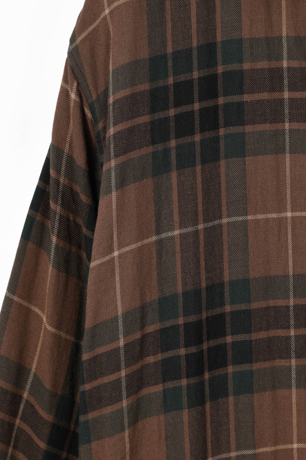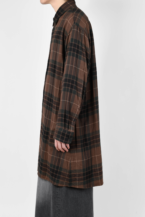 パンクチェック柄のガーゼ素材を使用したロングシャツ。