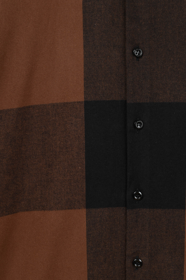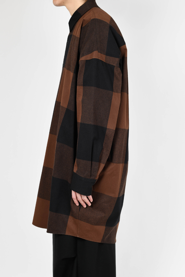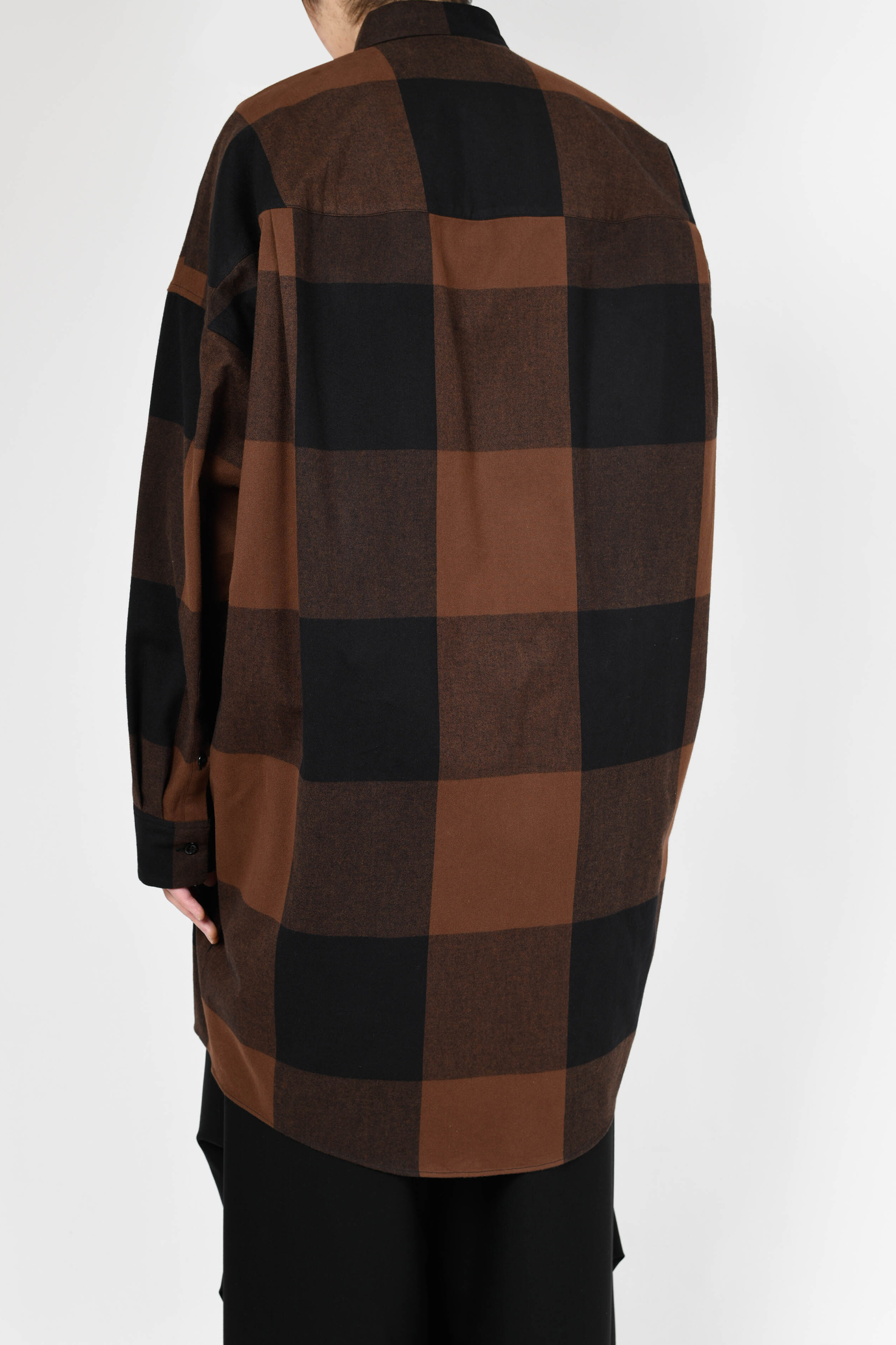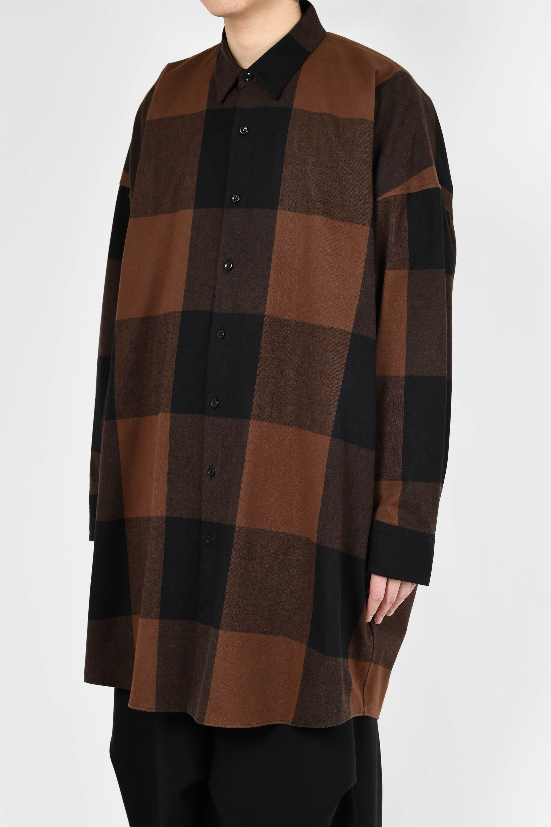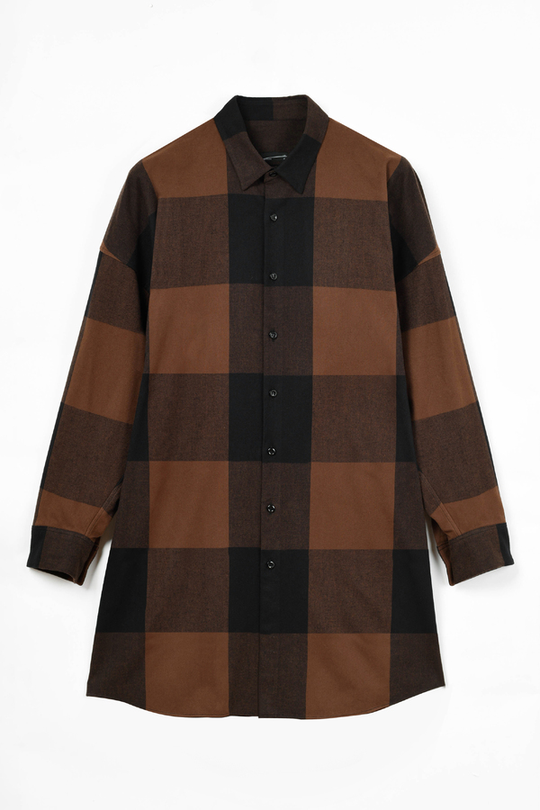 ブロックチェック柄のフランネル素材を使用したロングシャツ。
