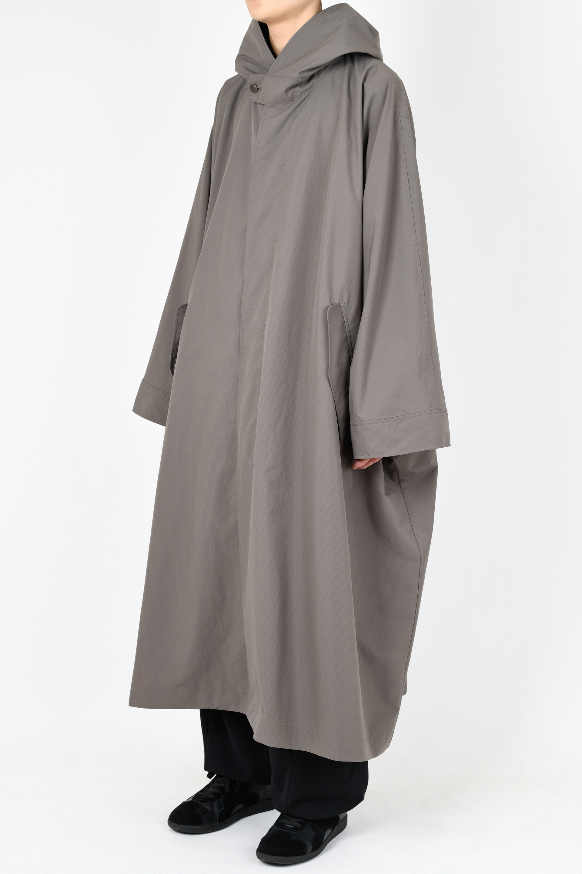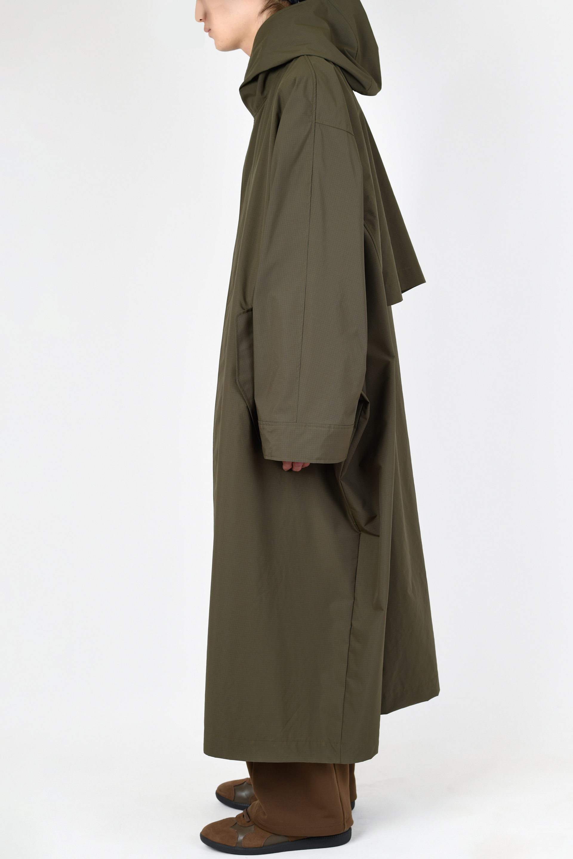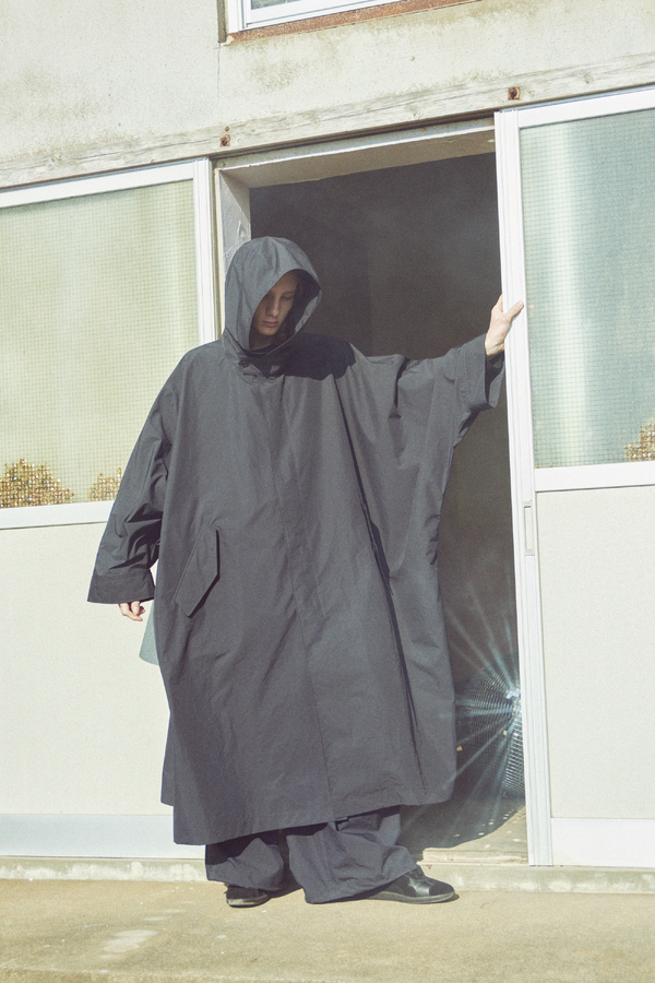 軽くしなやかな高密度ポリエステル素材を使用したフーデッドコート。