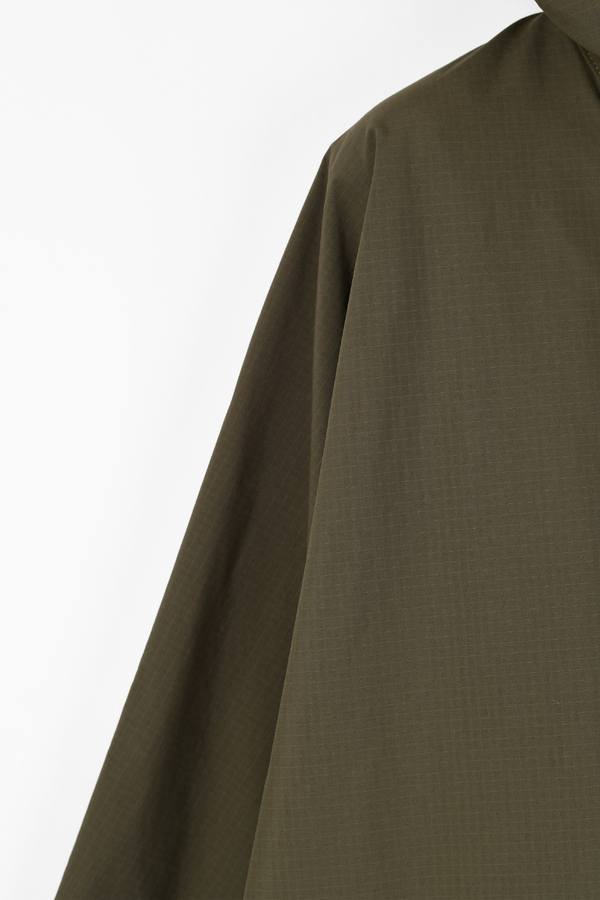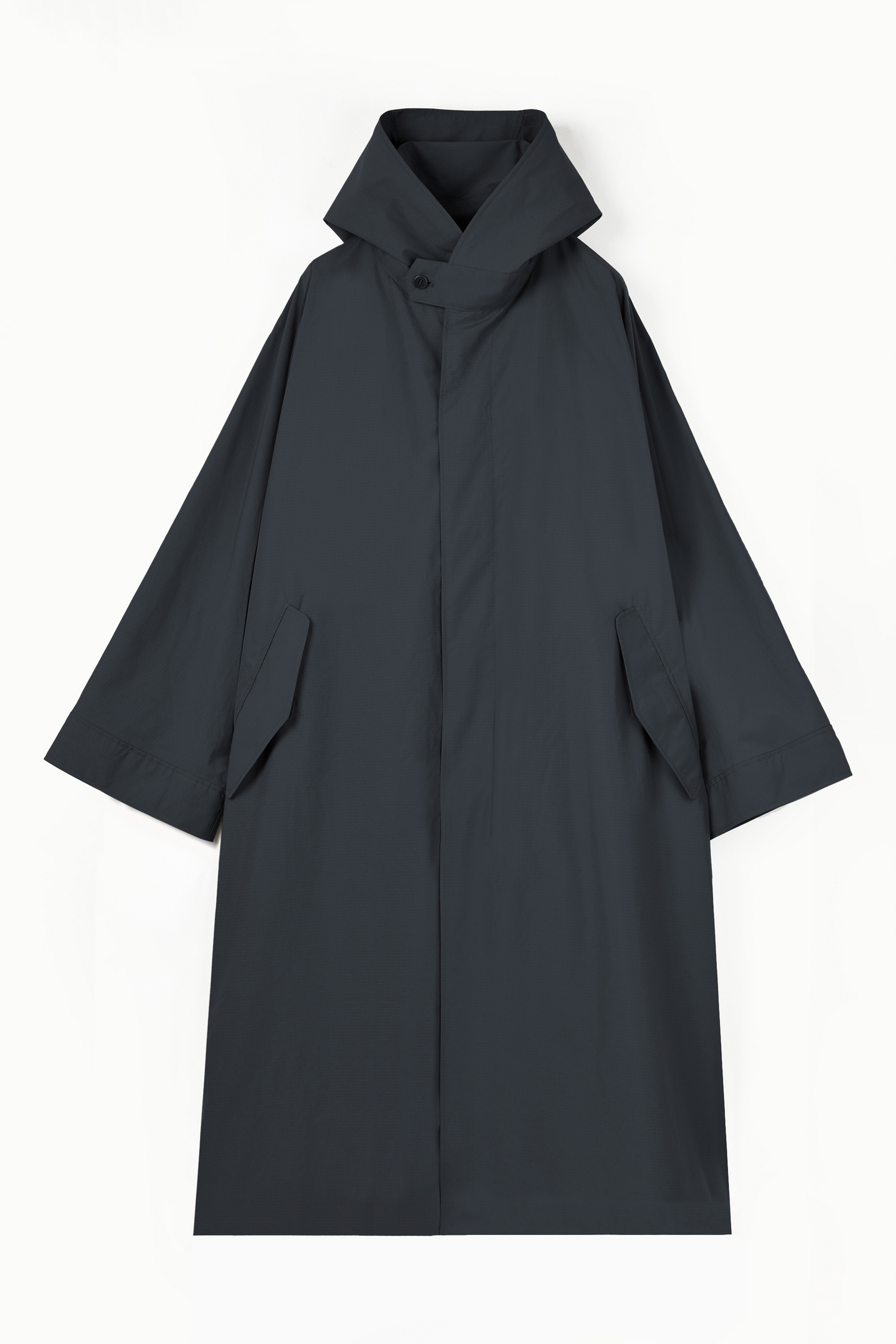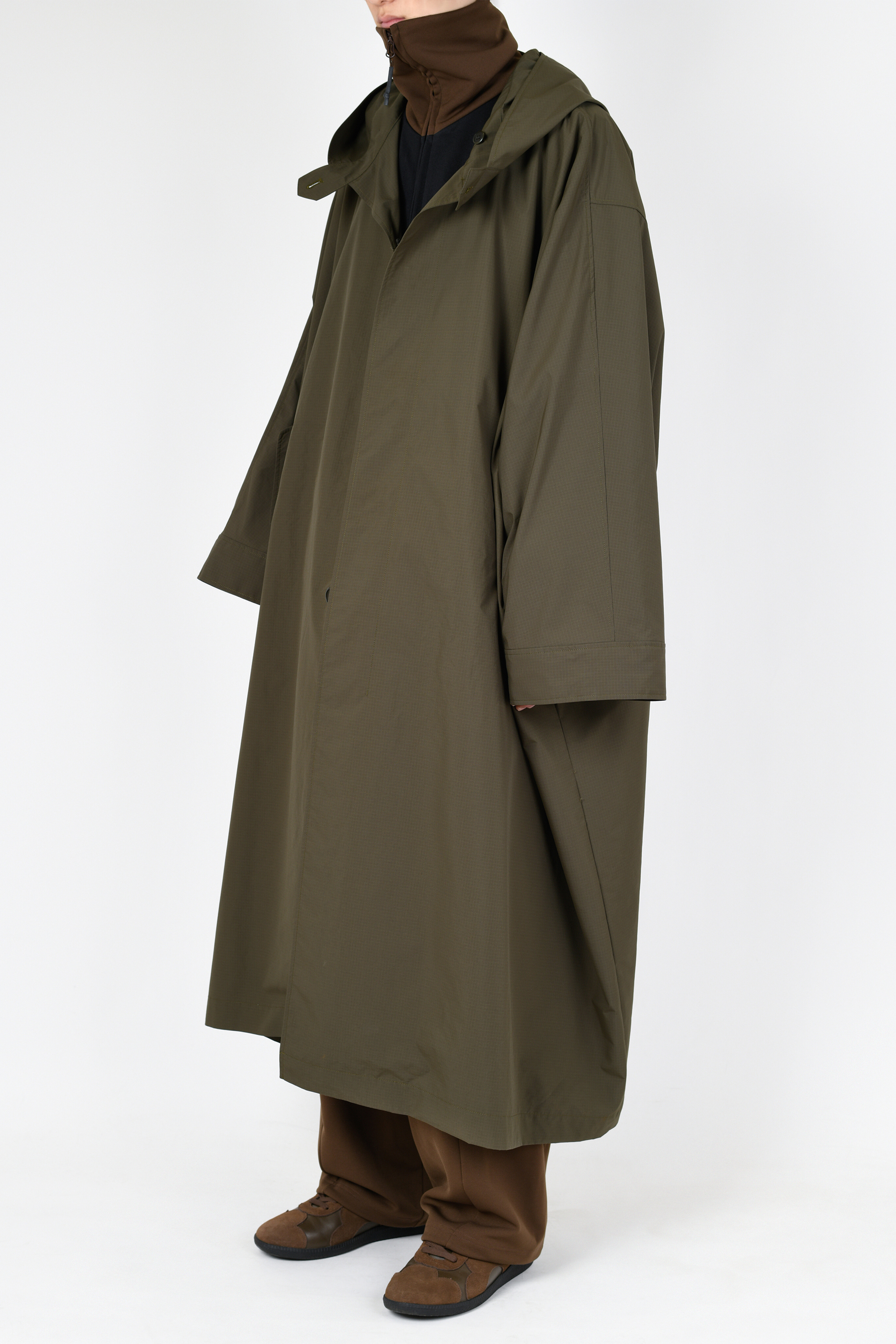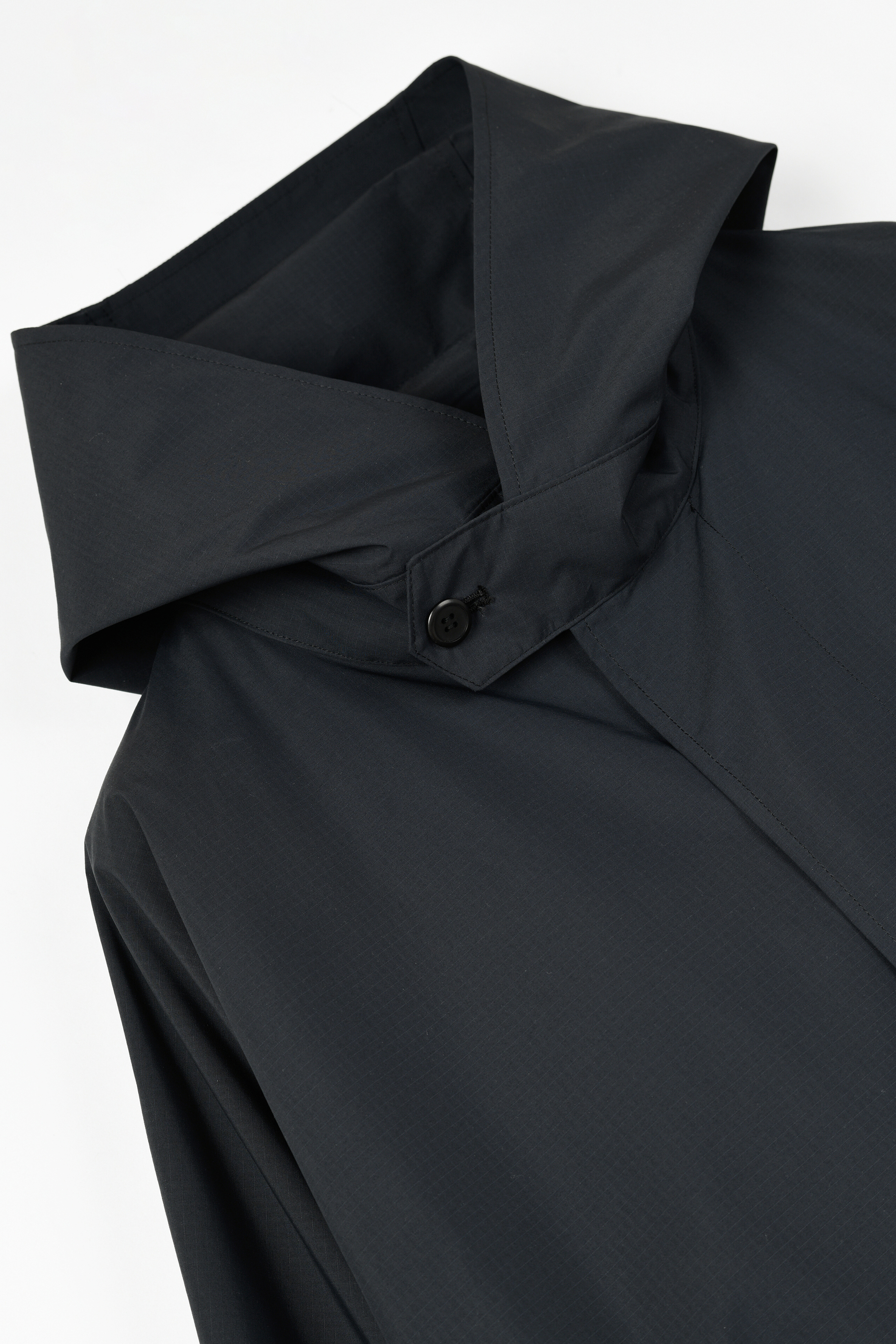 軽くしなやかな高密度ポリエステル素材を使用したフーデッドコート。