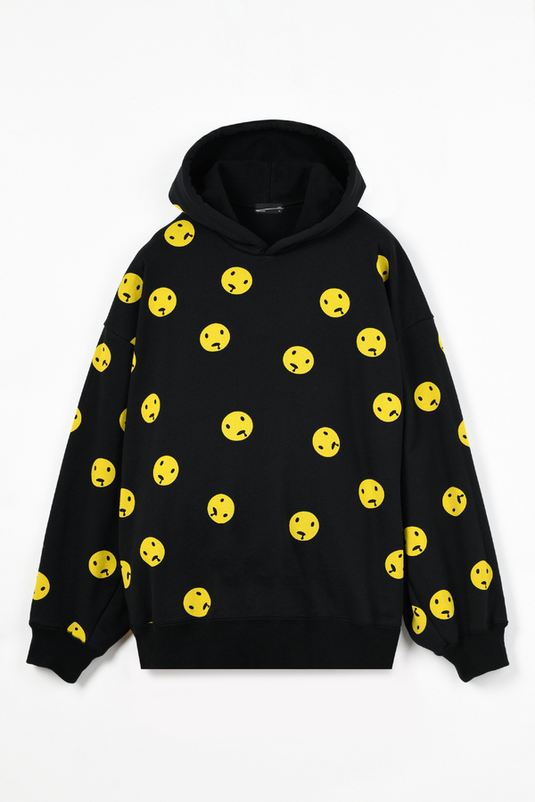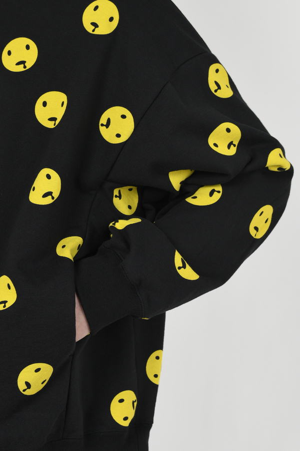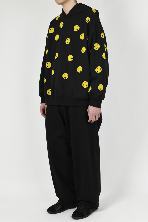 ニヒくん柄をプリントした裏毛素材を使用したプルオーバーパーカー。