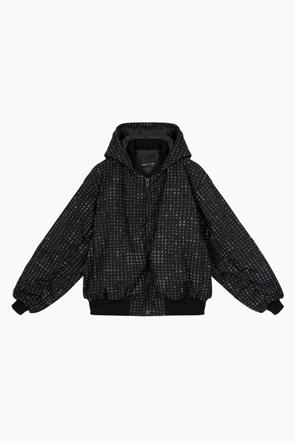 軽量で膨らみのあるポリエステル糸を使用したポリエステルツイル素材を使用したアンコンビッグジャケット。