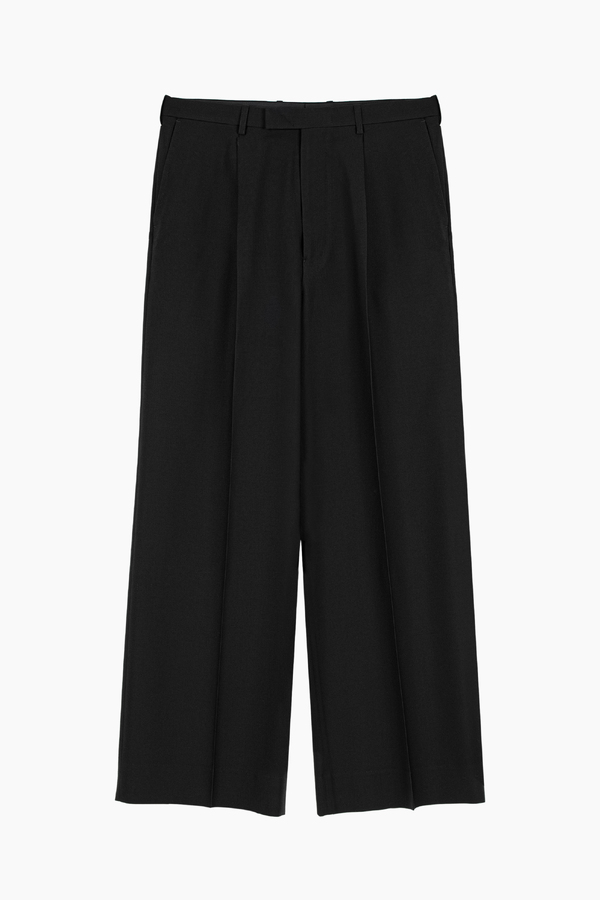 WOOL GABARDINE WIDE STRAIGHT SLACKS