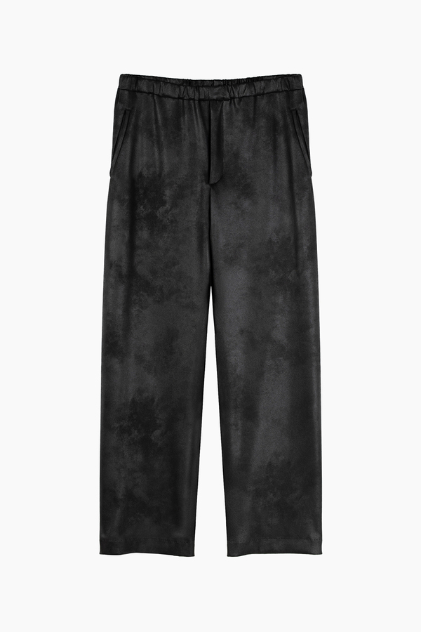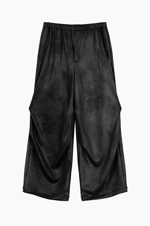STRETCH FAUX LEATHER JERSEY WIDE PANTS