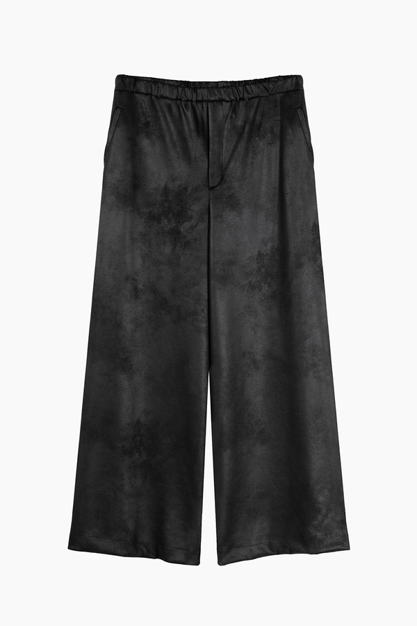 FAUX LAMBSKIN CROPPED WIDE-LEG PANTS