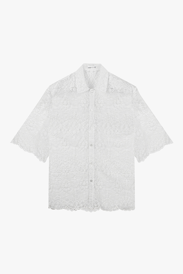 TULLE EMBROIDERY LACE SHORT SLEEVE SHIRT