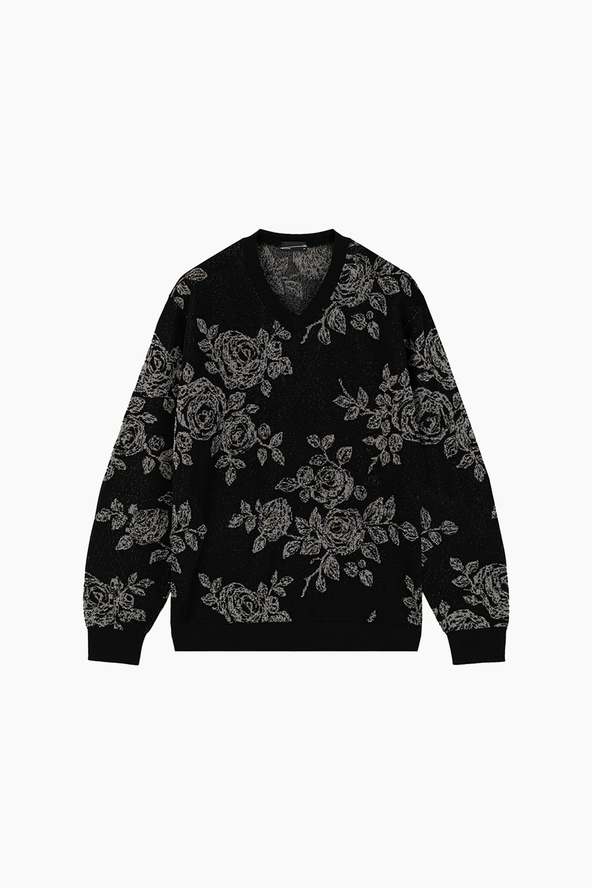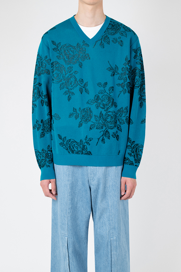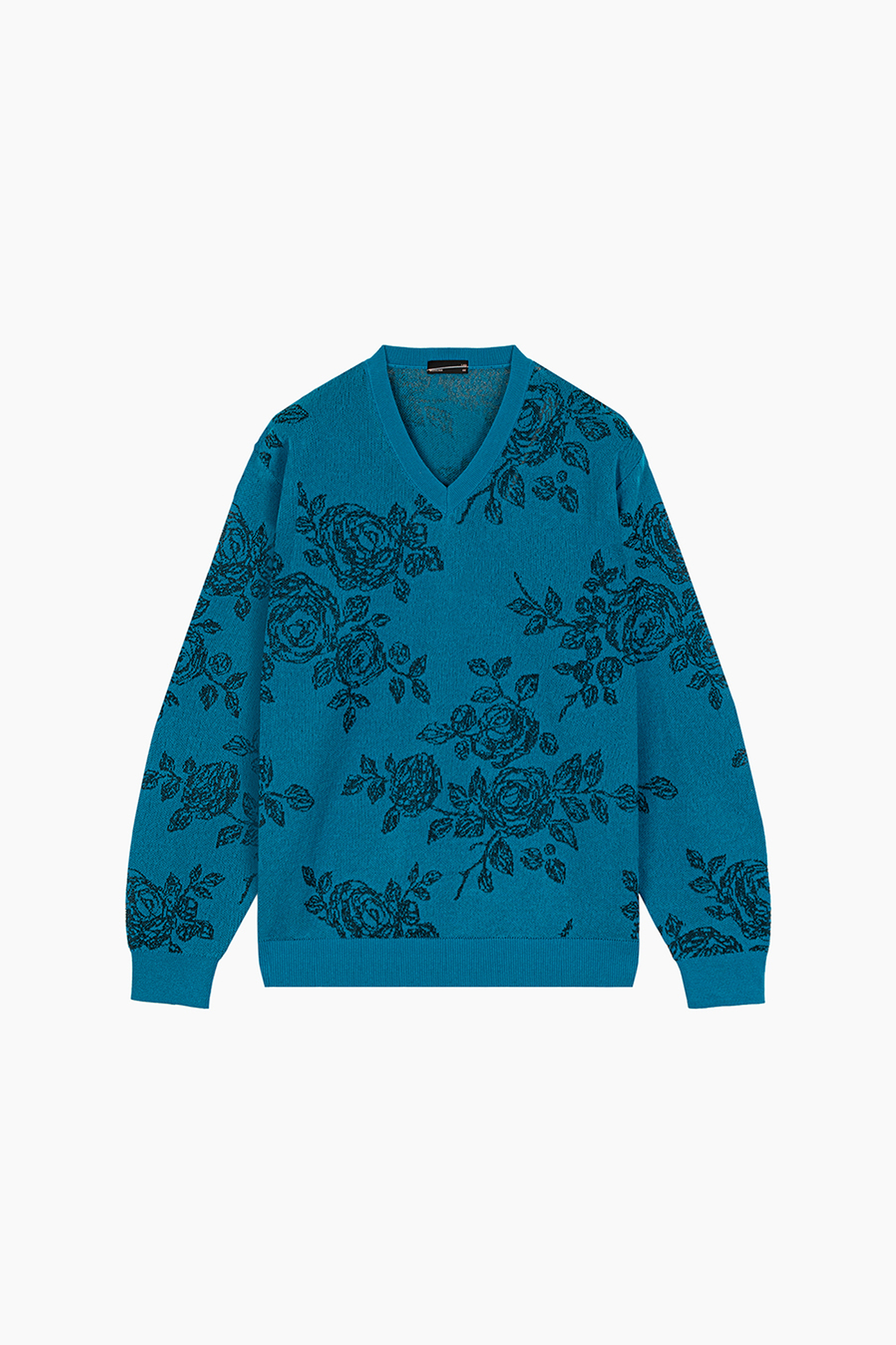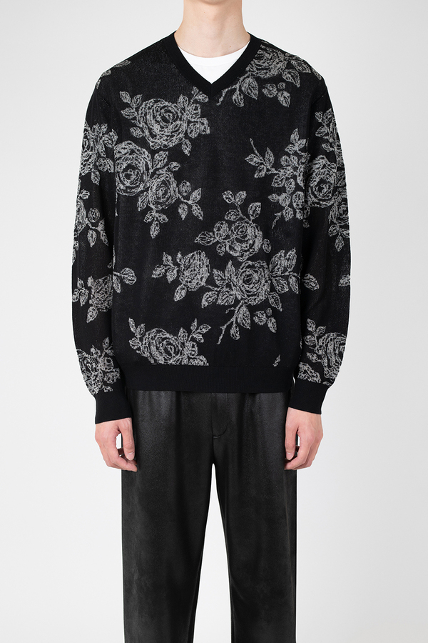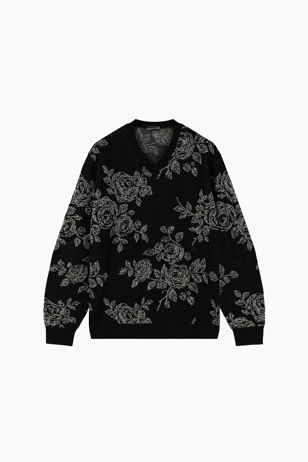 HAND-DRAWN FLOWER V-NECK PULLOVER