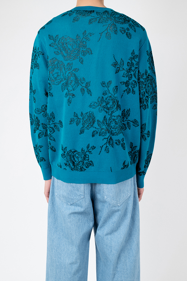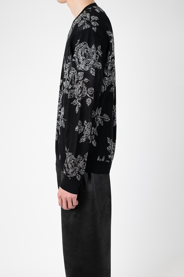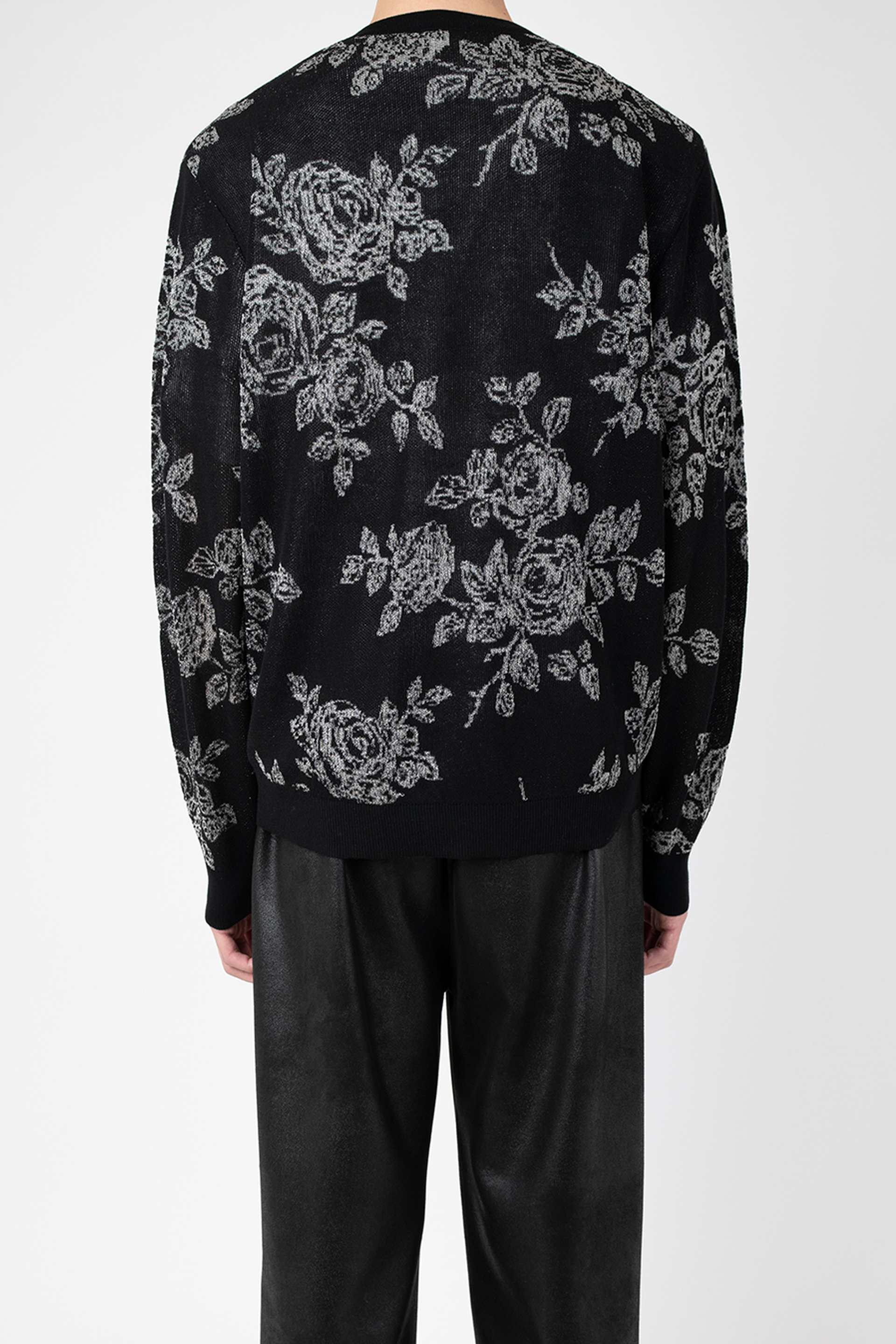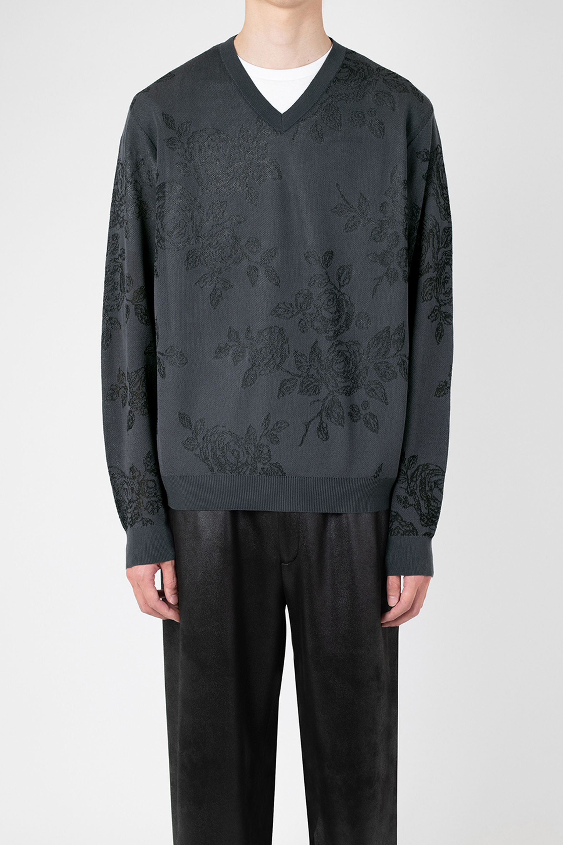 レギュラーフィットのプルオーバーニットです。- HIGH GAUGE SHEER JQ KNIT HAND-DRAWN FLOWER:COTTON 75% NYLON 19% POLYESTER 6%