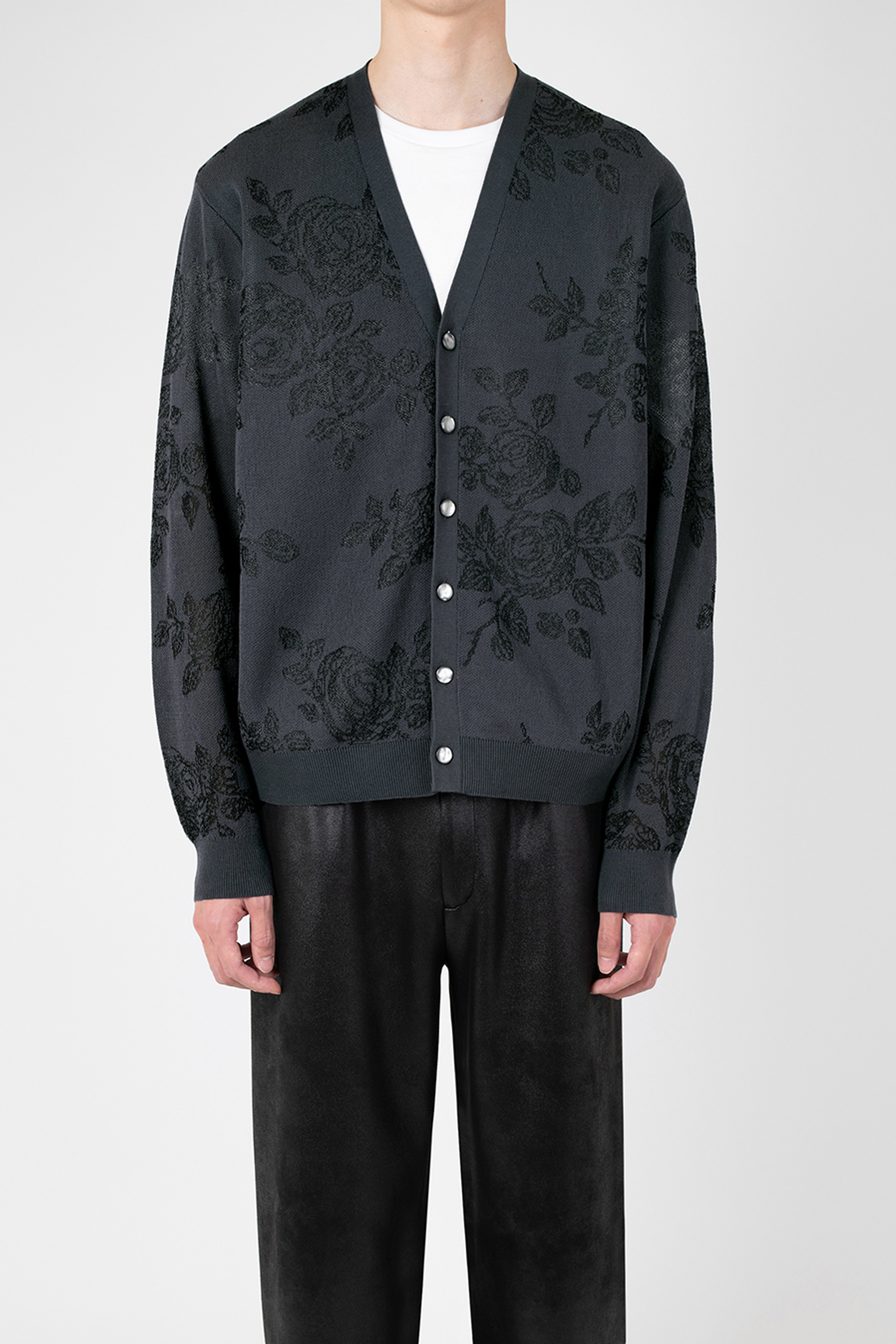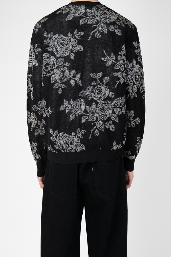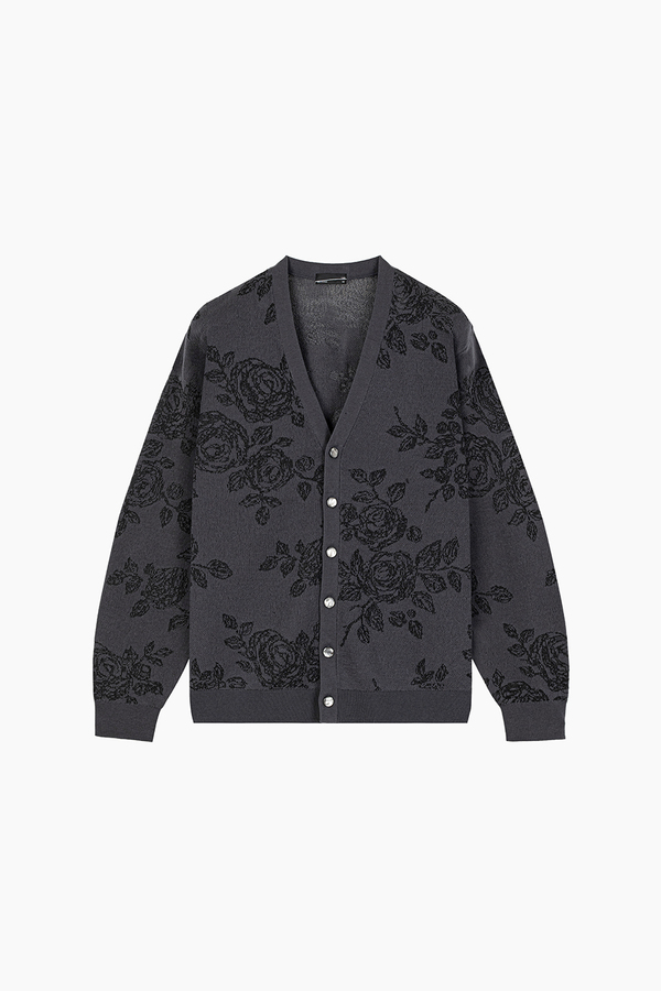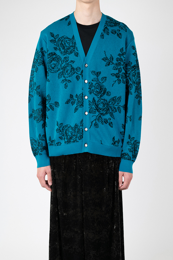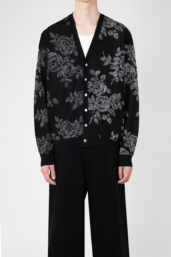 レギュラーフィットのカーディガンです。- HIGH GAUGE SHEER JQ KNIT HAND-DRAWN FLOWER:COTTON 75% NYLON 19% POLYESTER 6%