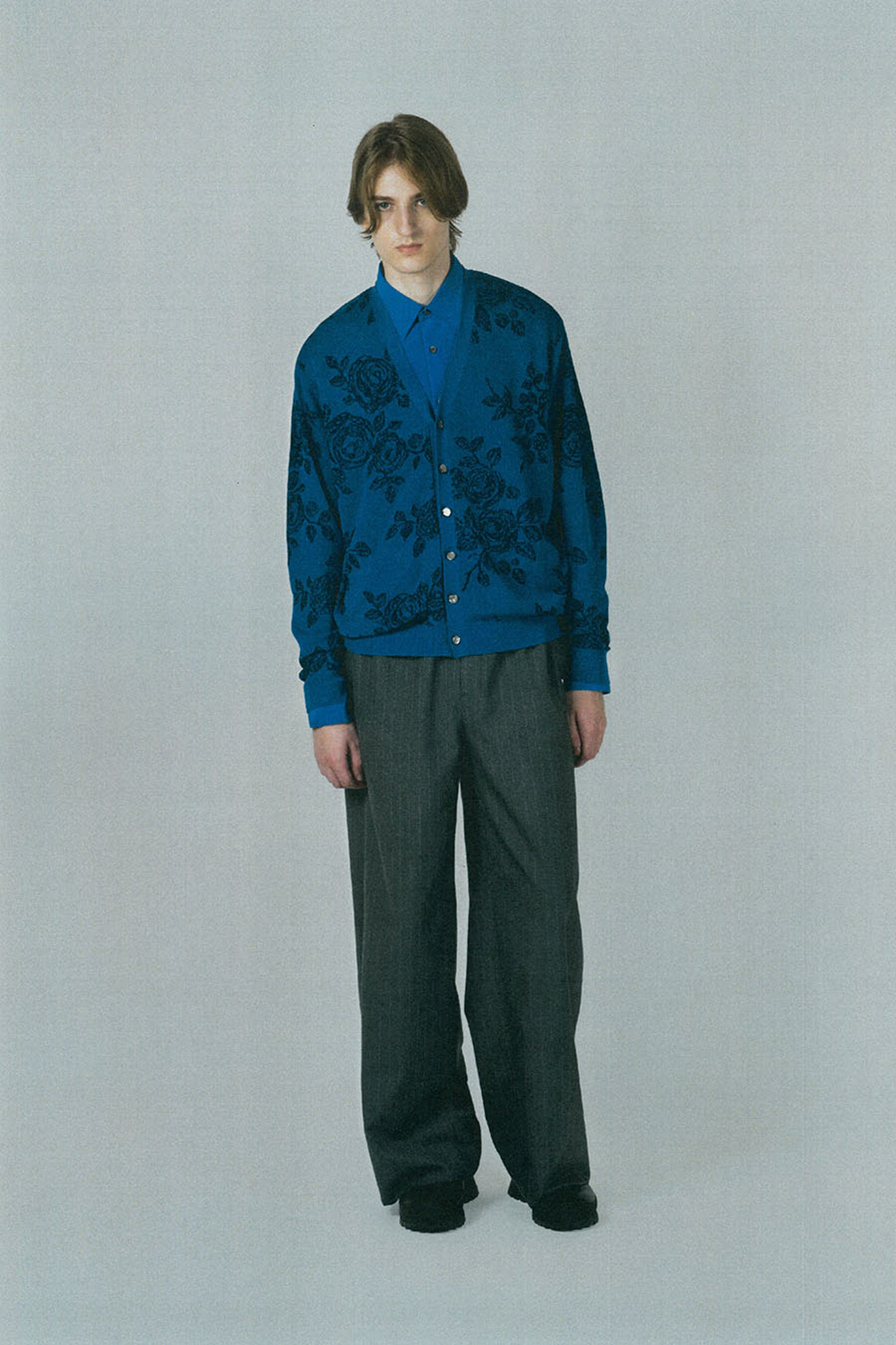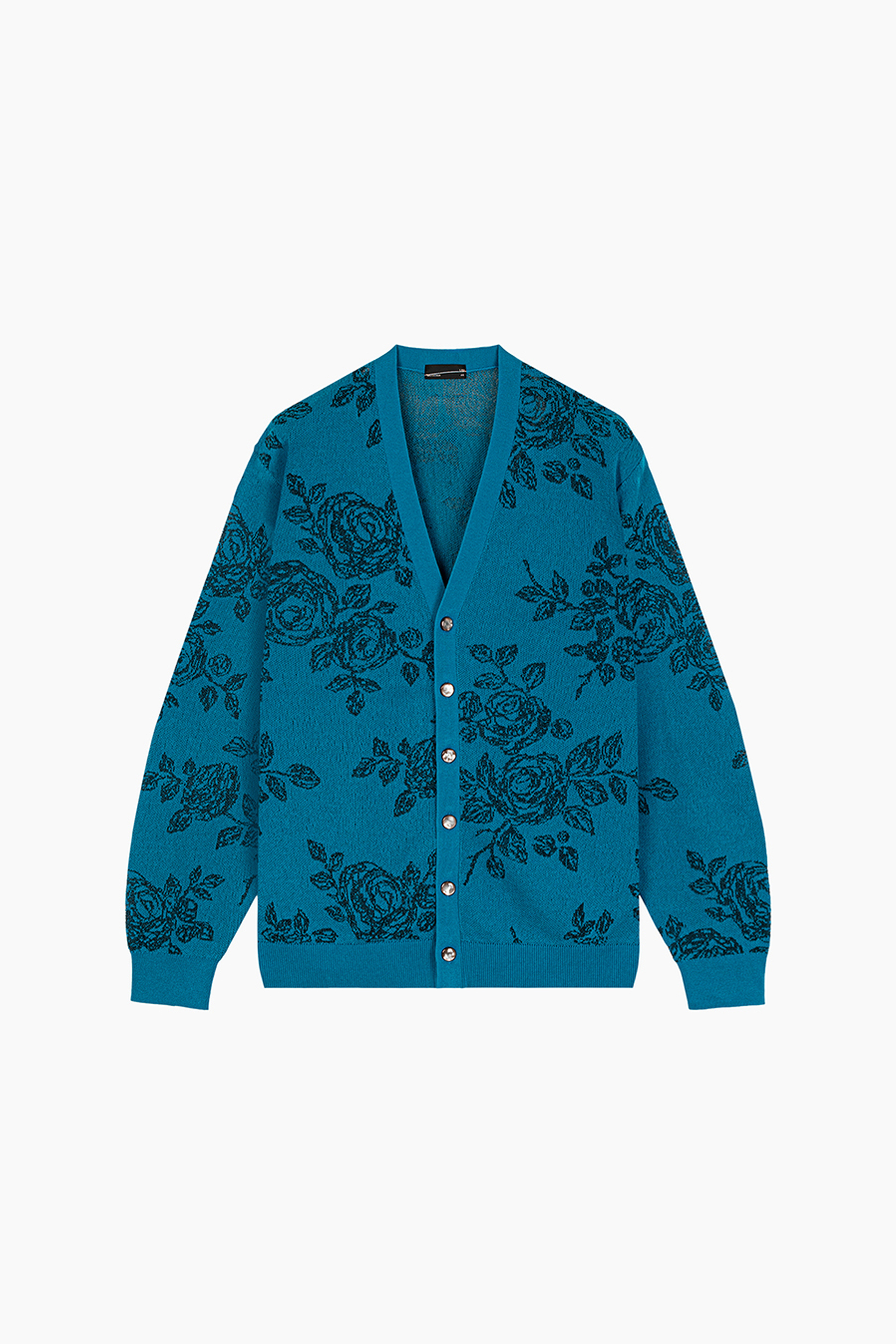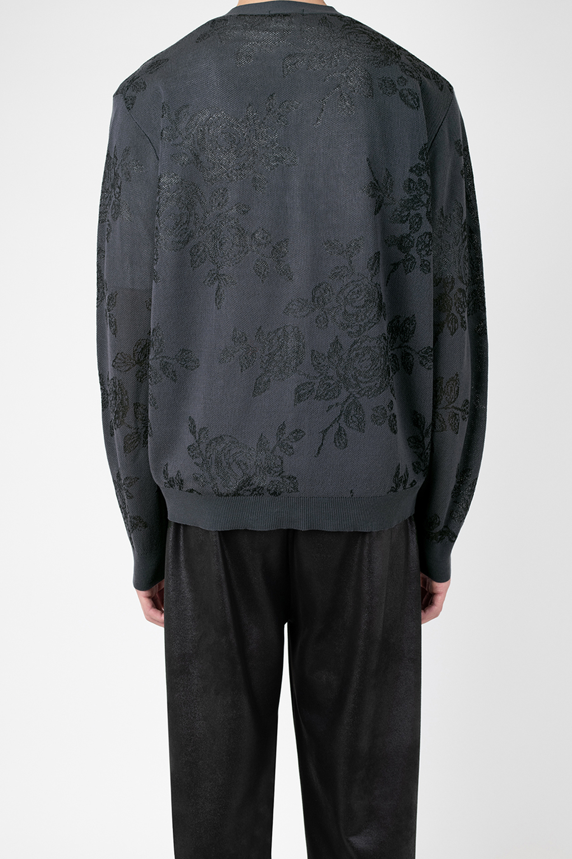 レギュラーフィットのカーディガンです。- HIGH GAUGE SHEER JQ KNIT HAND-DRAWN FLOWER:COTTON 75% NYLON 19% POLYESTER 6%