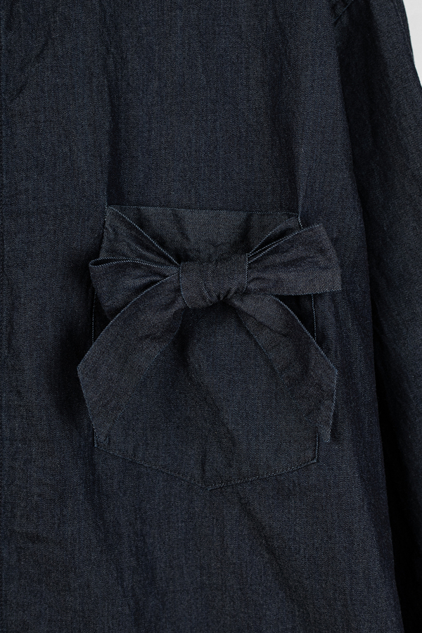 ポケット上部に重ねたリボンがポイントの、プレイフルなシャツです。- 4.5oz DENIM:COTTON 100%