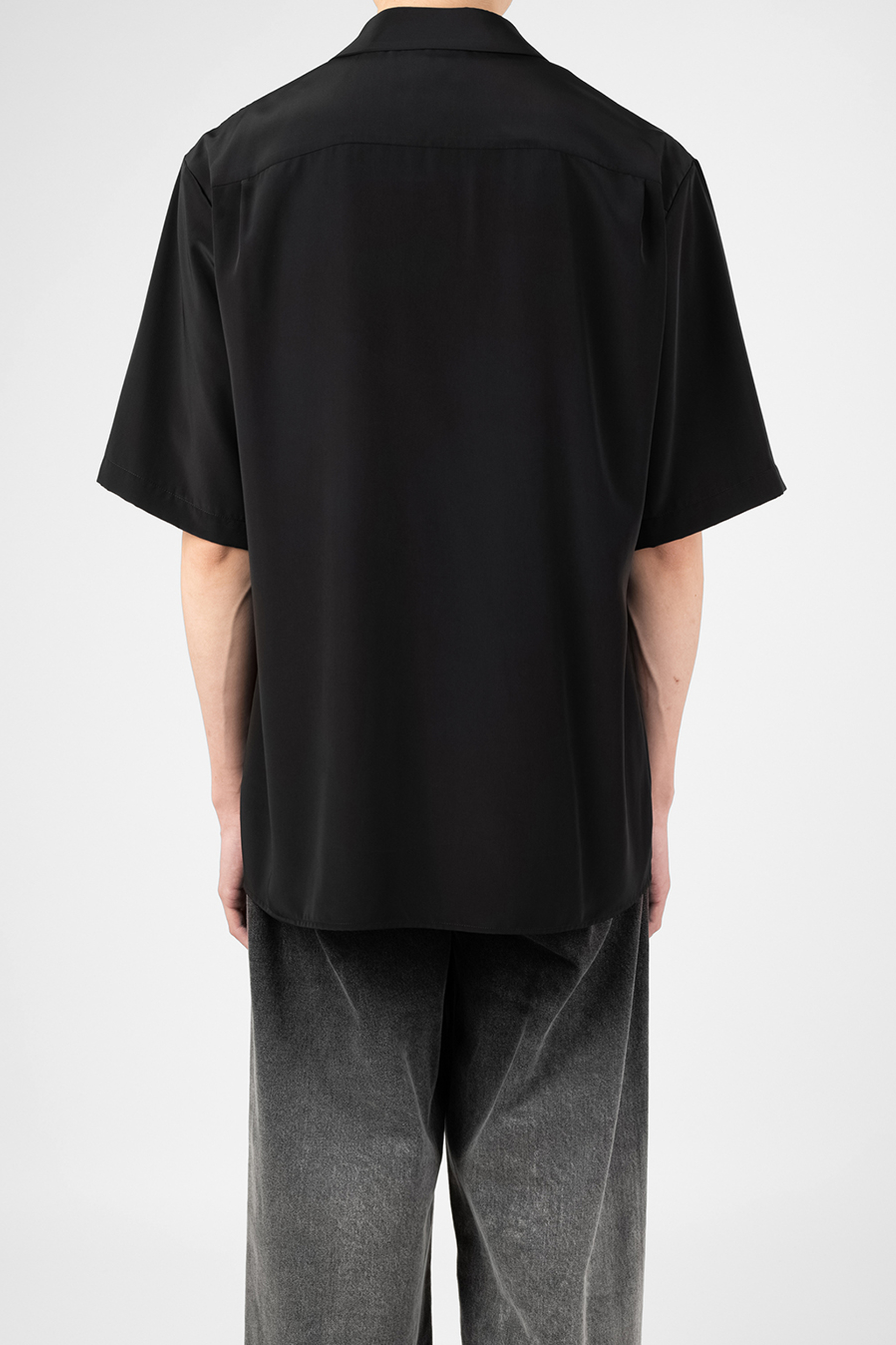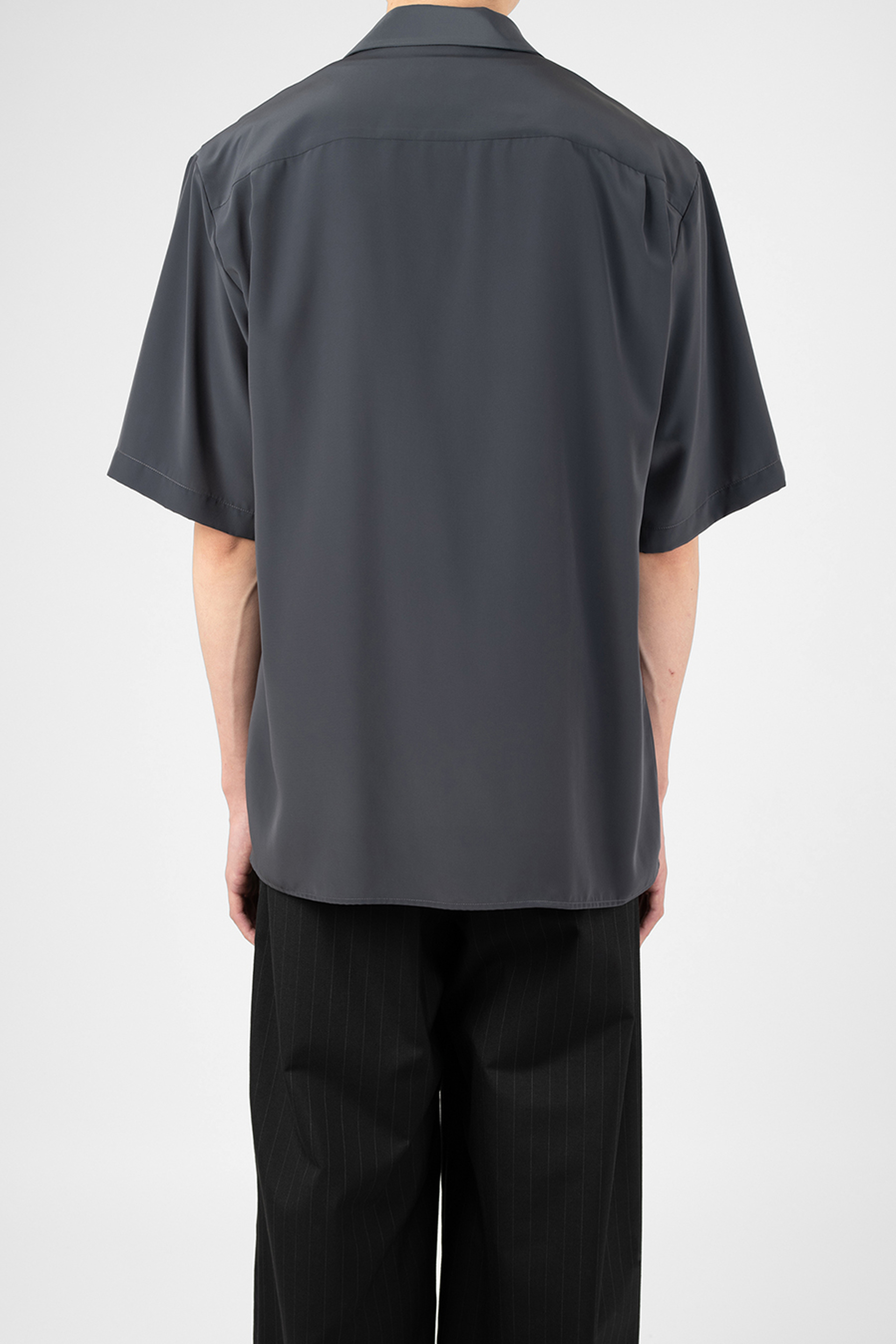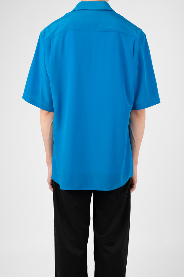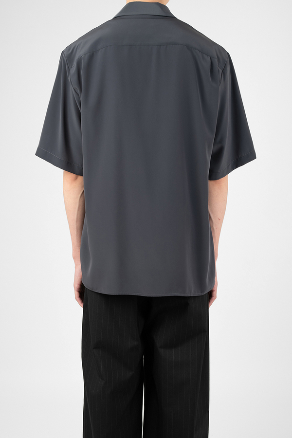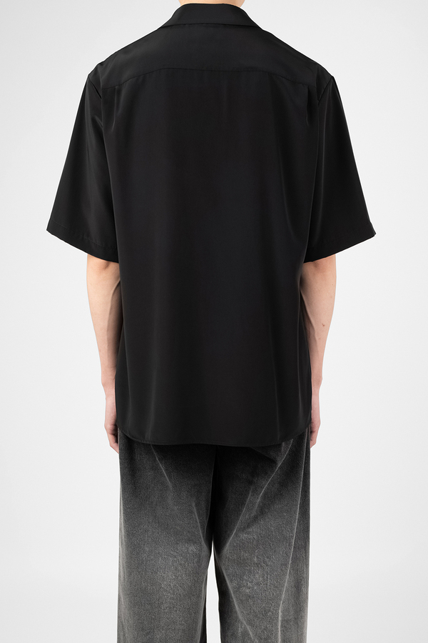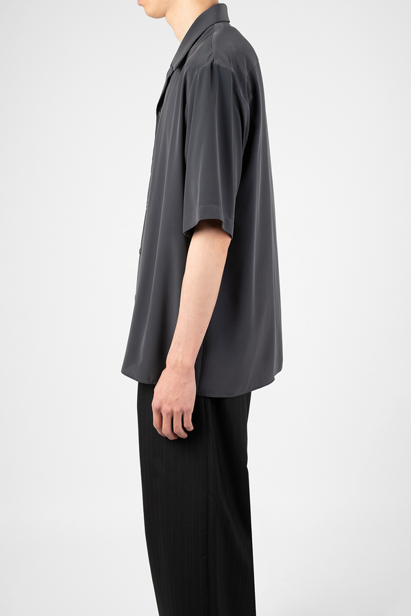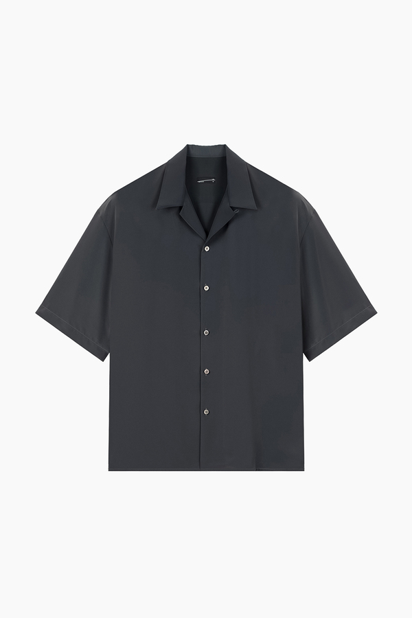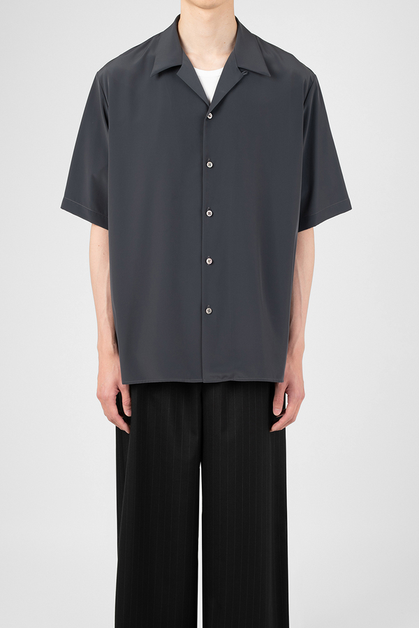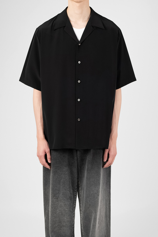 柔らかなデシン素材を使用したオープンカラー半袖シャツ。