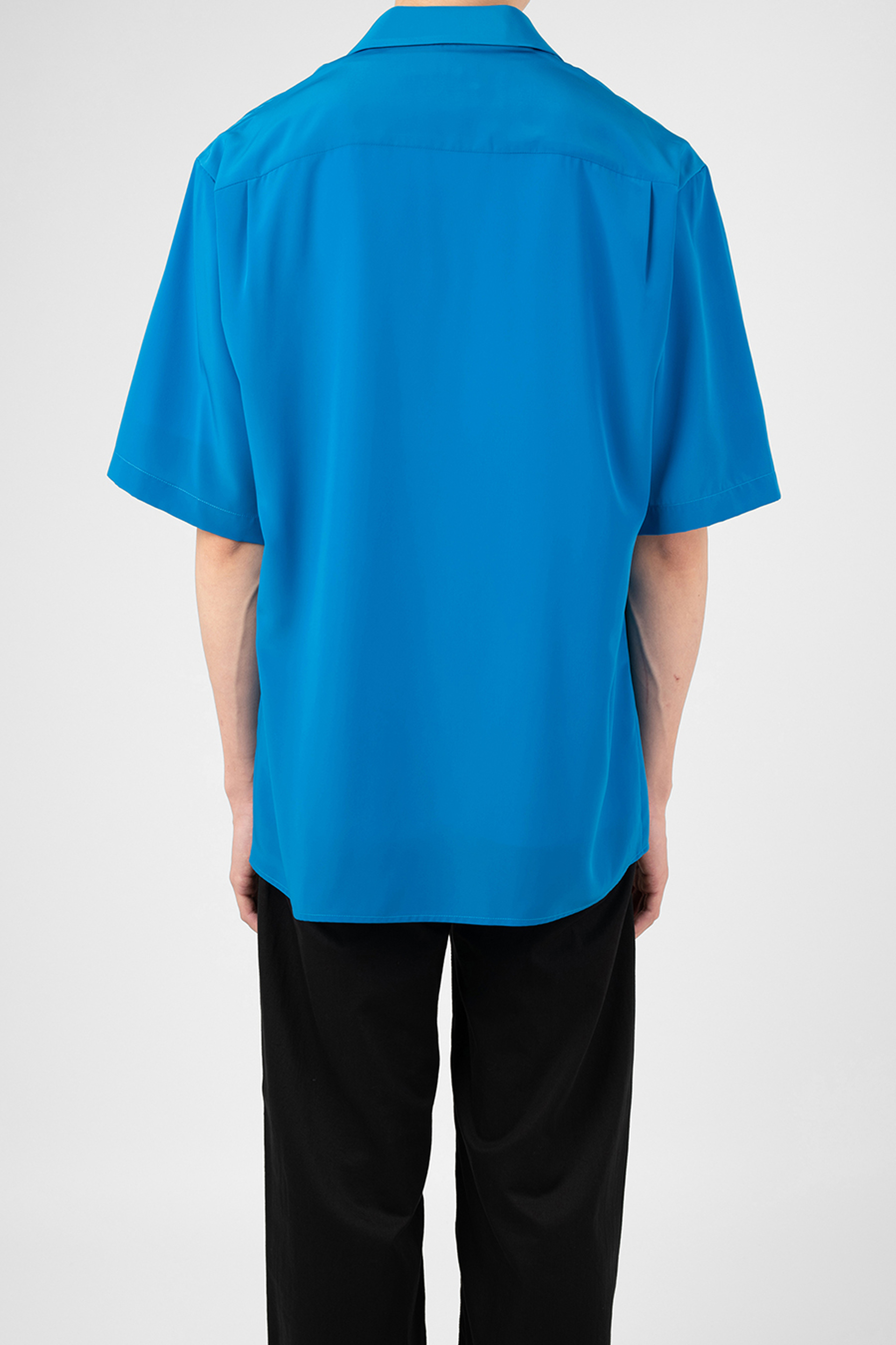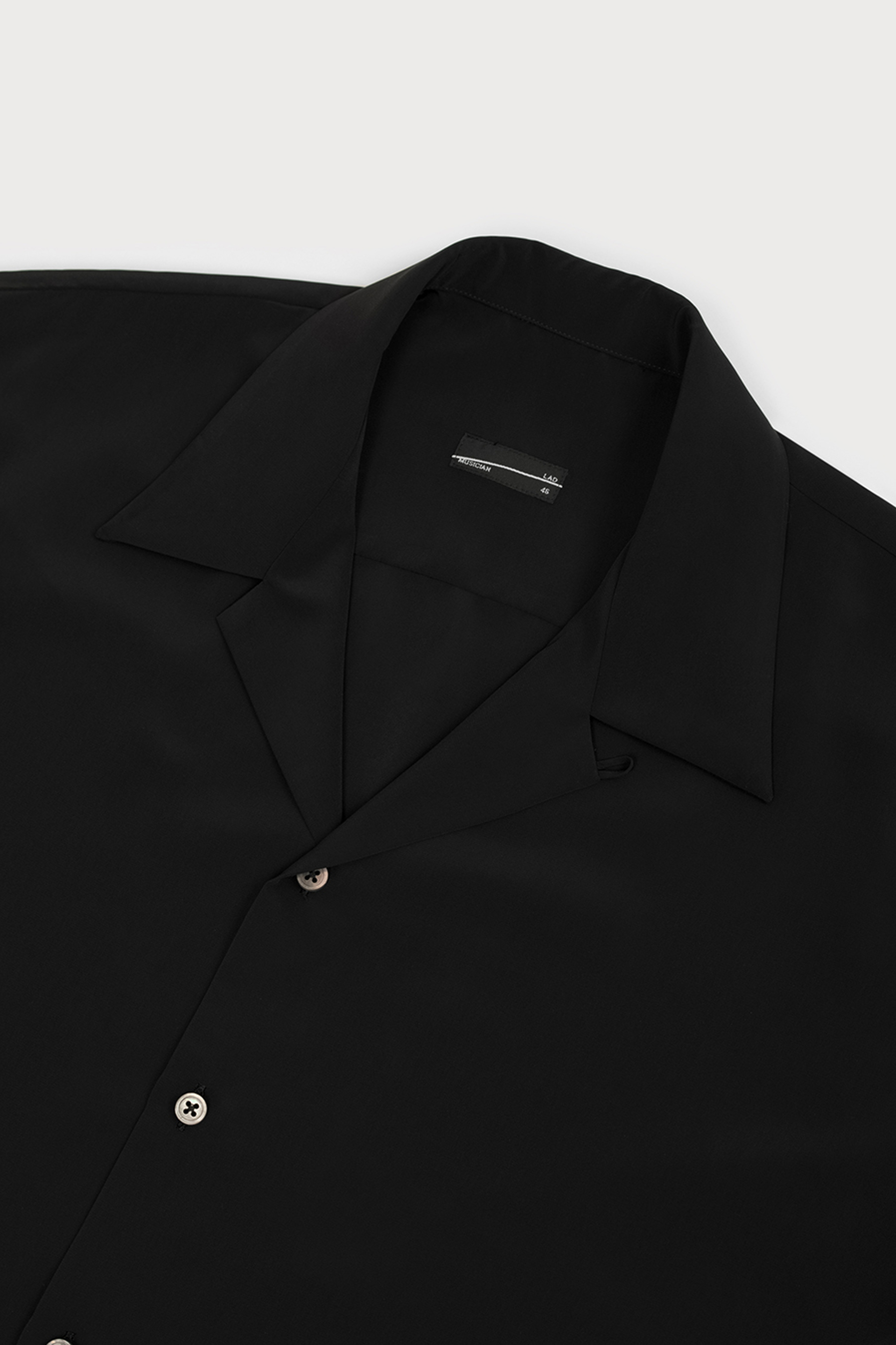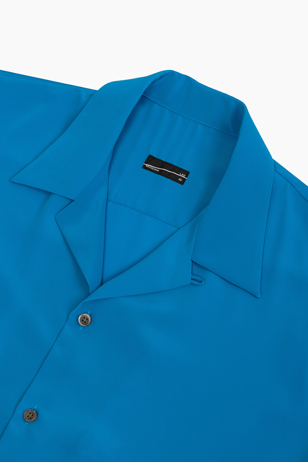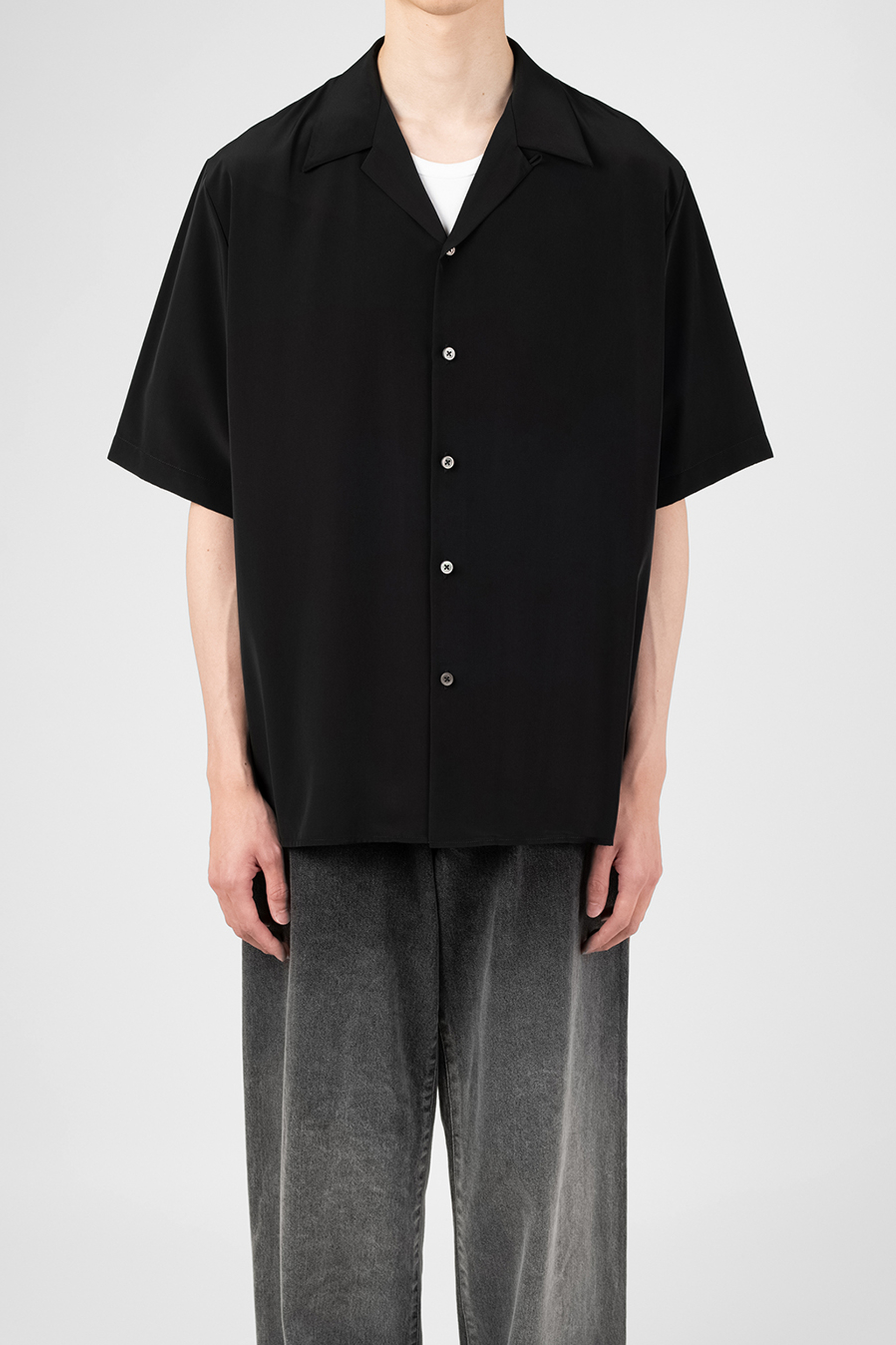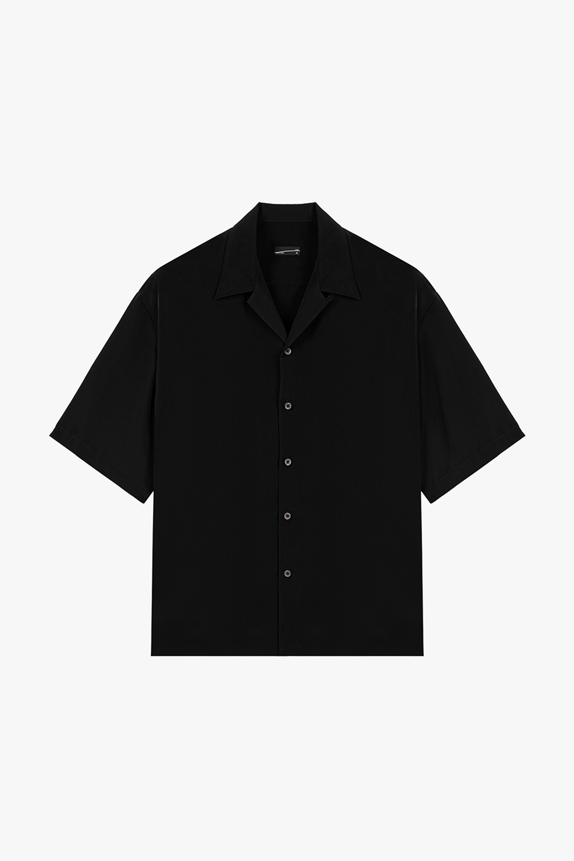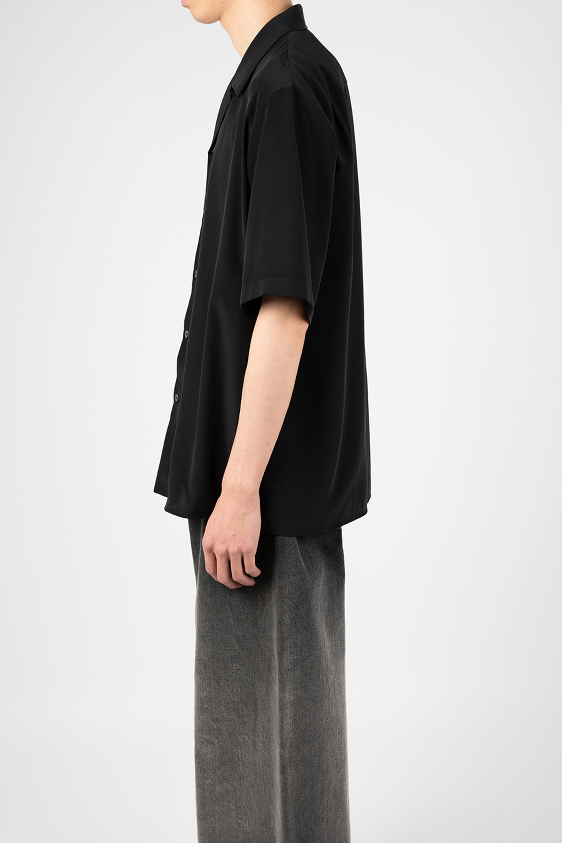 柔らかなデシン素材を使用したオープンカラー半袖シャツ。