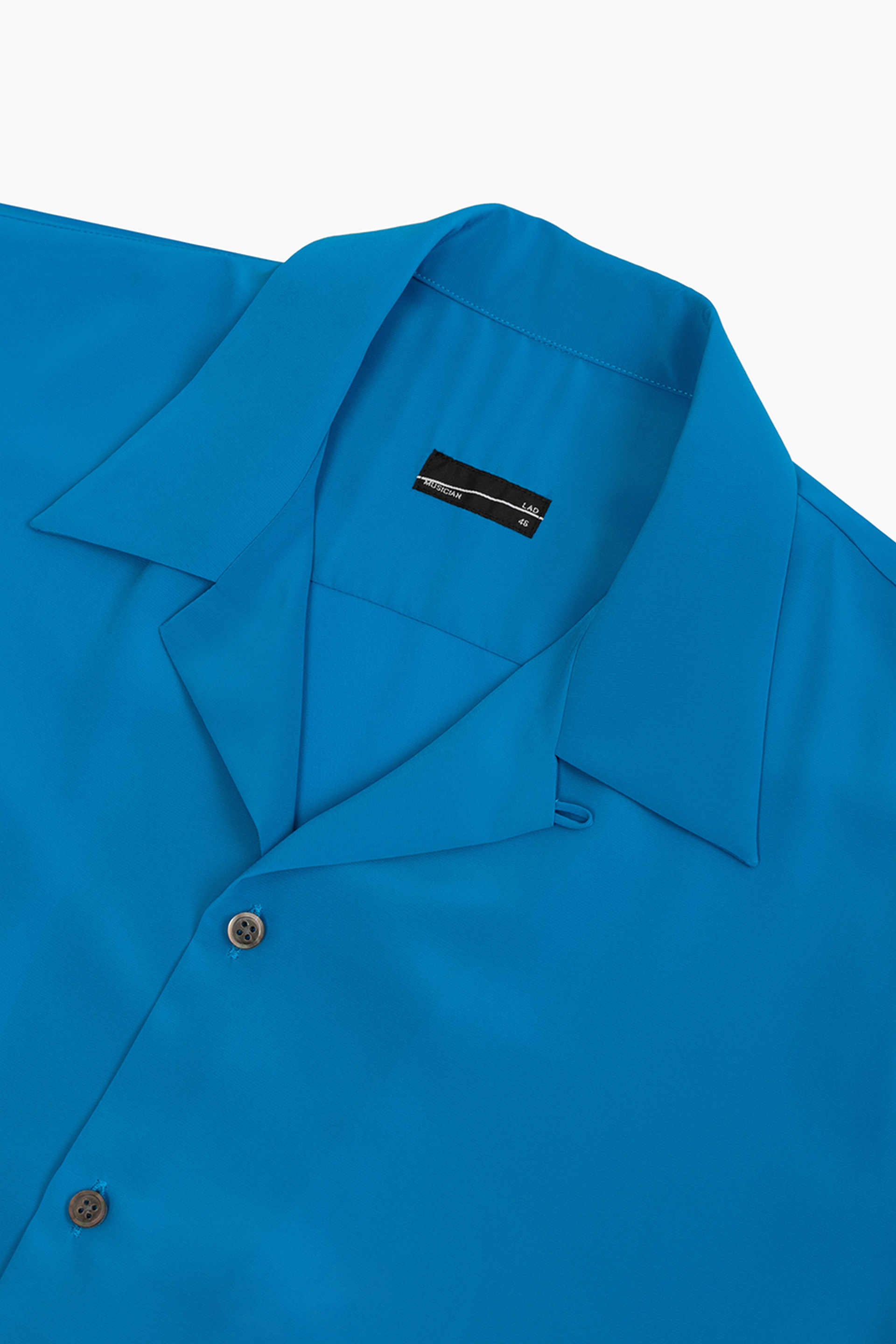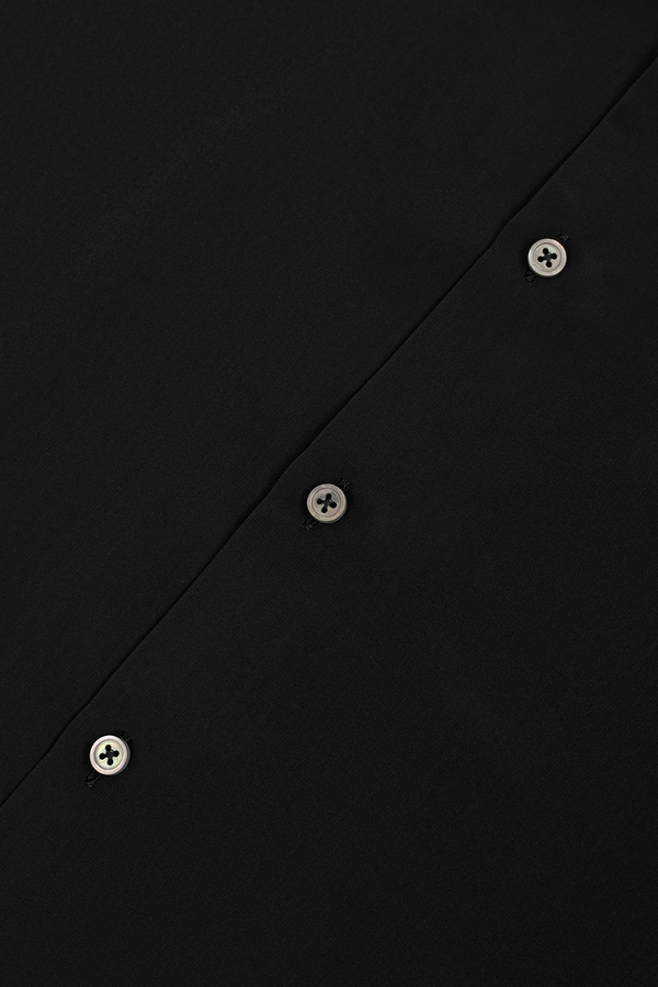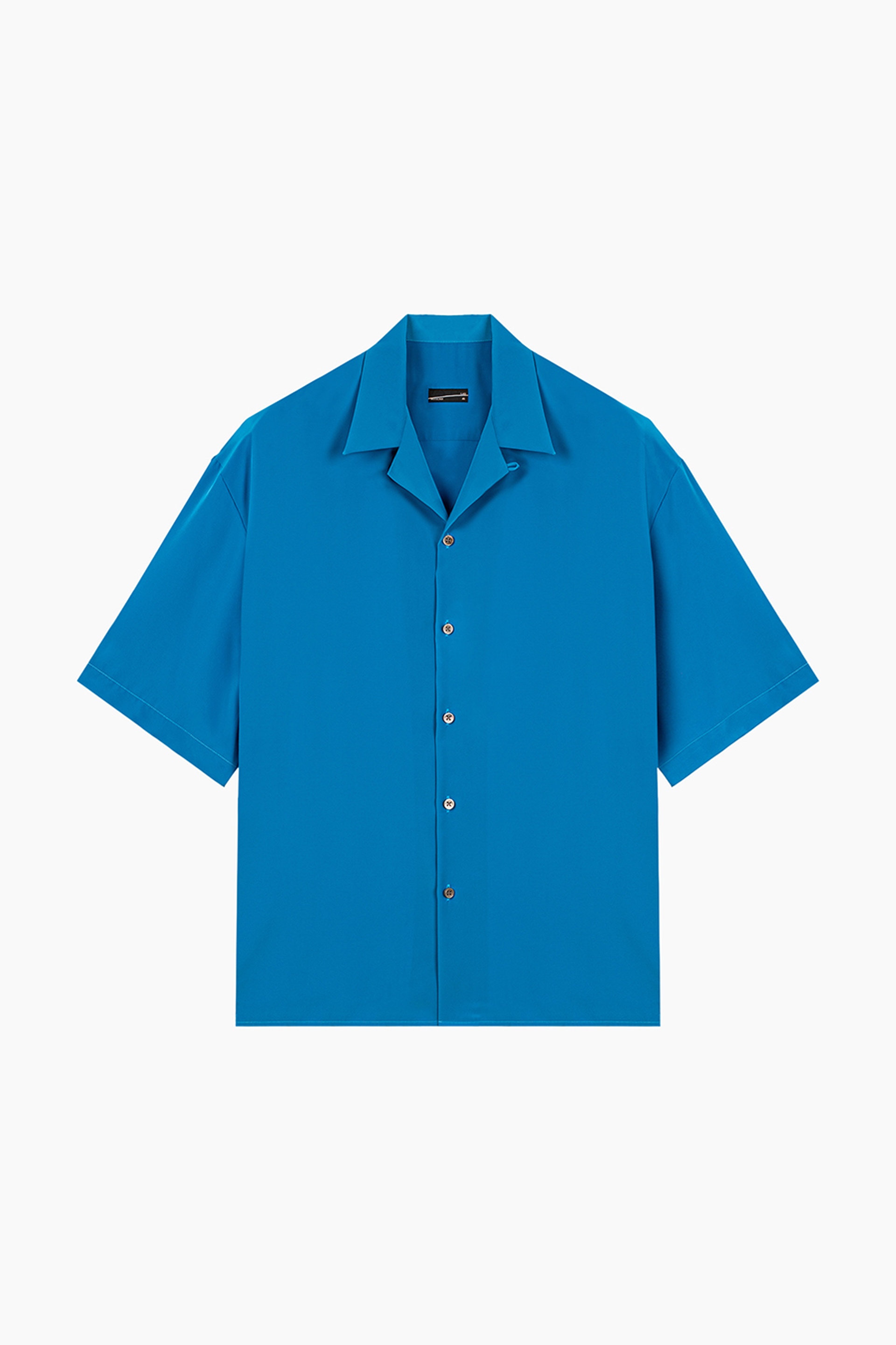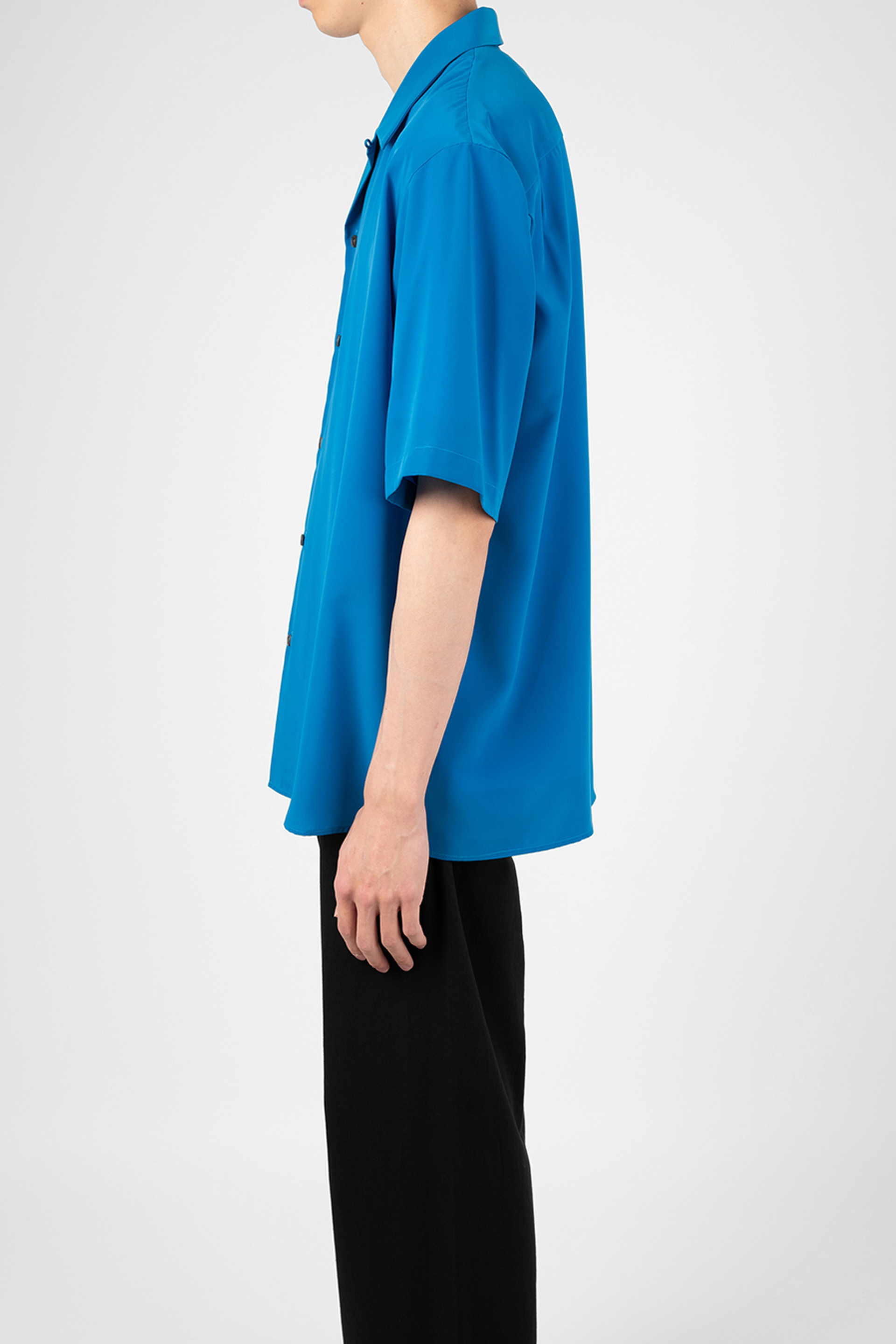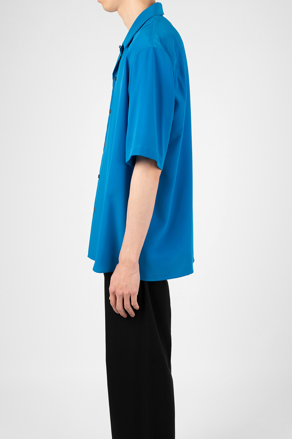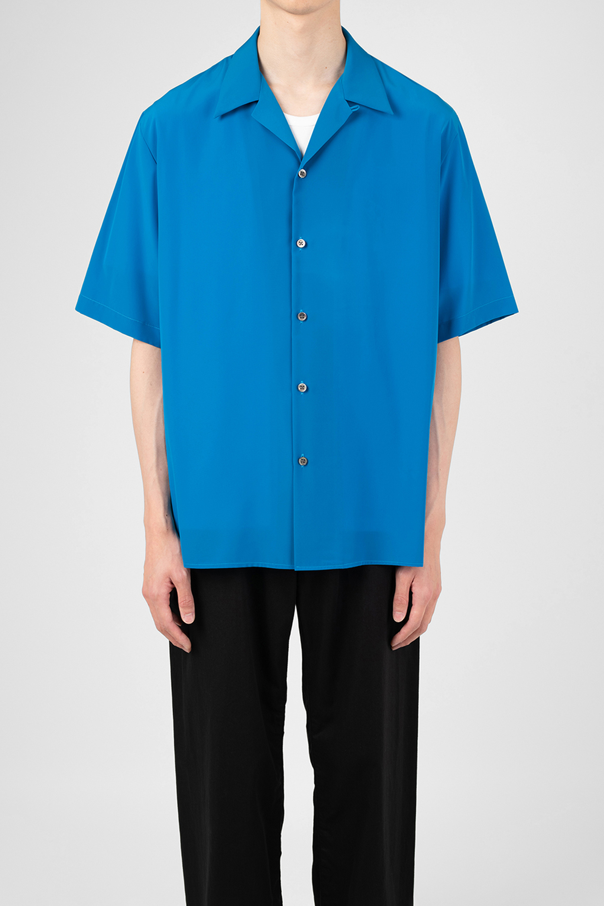 柔らかなデシン素材を使用したオープンカラー半袖シャツ。