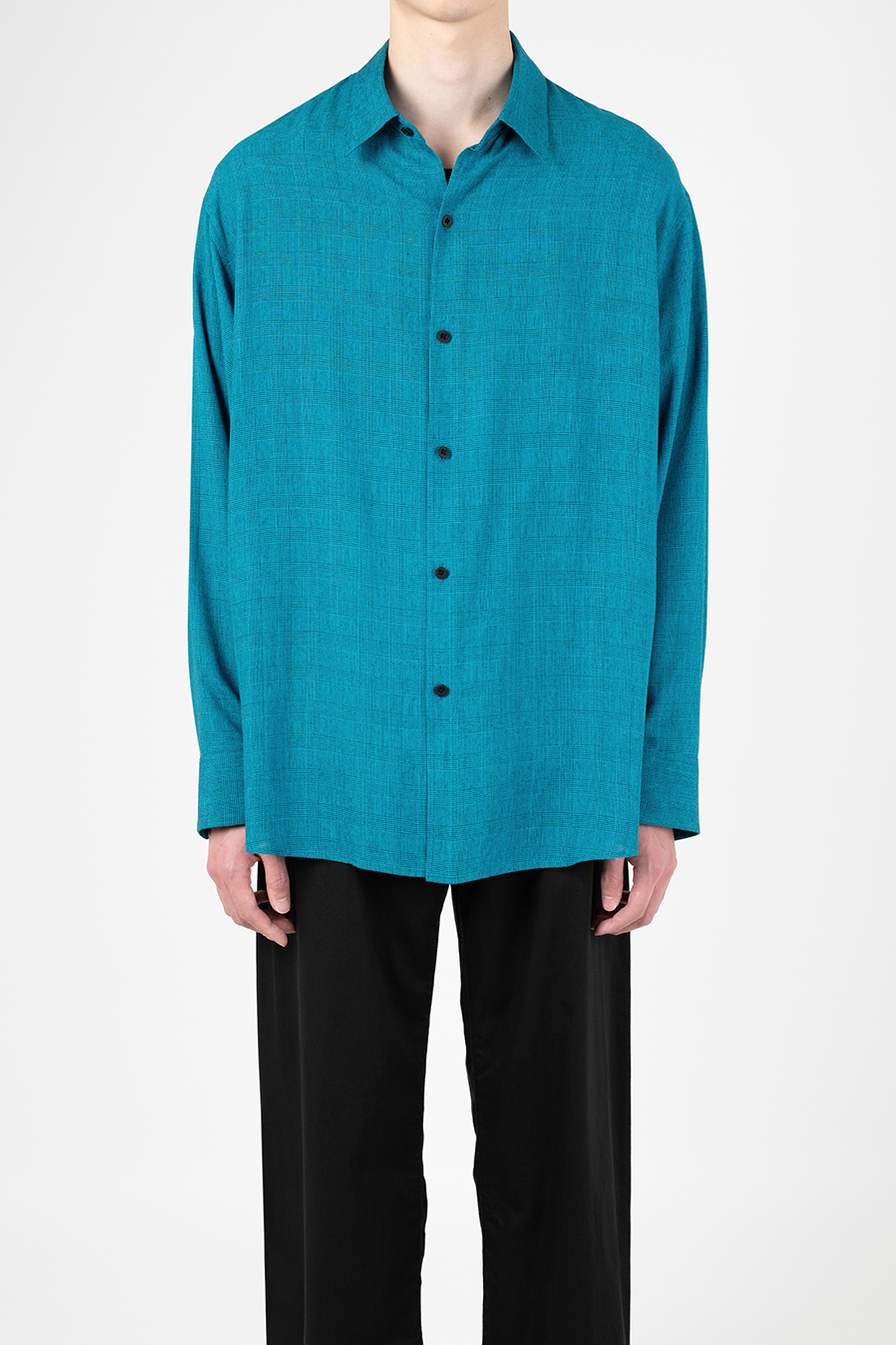 オリジナルのグレンチェック素材を使用したビッグシャツ。