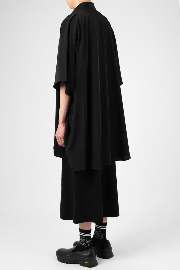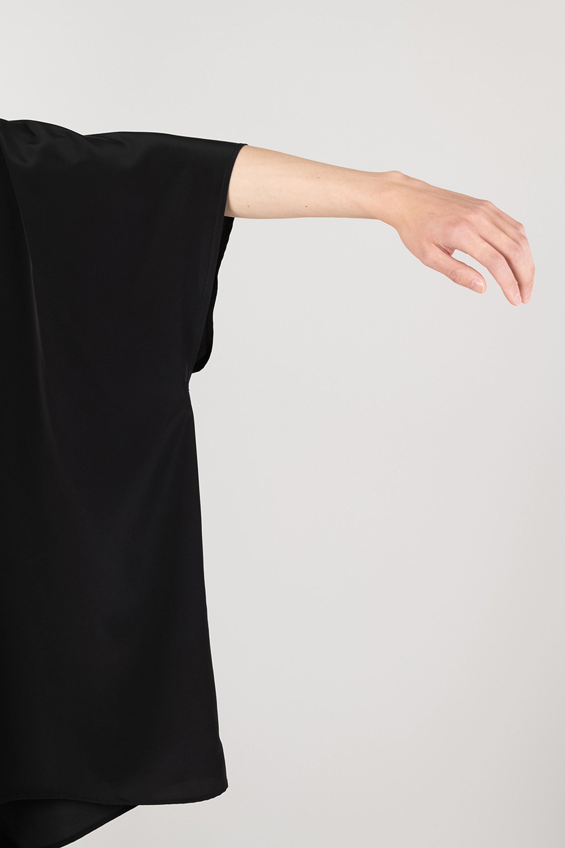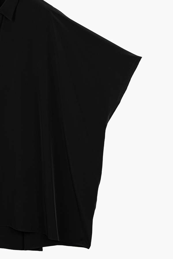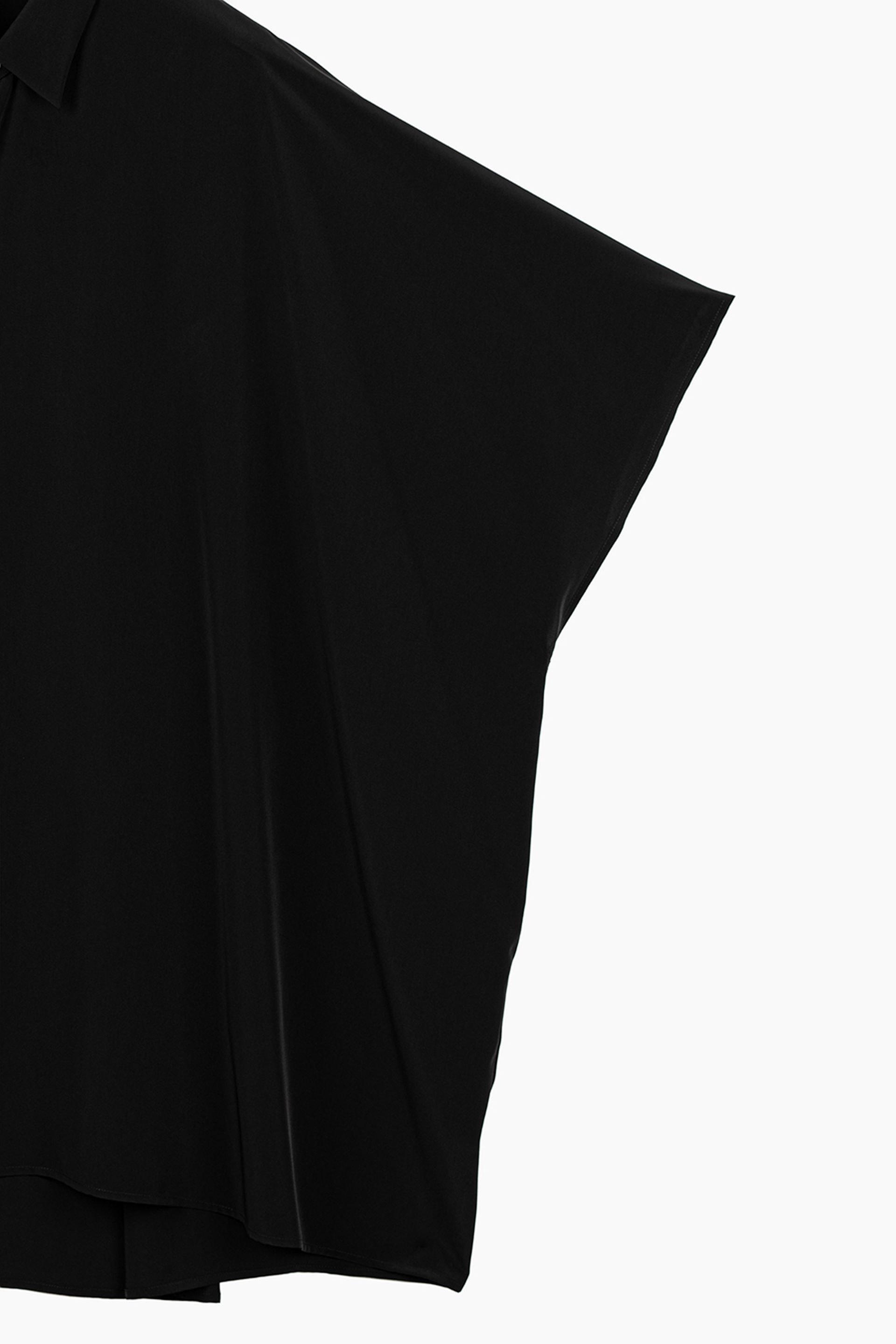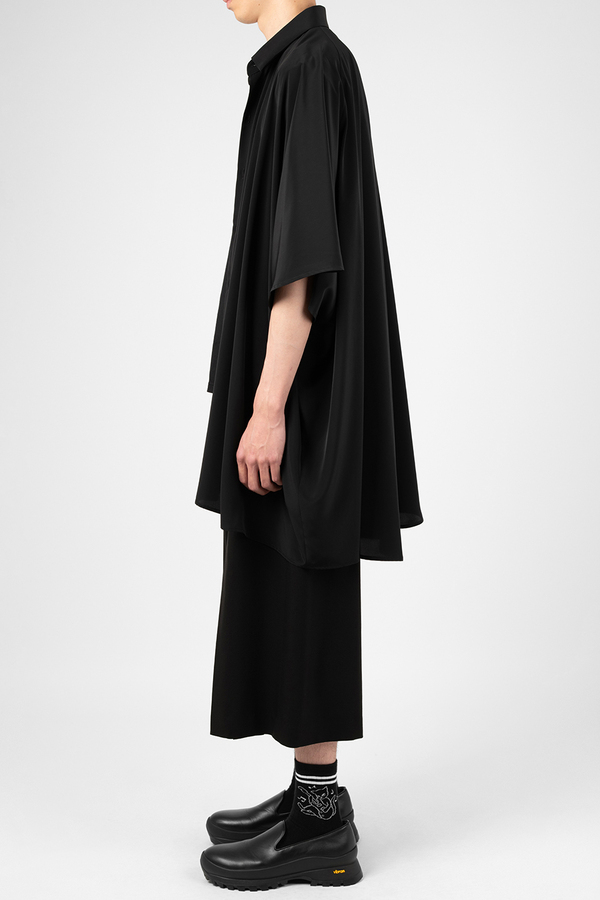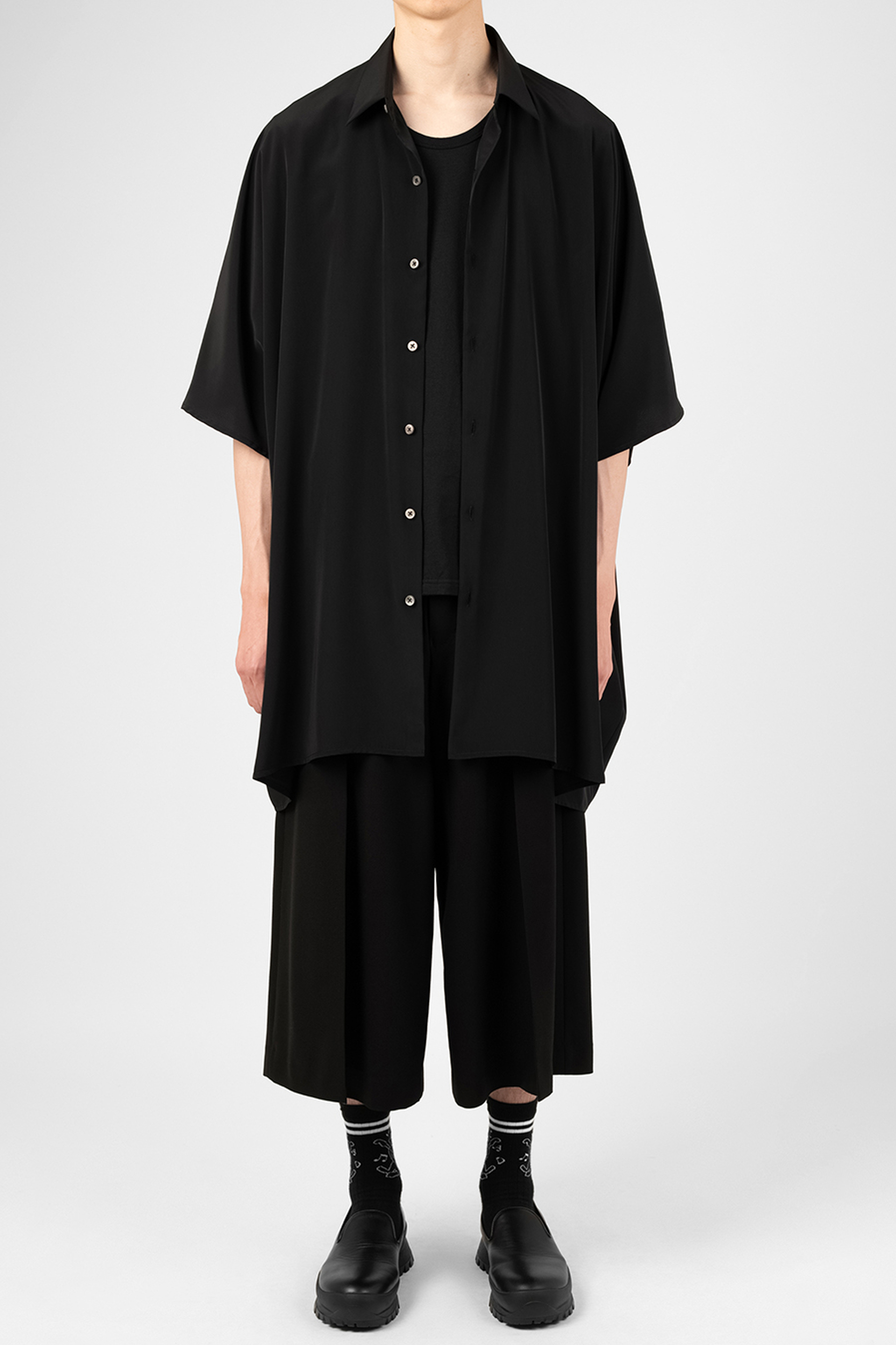柔らかなデシン素材を使用したフレンチスリーブビッグシャツ。