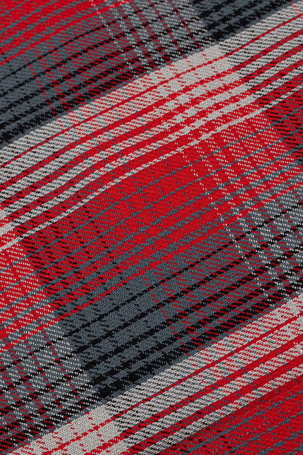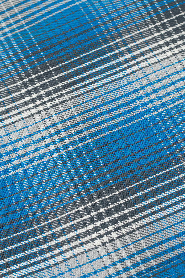 経緯ともに太番手の綿糸を使用し、凹凸を際立たせた綾組織で織り上げ、