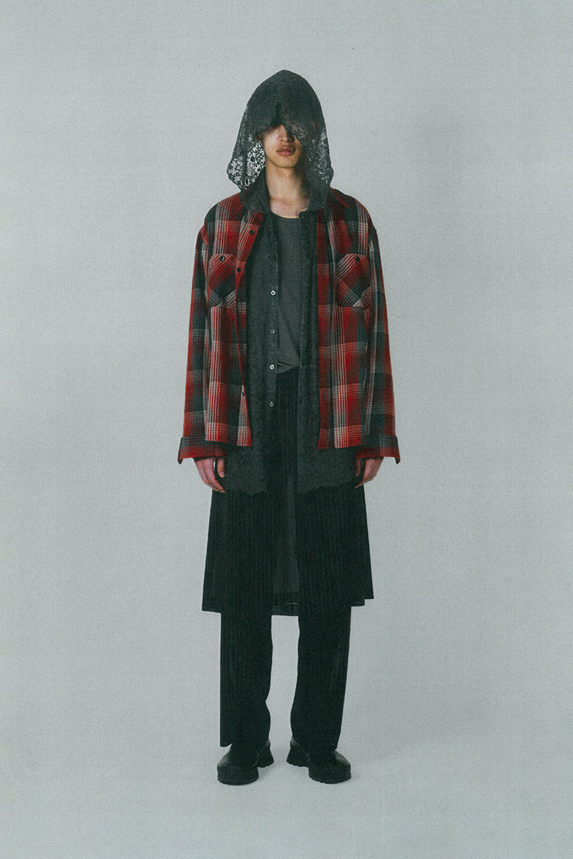 TULLE EMBROIDERY LACE HOODED BIG SHIRT