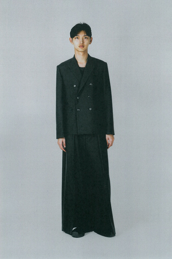 オリジナルのウールギャバ素材を使用したダブルブレストジャケット。