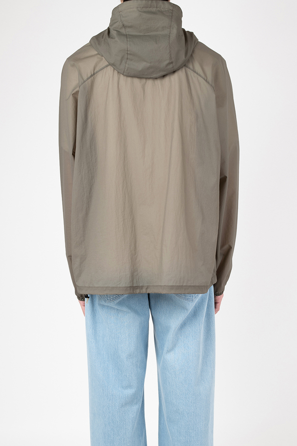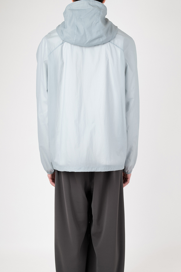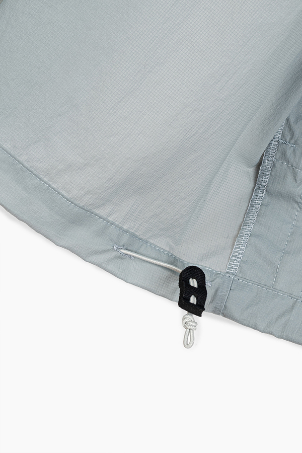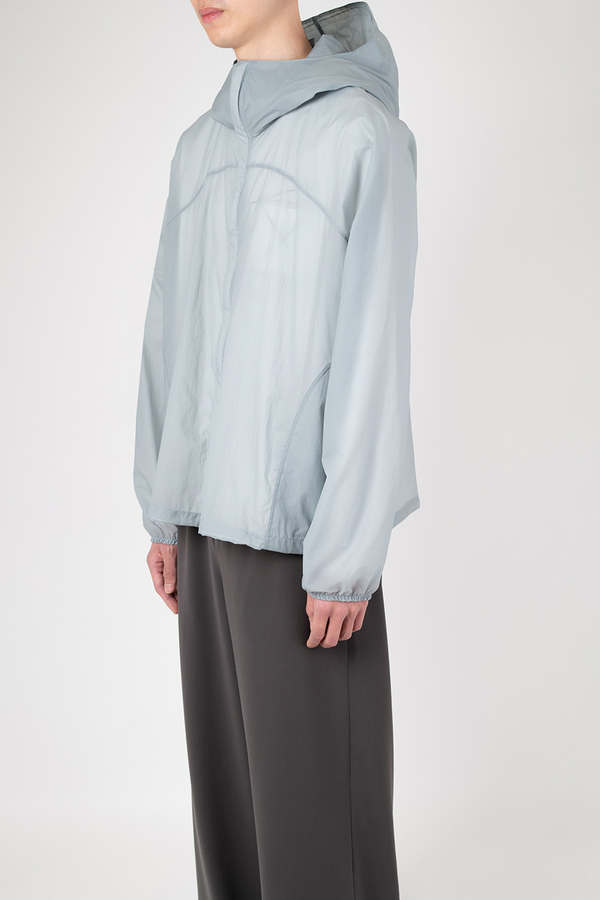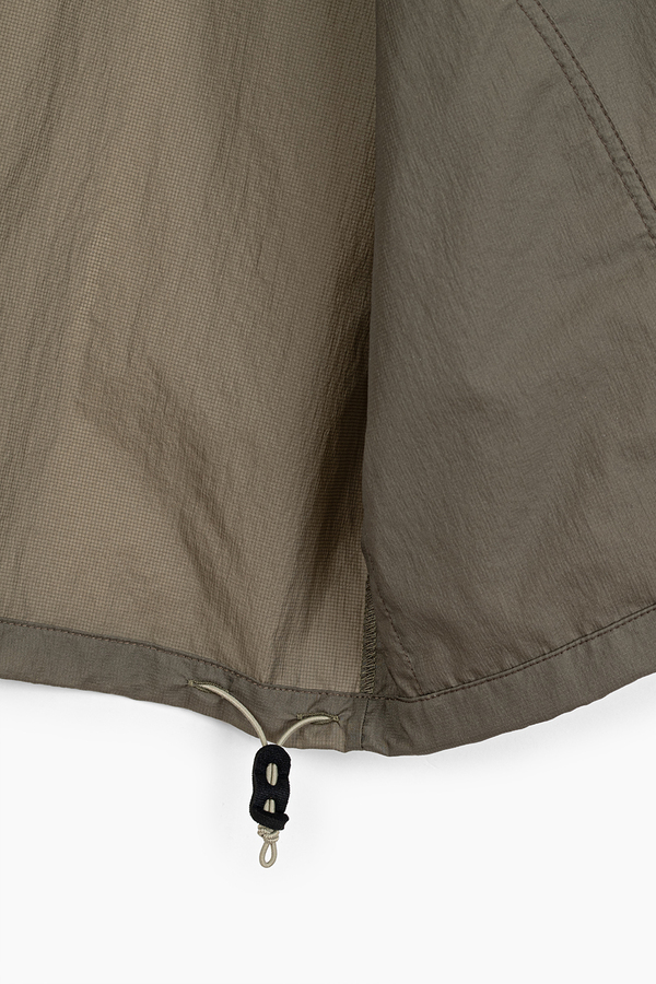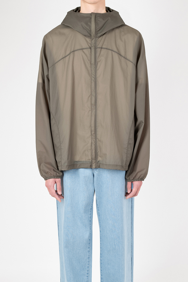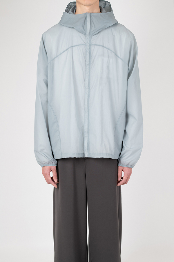 シアー感のある超軽量のミニリップストップ素材を使用したフーデットブルゾン。