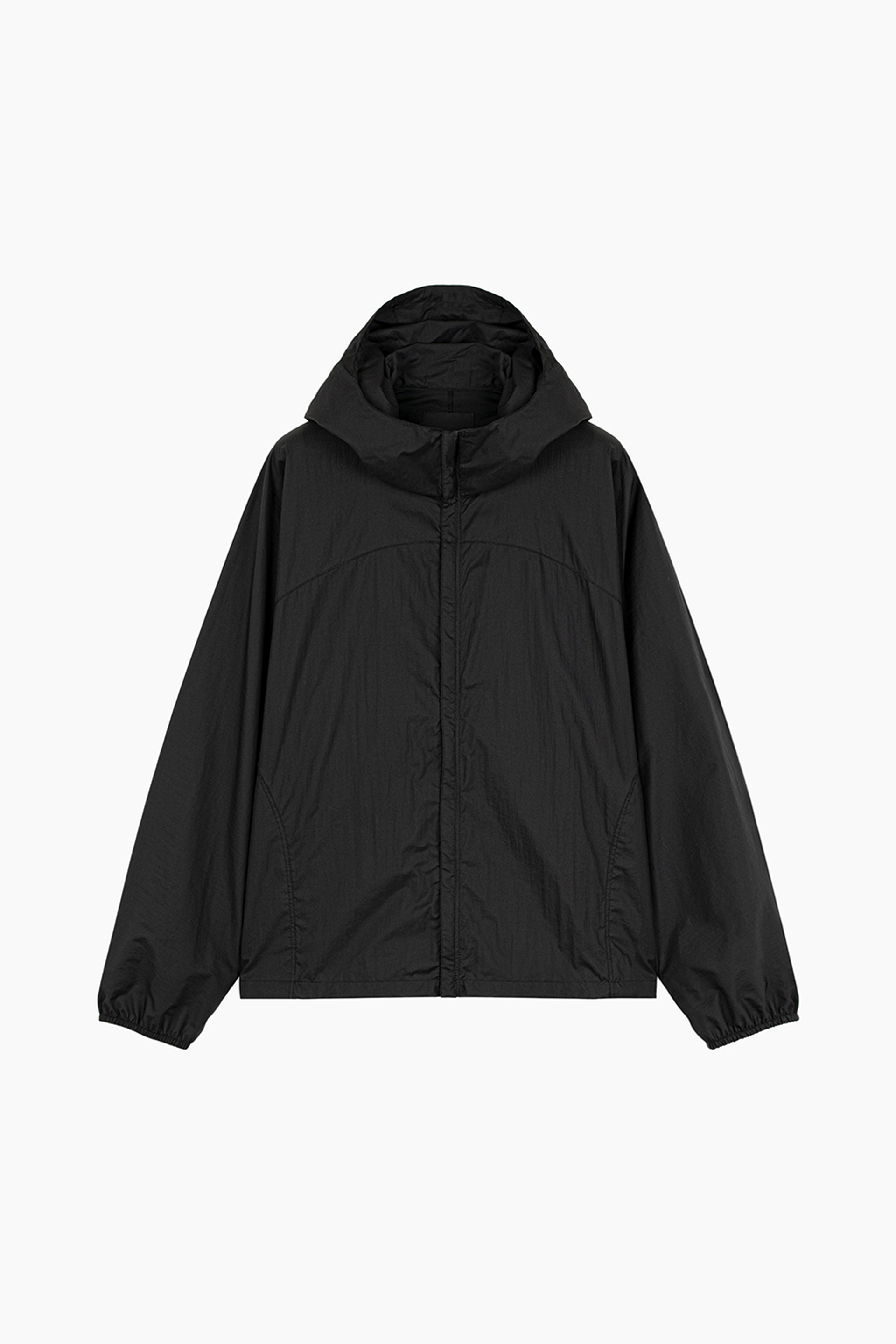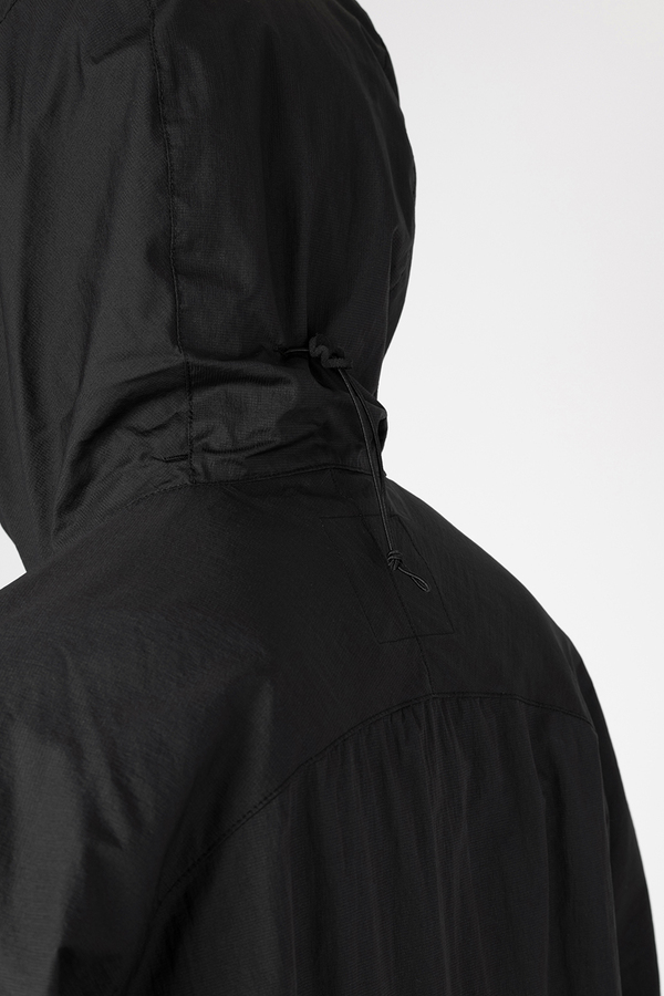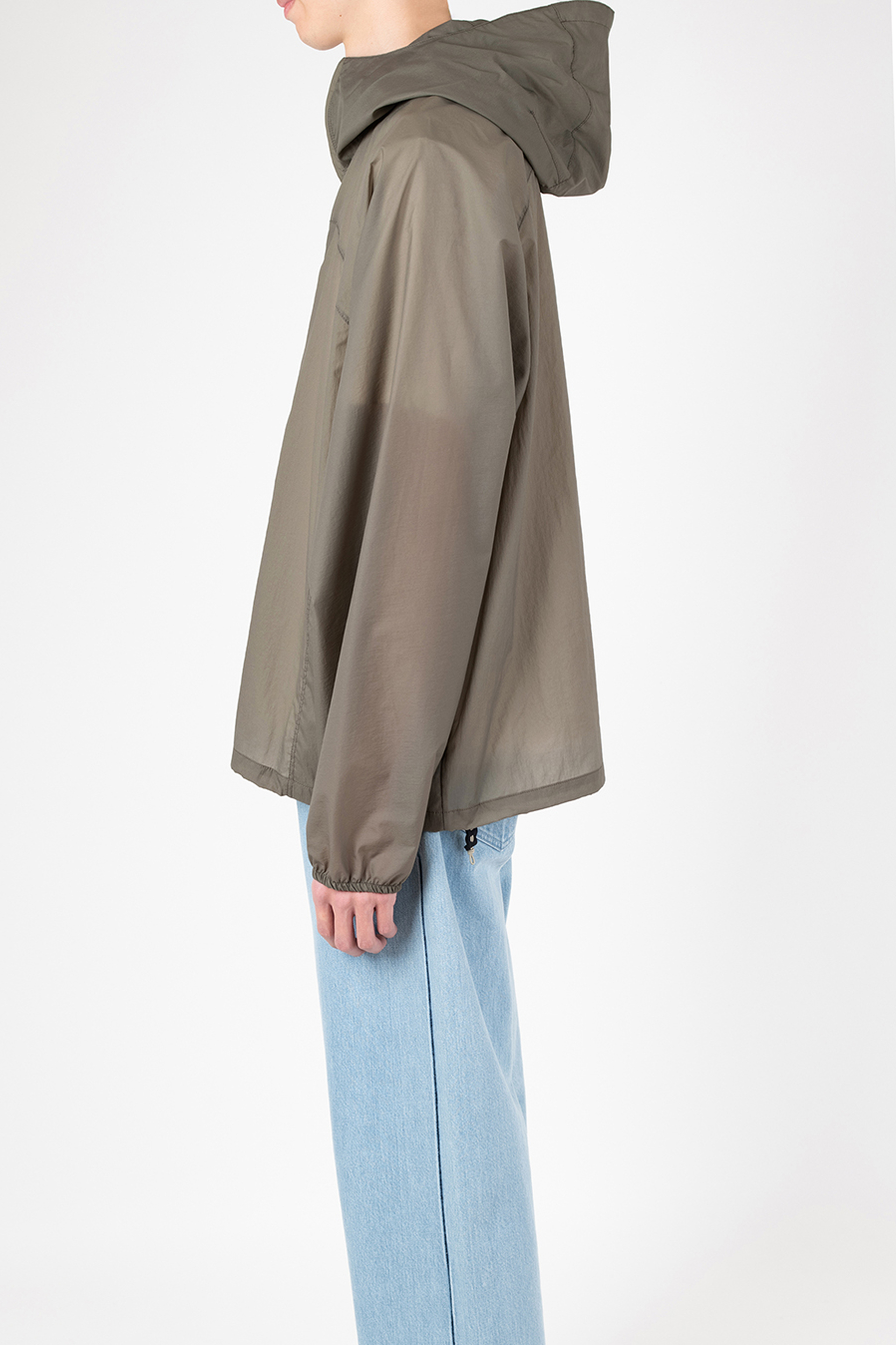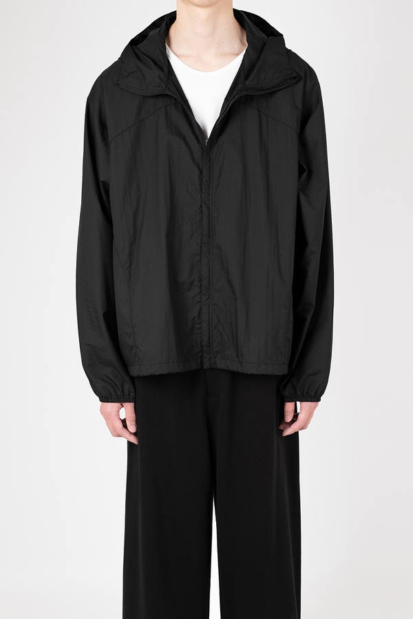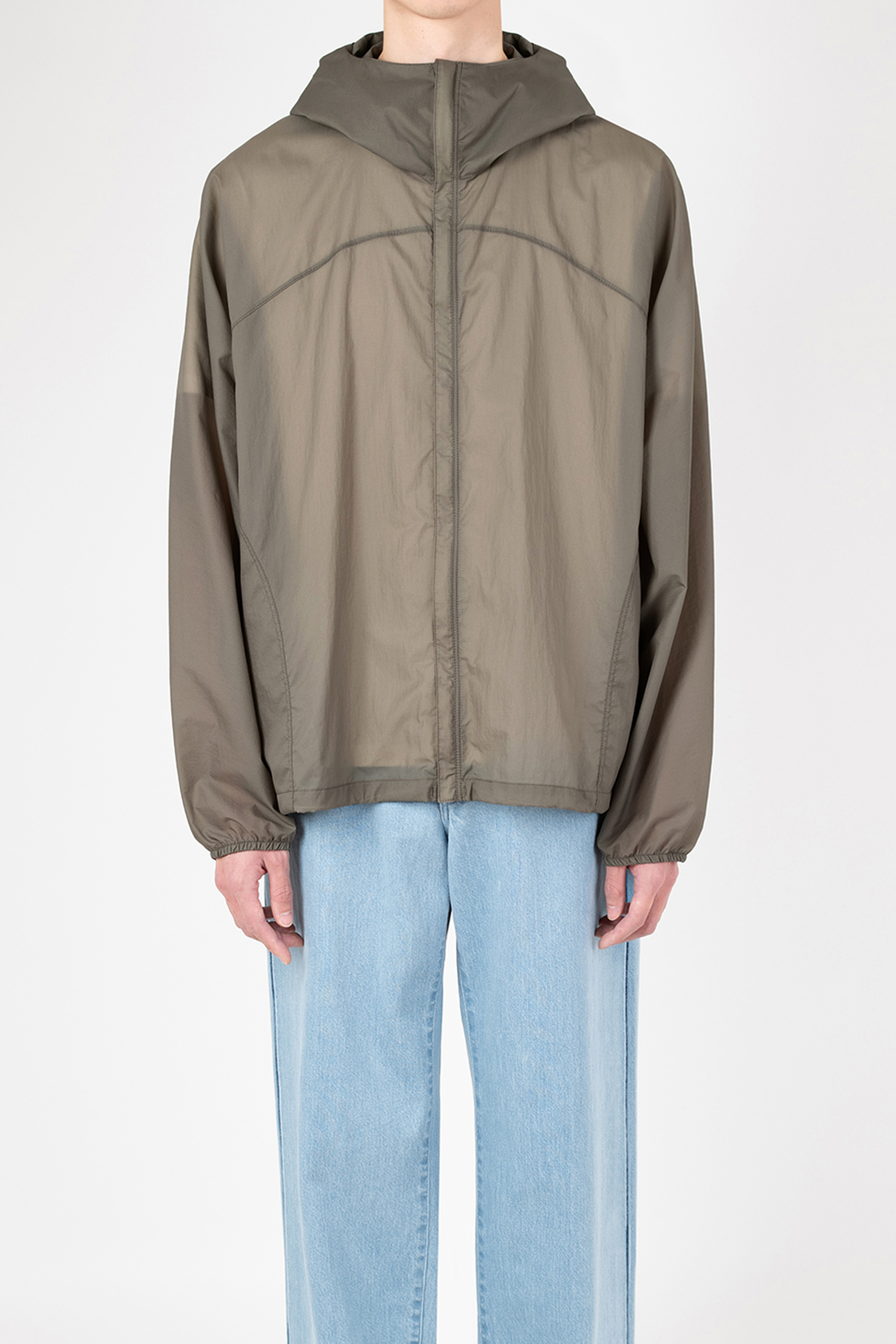 シアー感のある超軽量のミニリップストップ素材を使用したフーデットブルゾン。