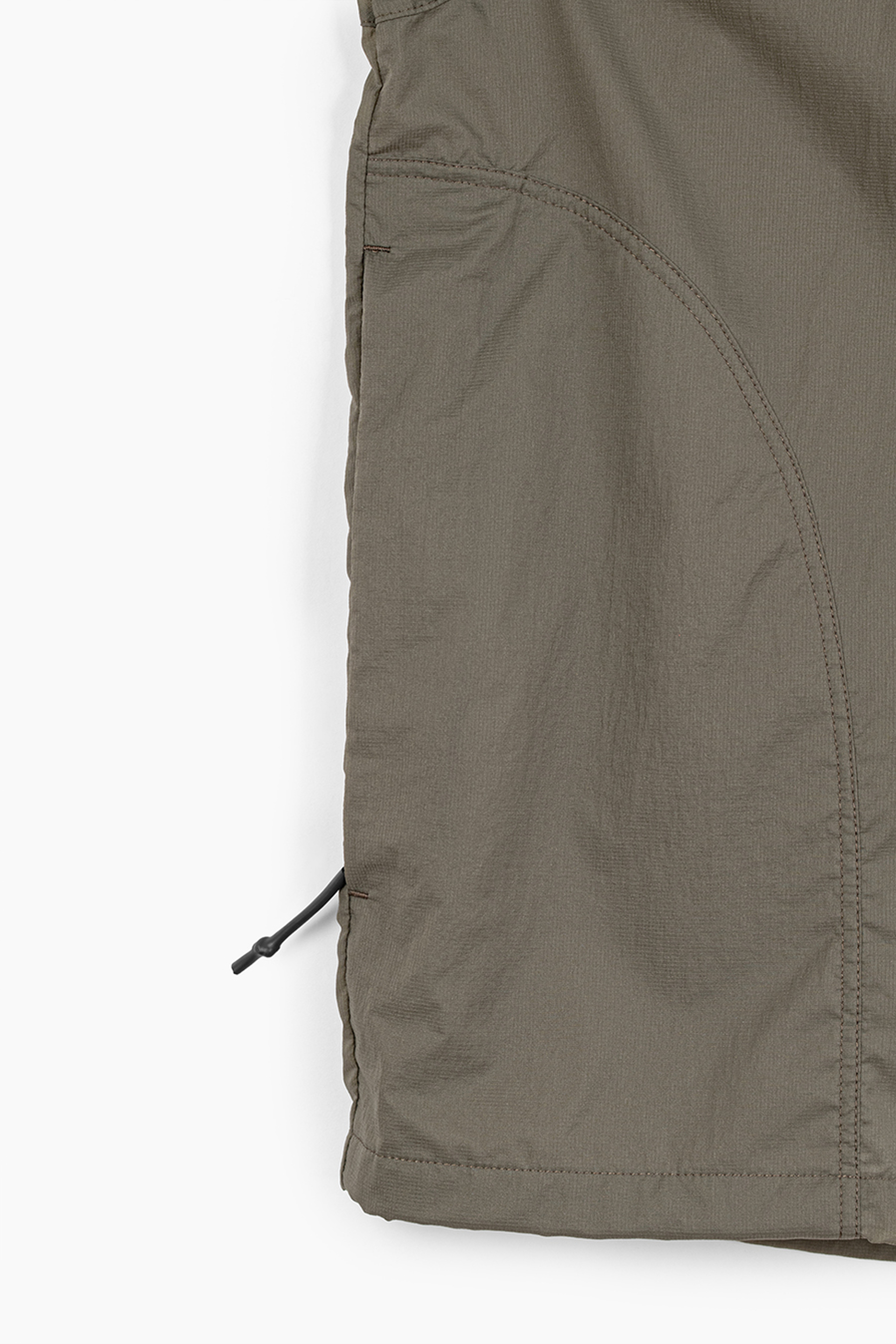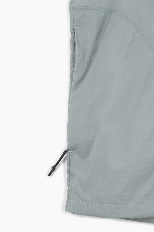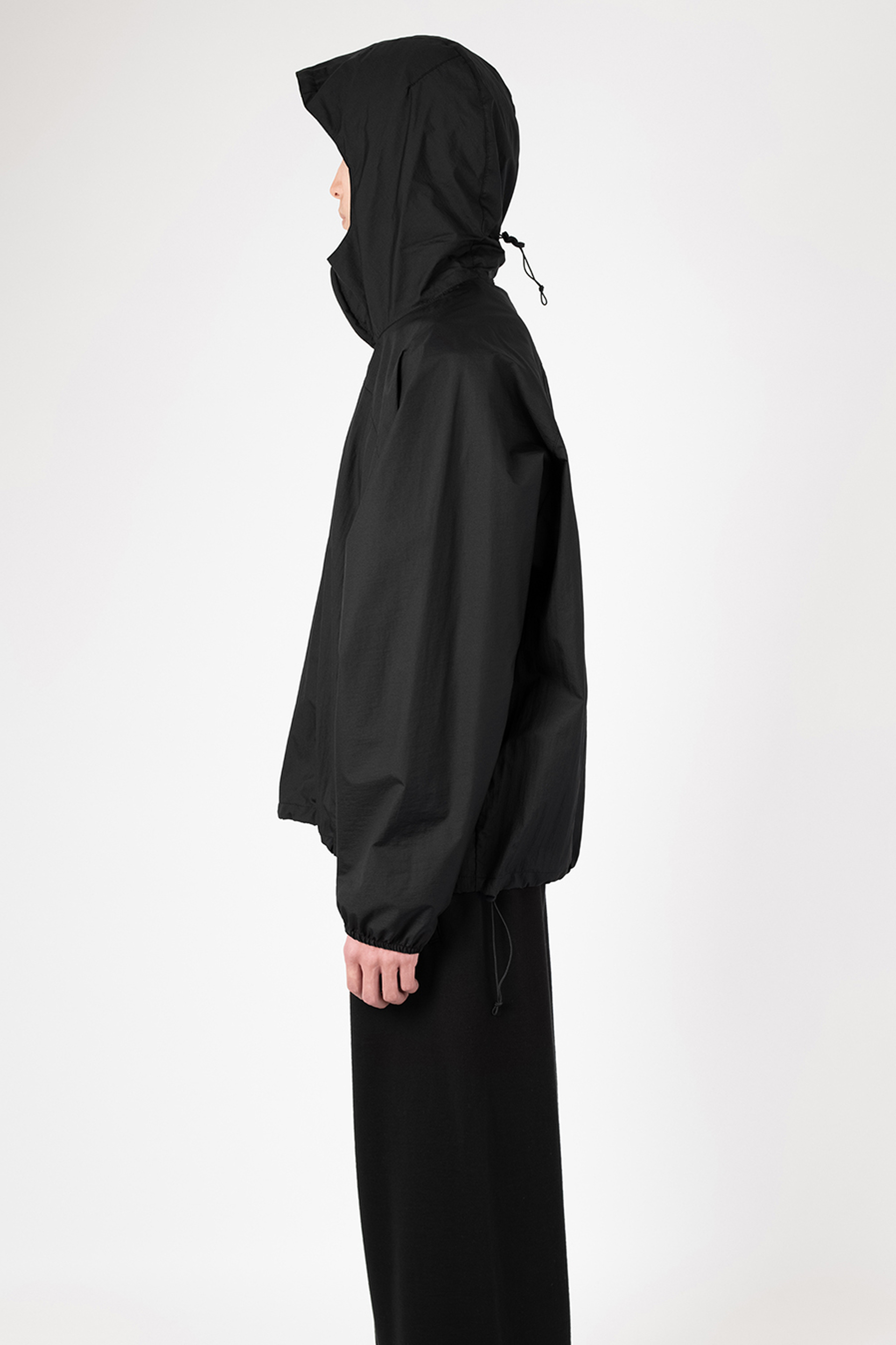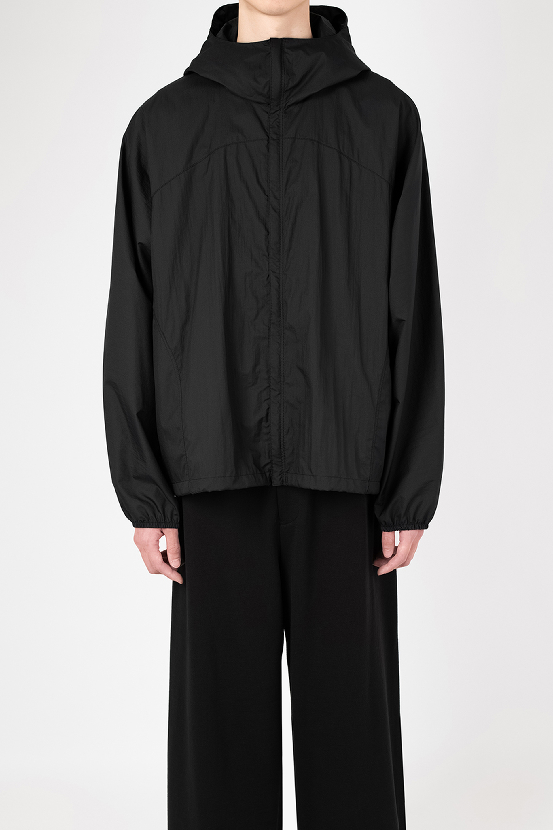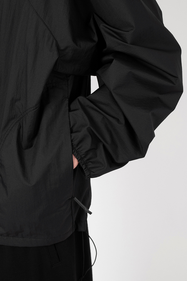 シアー感のある超軽量のミニリップストップ素材を使用したフーデットブルゾン。