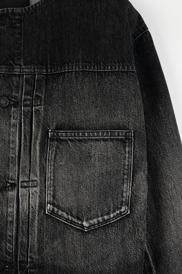 衿ぐりは薄手デニムでバイアス始末することで厚みを軽減しています。