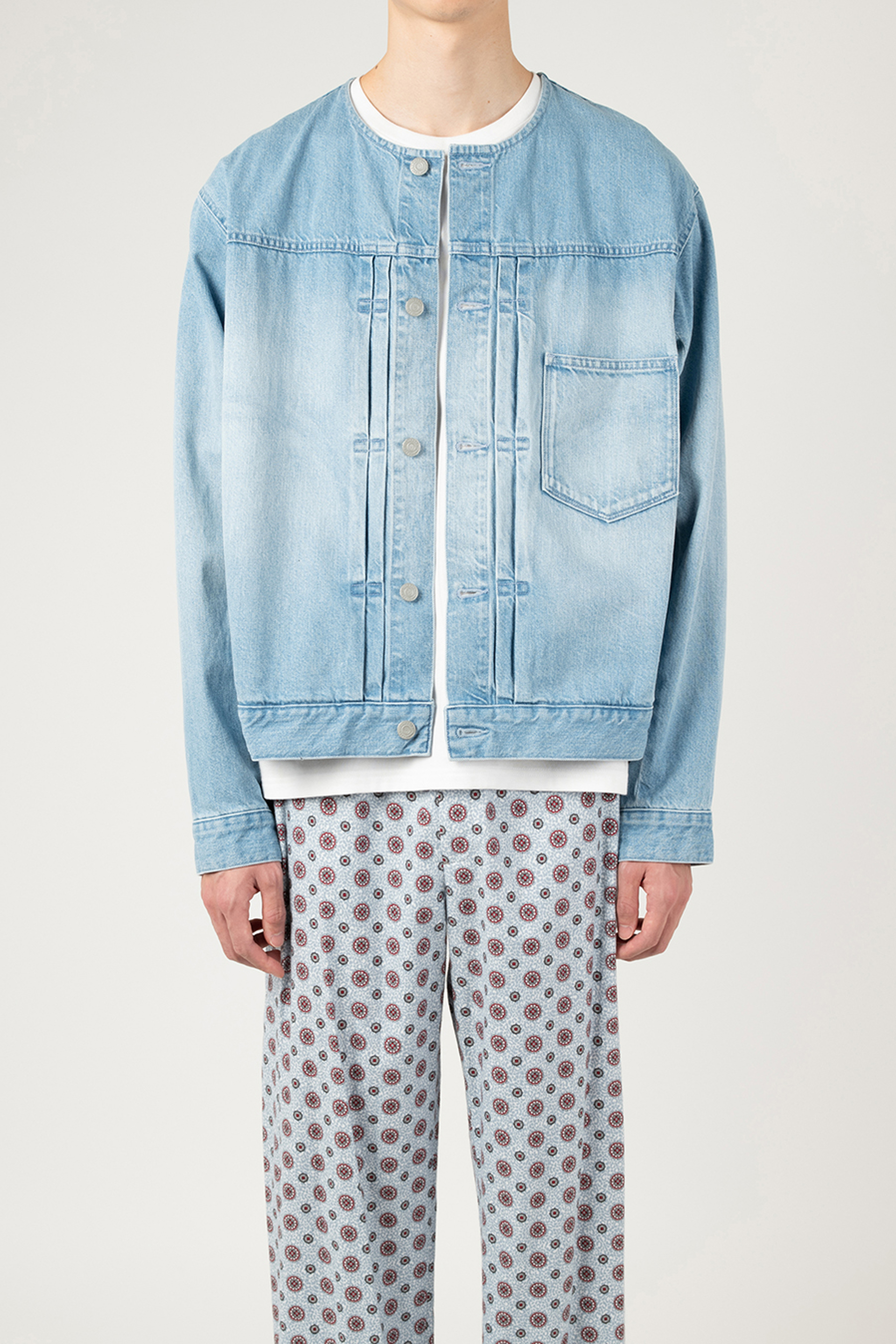 レギュラーフィットのスッキリとしたボディと、カラーレスによる軽やかな印象のGジャンです。