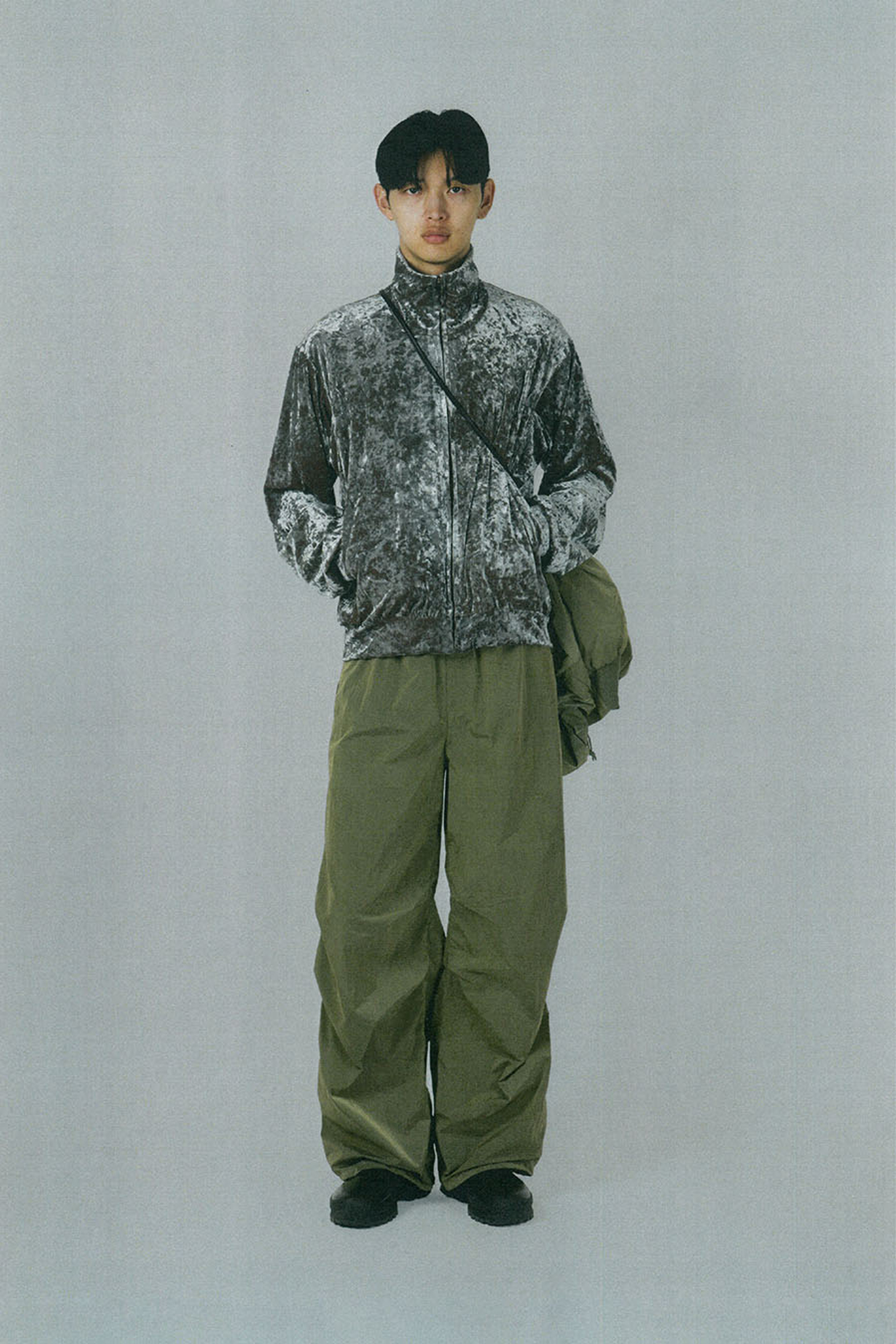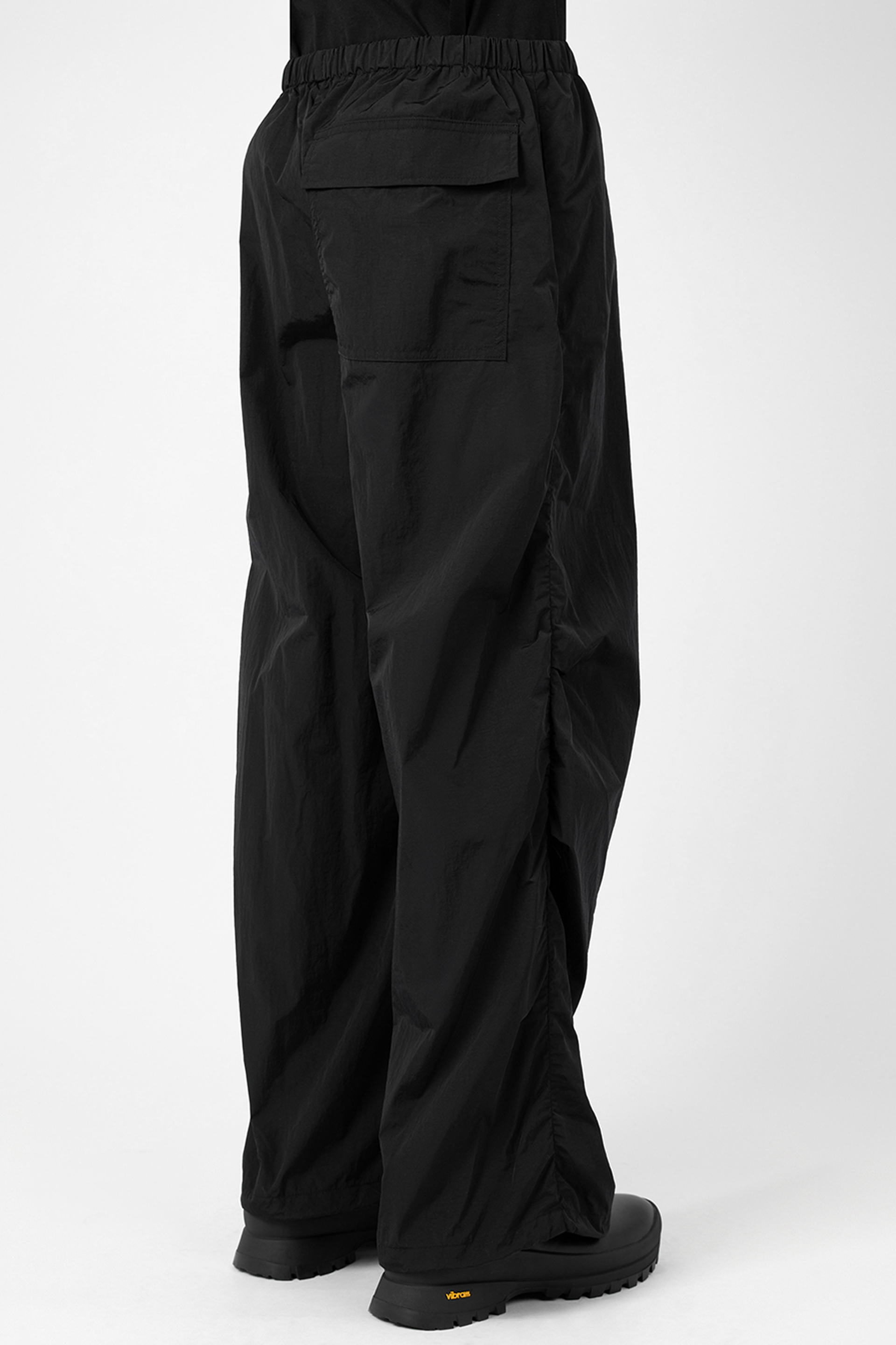「LIMONTA EAST」 のナイロンシャンブレー素材を使用したオーバーパンツ。