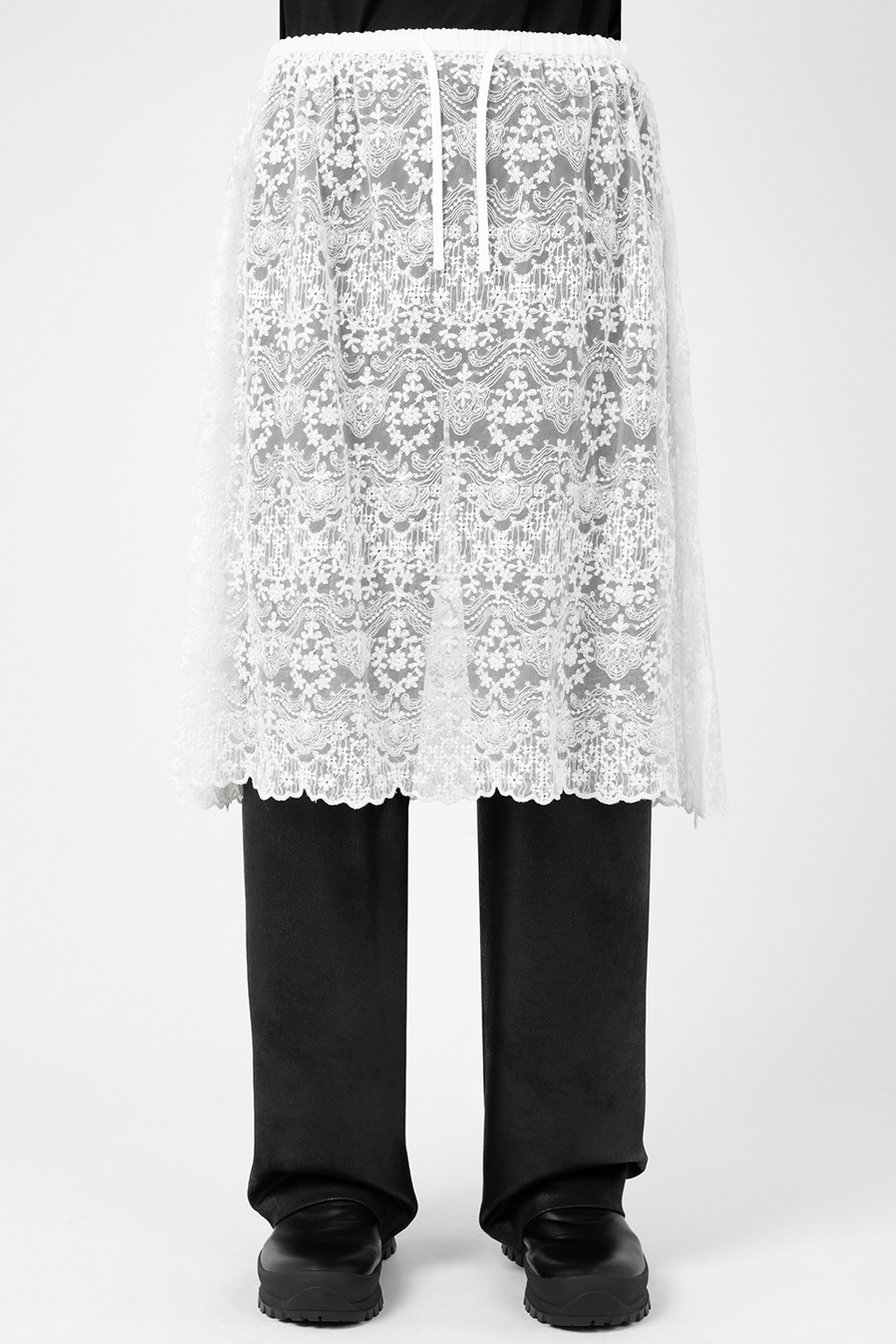 TULLE EMBROIDERY LACE GATHERED SKIRT
