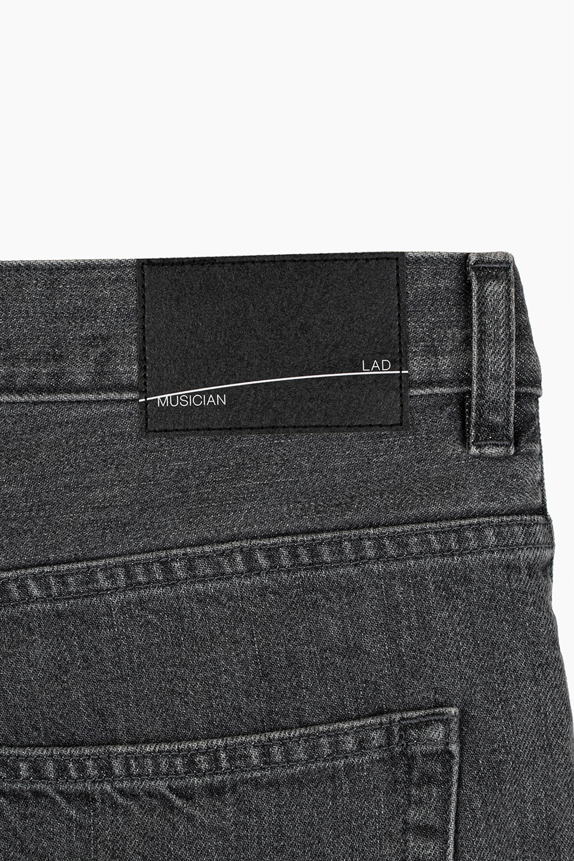 脇線位置に裏からピンタックステッチを入れ、ブリーチ加工後にステッチをほどくことで線状に色を残しています。
