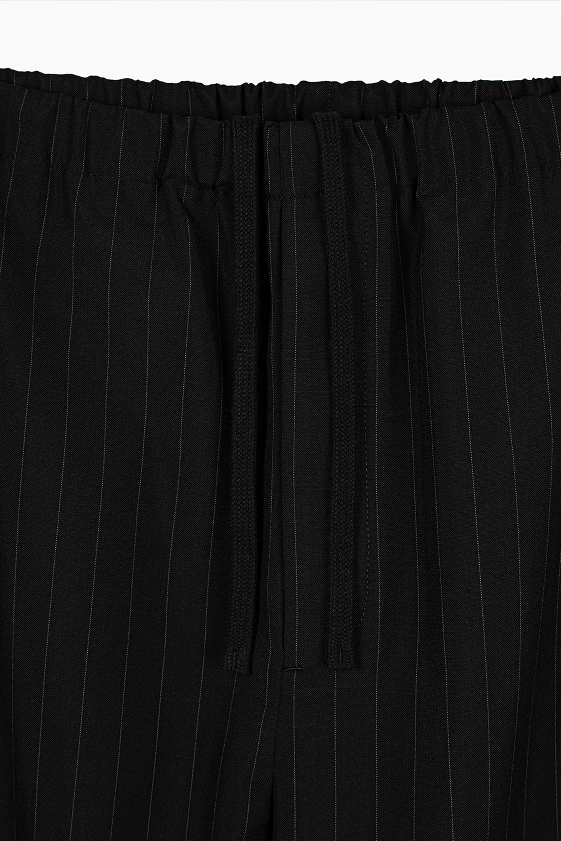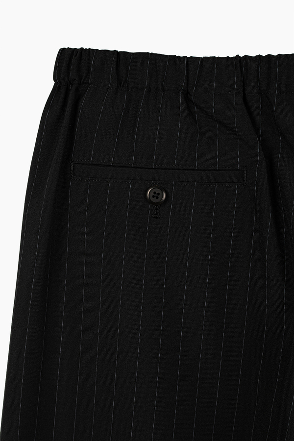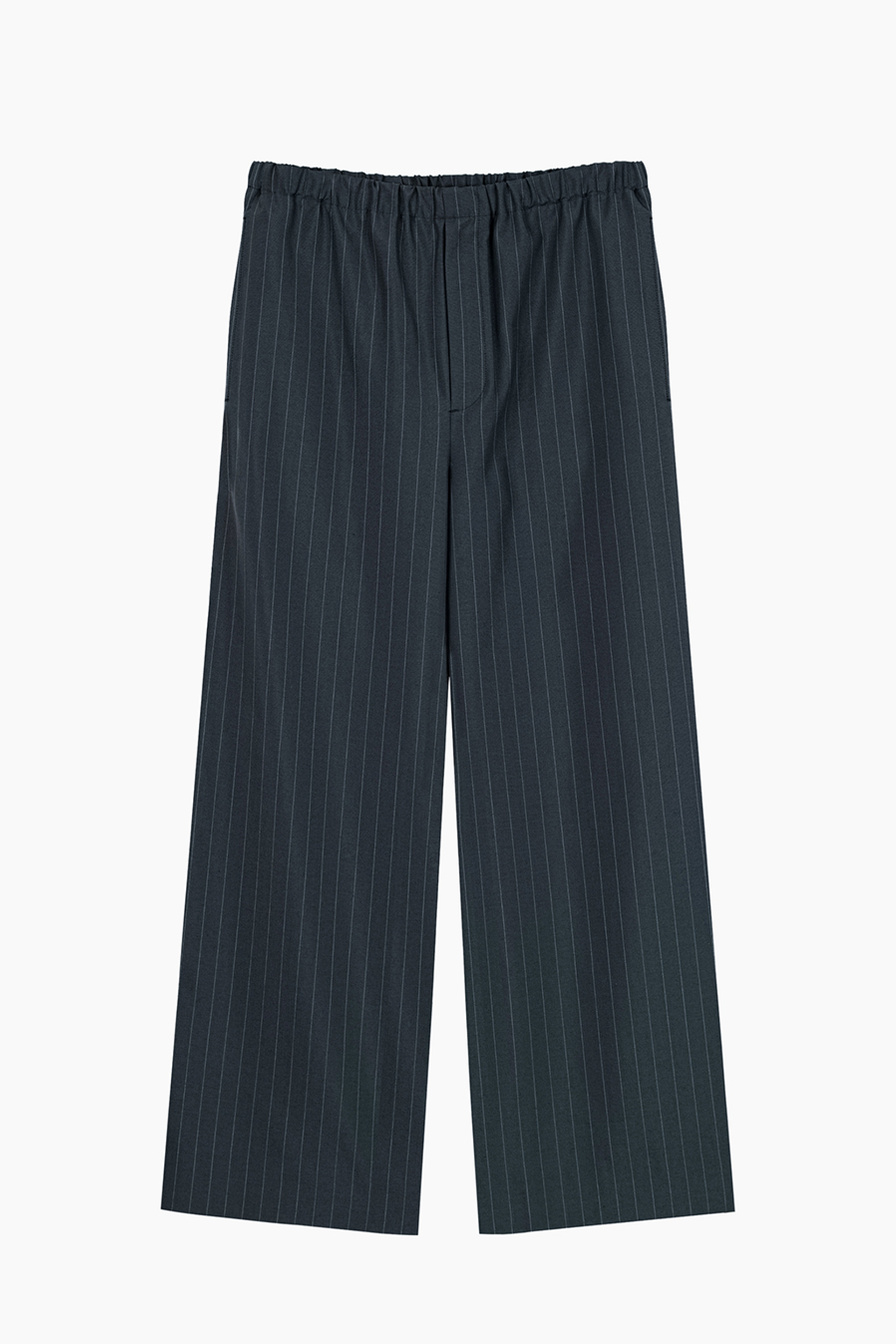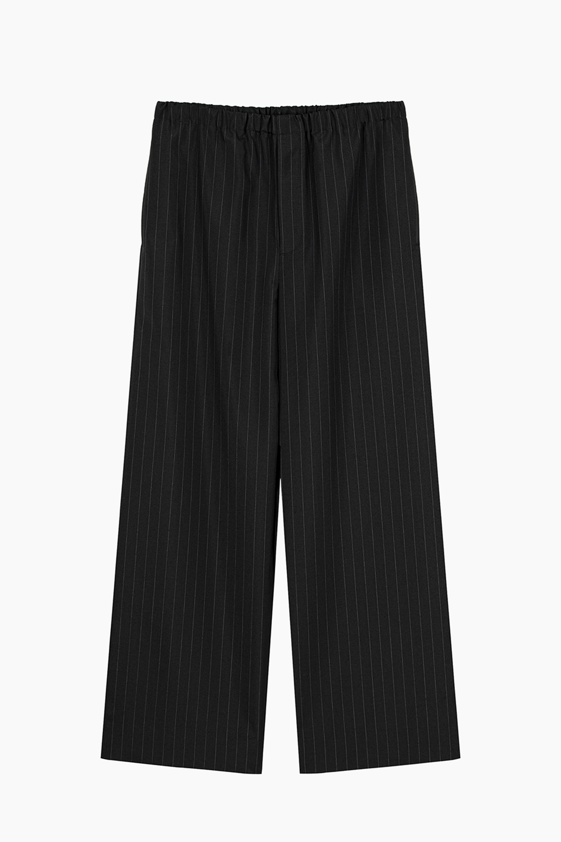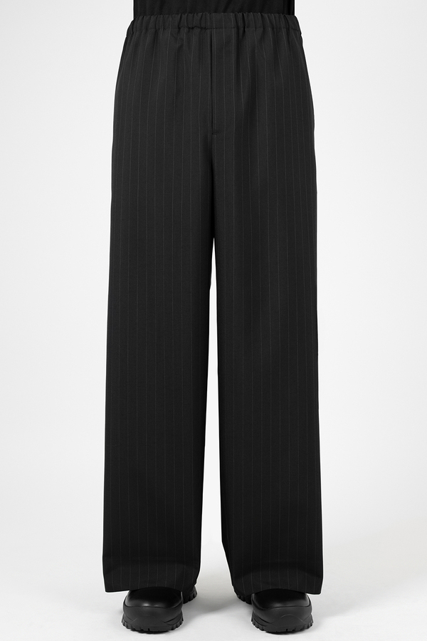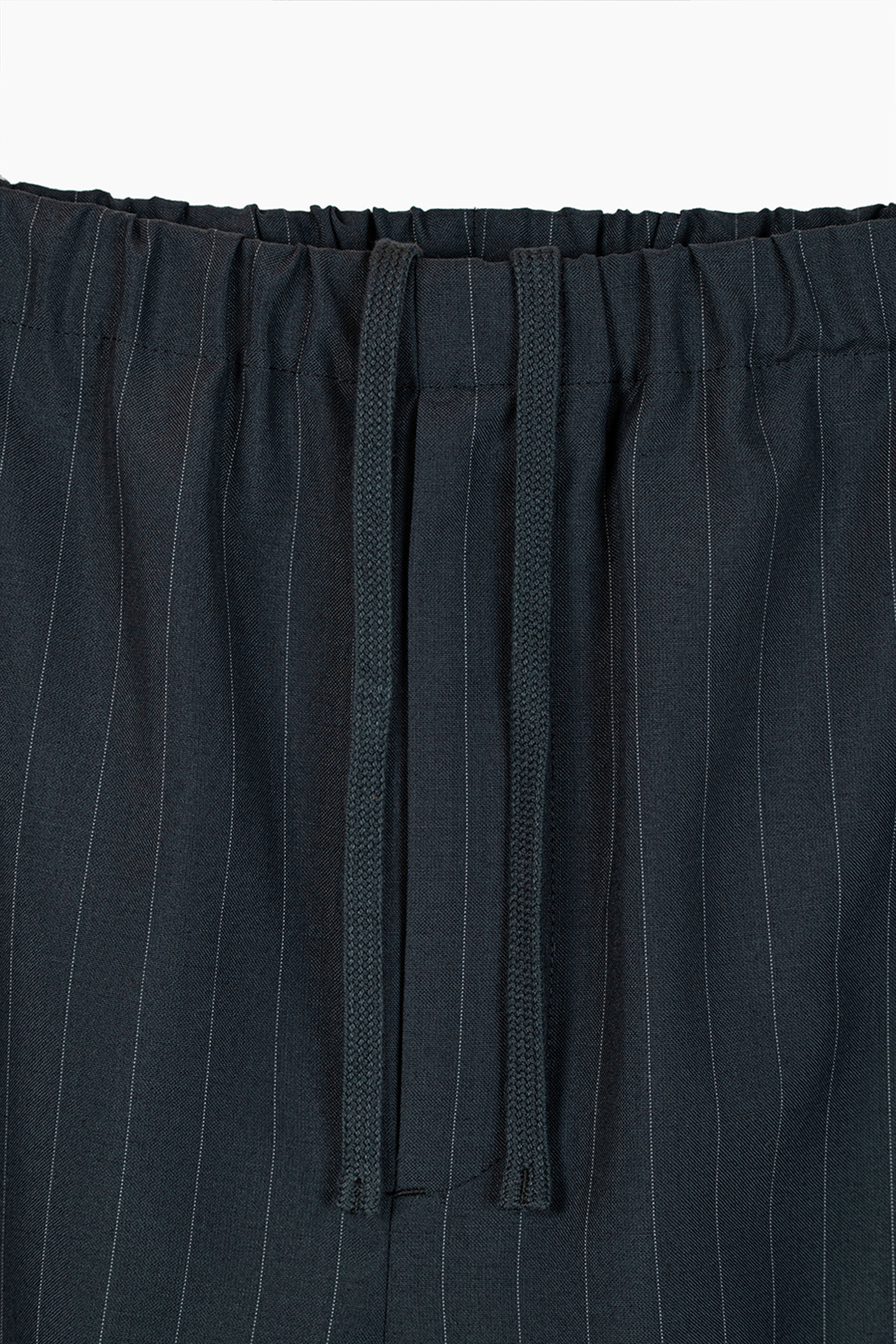 ミニマルなディテールで素材の特徴を活かした、ゆとりのあるルーズフィットパンツです。- T/W POPLIN PINSTRIPE:POLYESTER 85% WOOL 15%