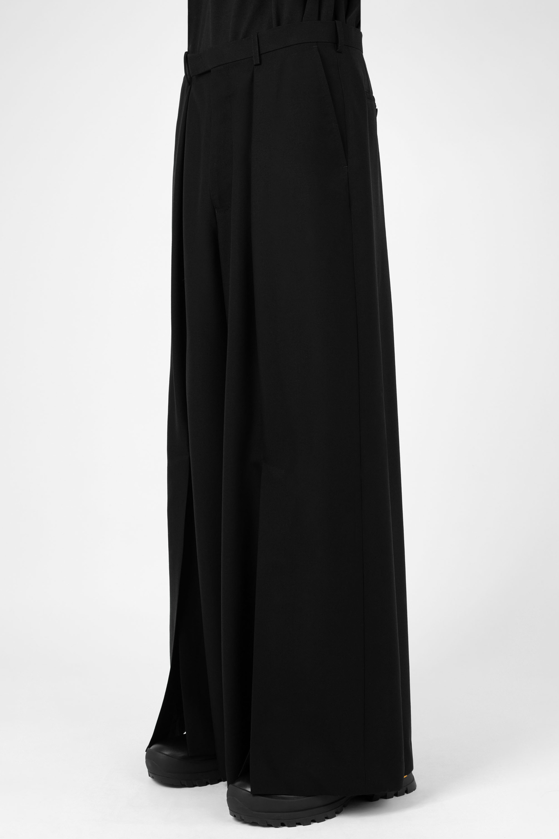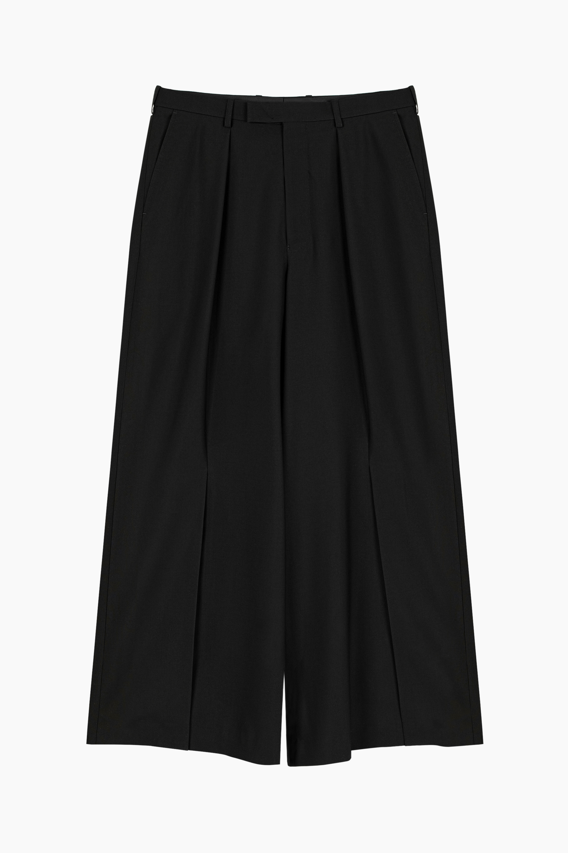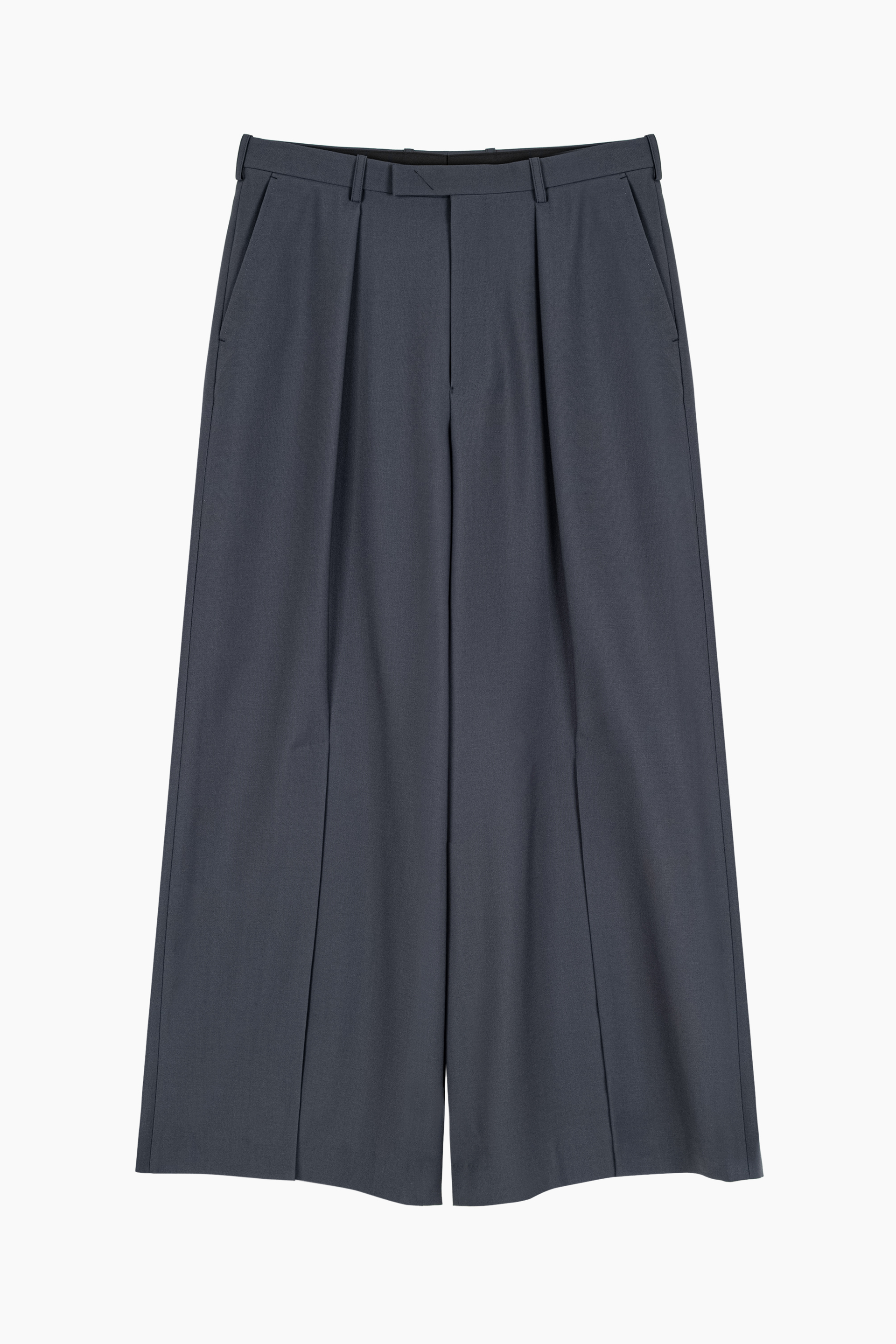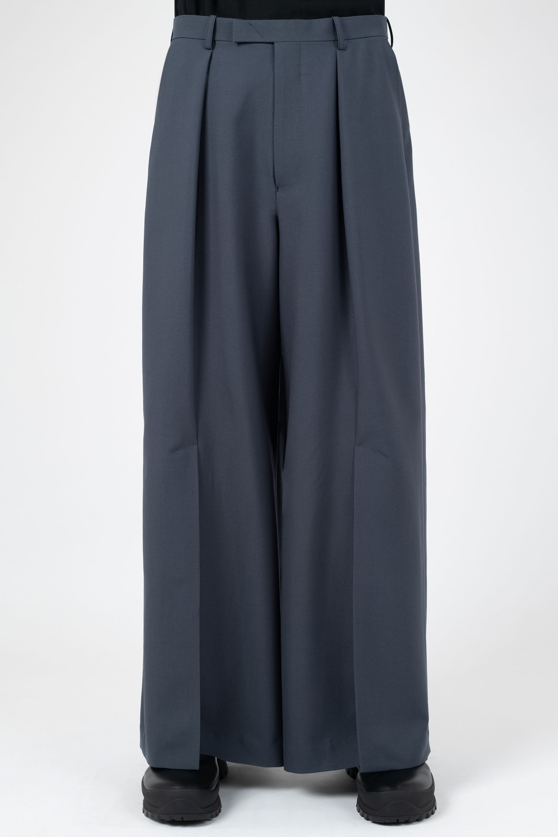 WOOL GABARDINE WIDE STRAIGHT SLACKS