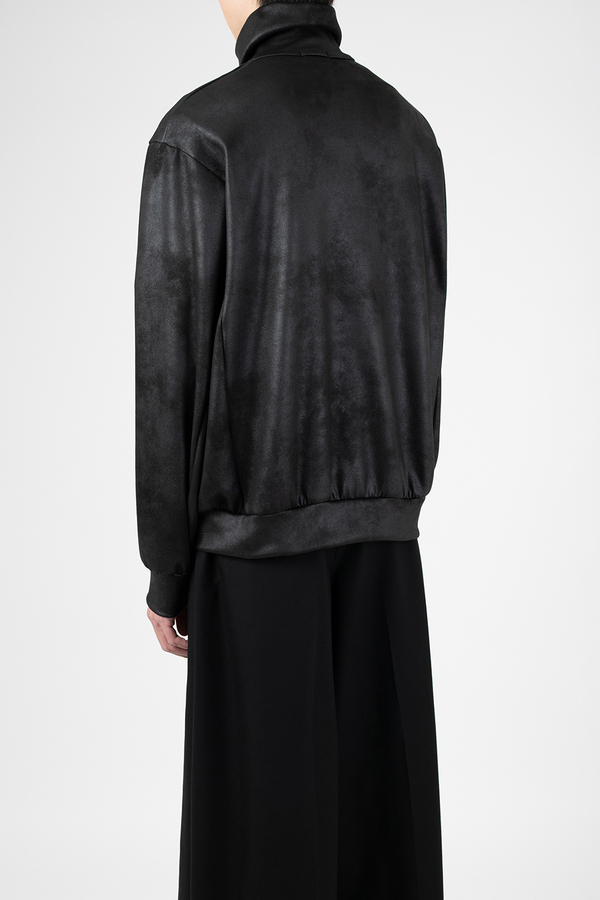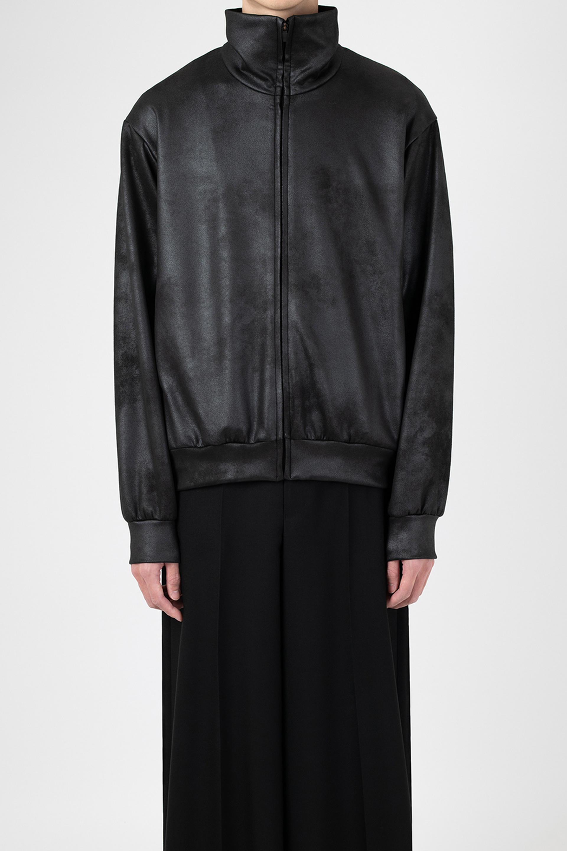 レザーライクなジャージ素材を使用したトラックジャケット。