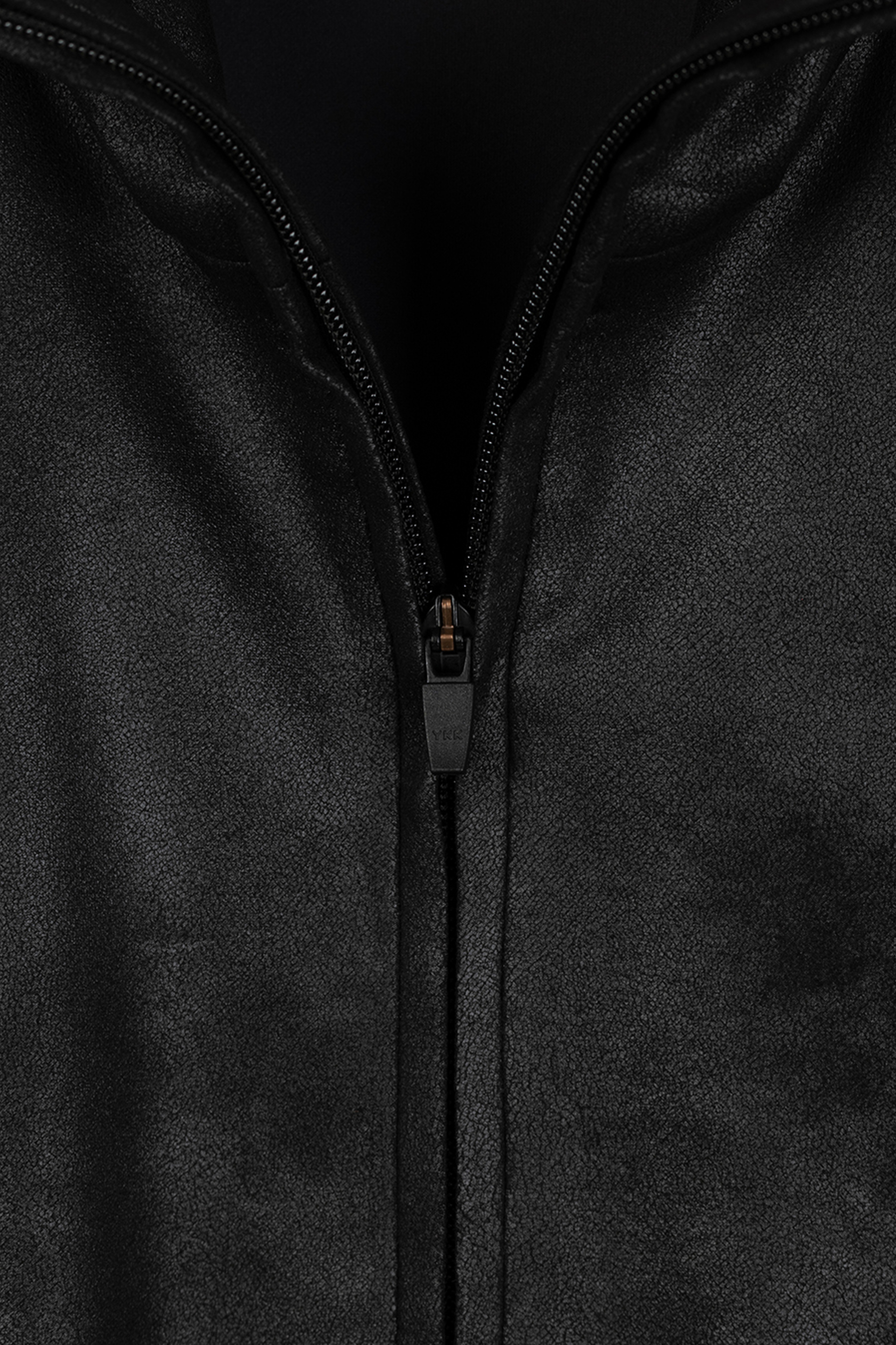 STRETCH FAUX LEATHER JERSEY TRACK JACKET