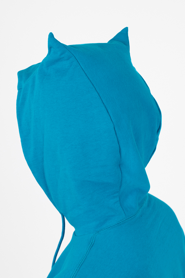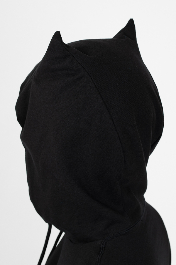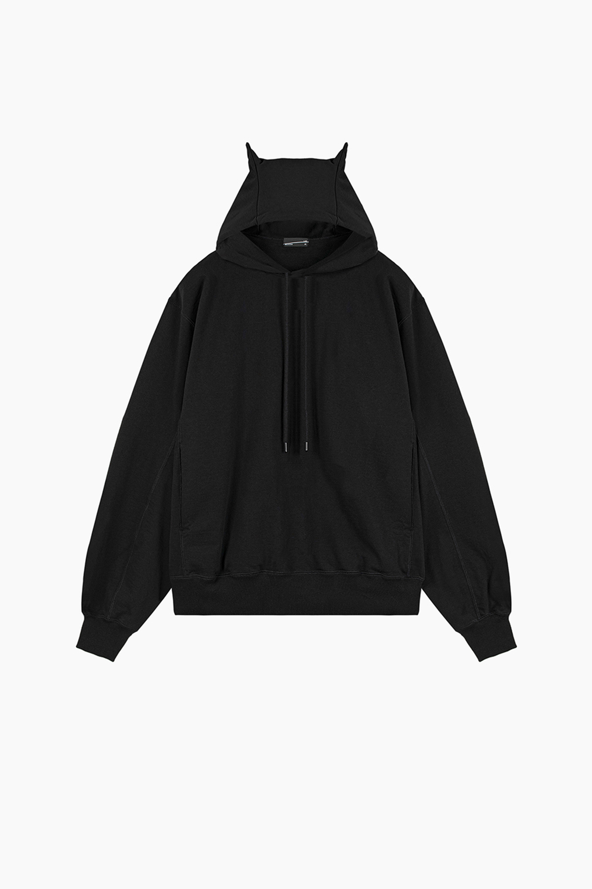 フードの形は、悪魔のツノをイメージしたデビルフードになっています。- 24G LOOP BACK CLOTH :COTTON 100%