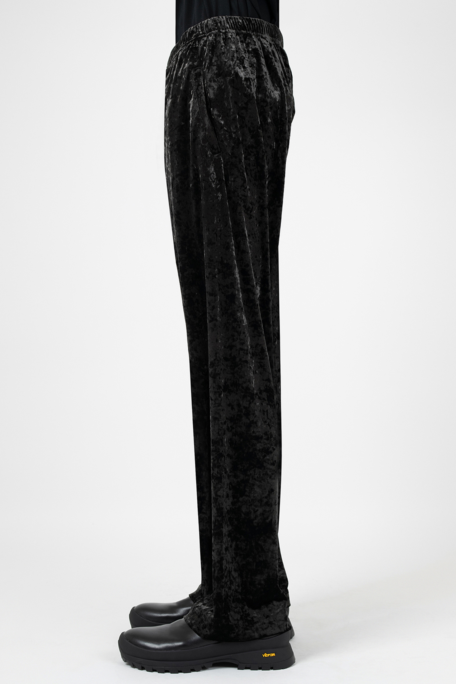 ヒップから裾にかけてほどよくゆとりを持たせた、コンフォートフィットのストレートシルエットです。- CRUSHED VELOUR:POLYESTER 57% NYLON 32% POLYURETHANE 11%