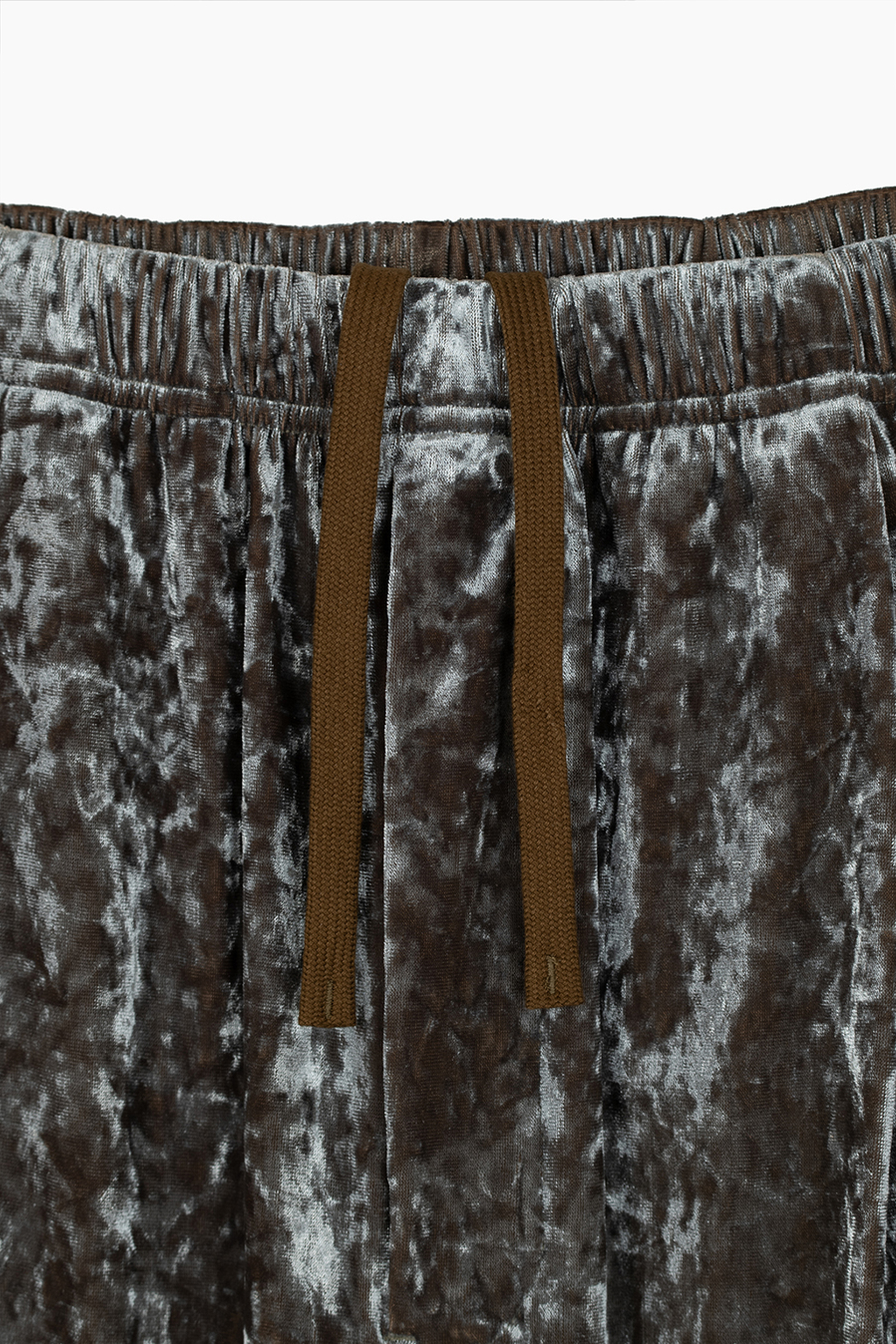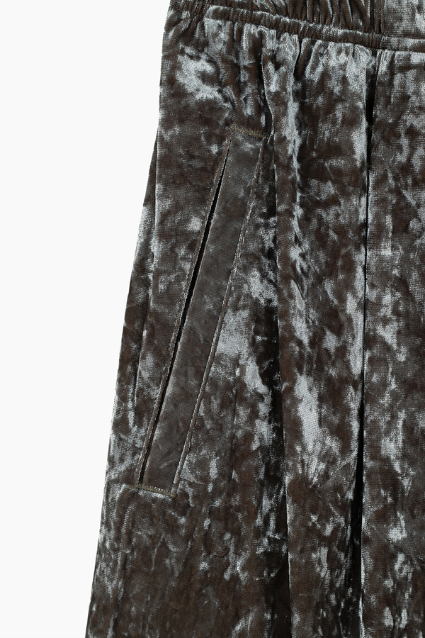 裾にかけて自然なドレープが入る、程よいワイドレッグシルエットです。- CRUSHED VELOUR:POLYESTER 57% NYLON 32% POLYURETHANE 11%