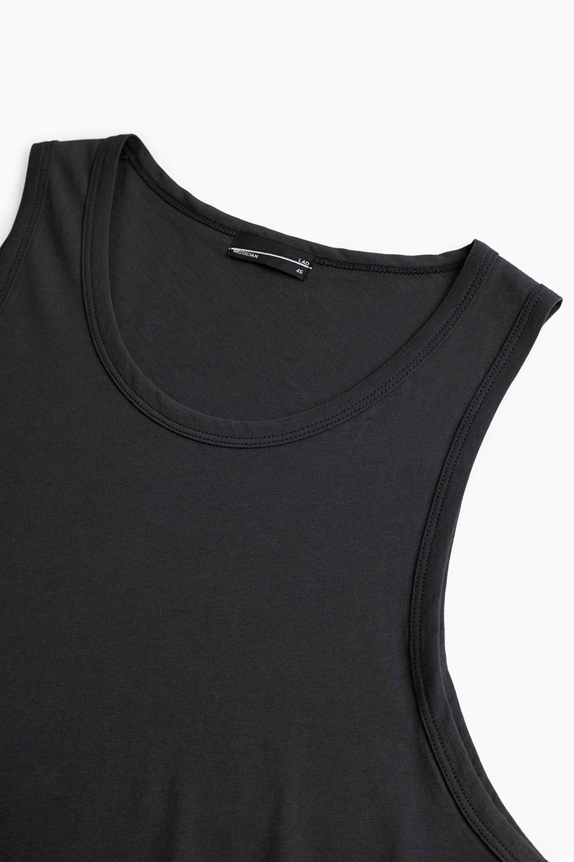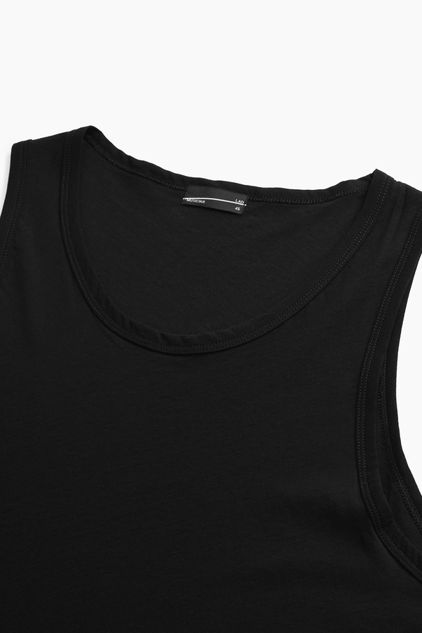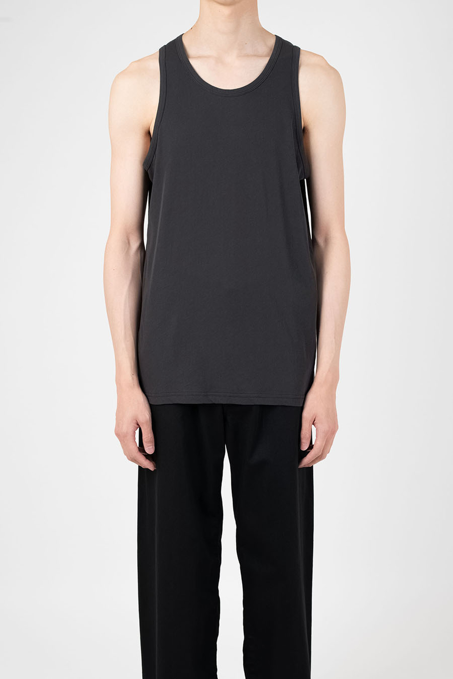 カリフォルニア産サンホーキン綿の強撚糸で編み立てた天竺素材を使用したタンクトップ。