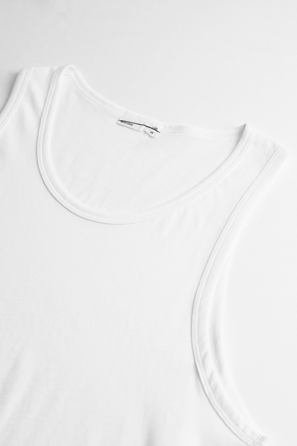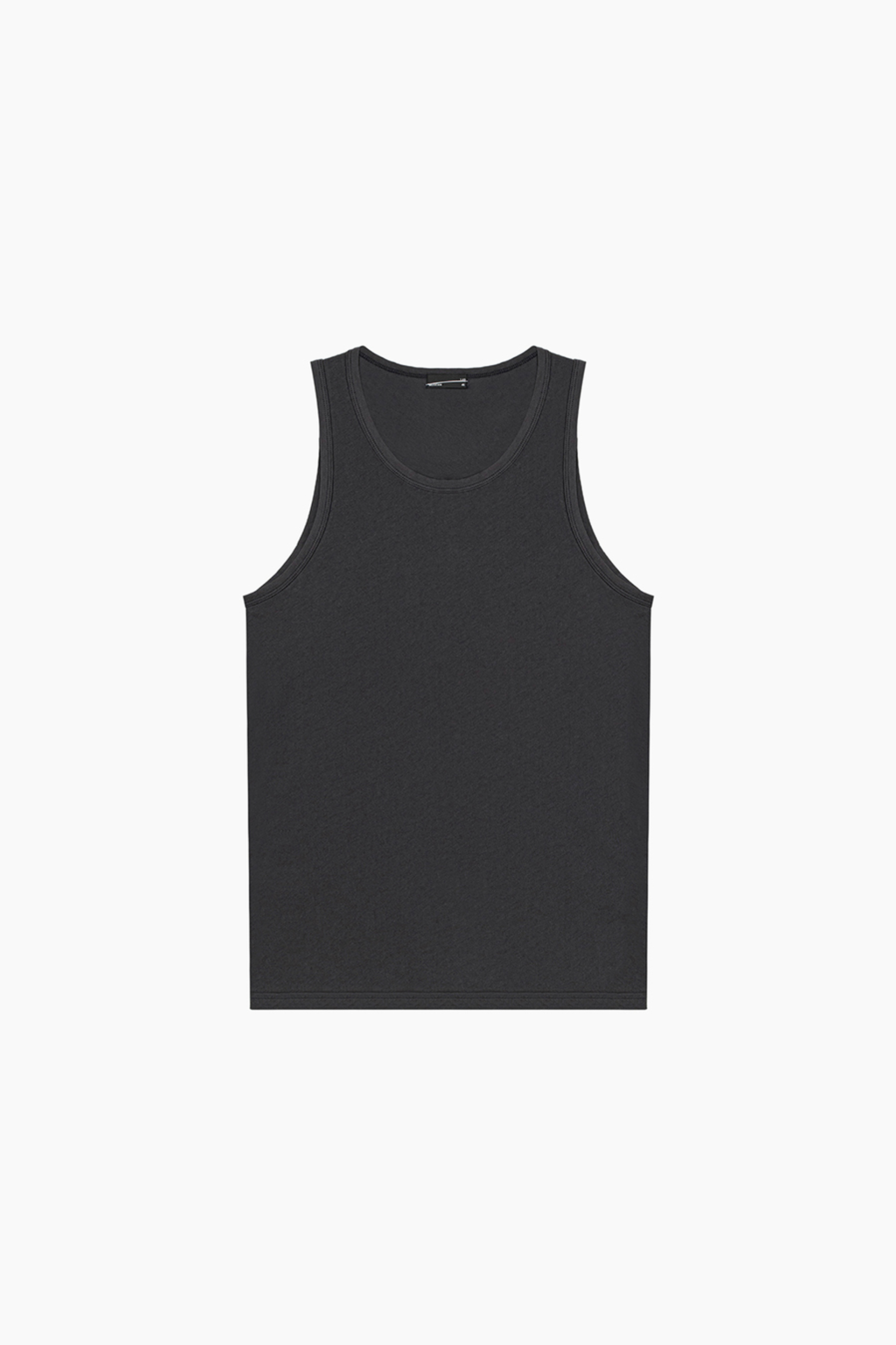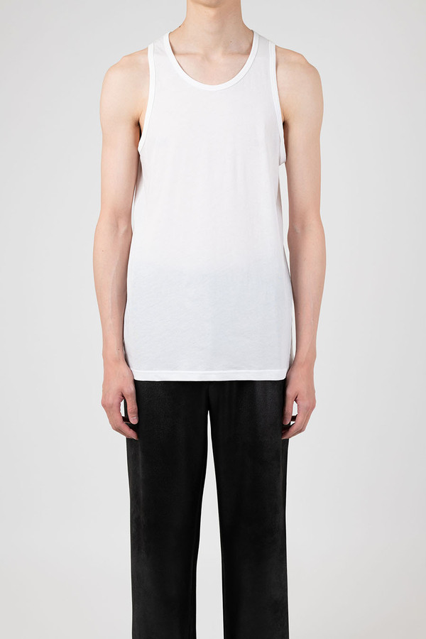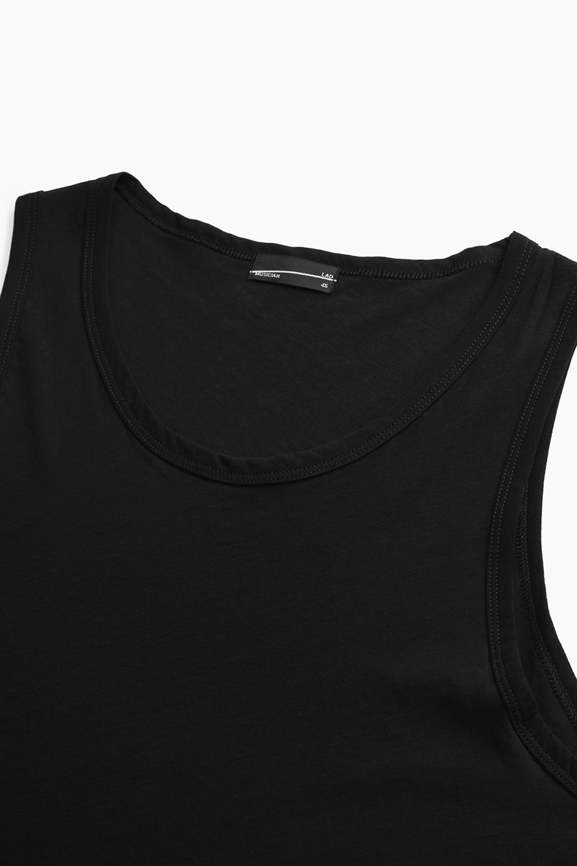 カリフォルニア産サンホーキン綿の強撚糸で編み立てた天竺素材を使用したタンクトップ。