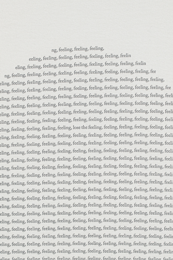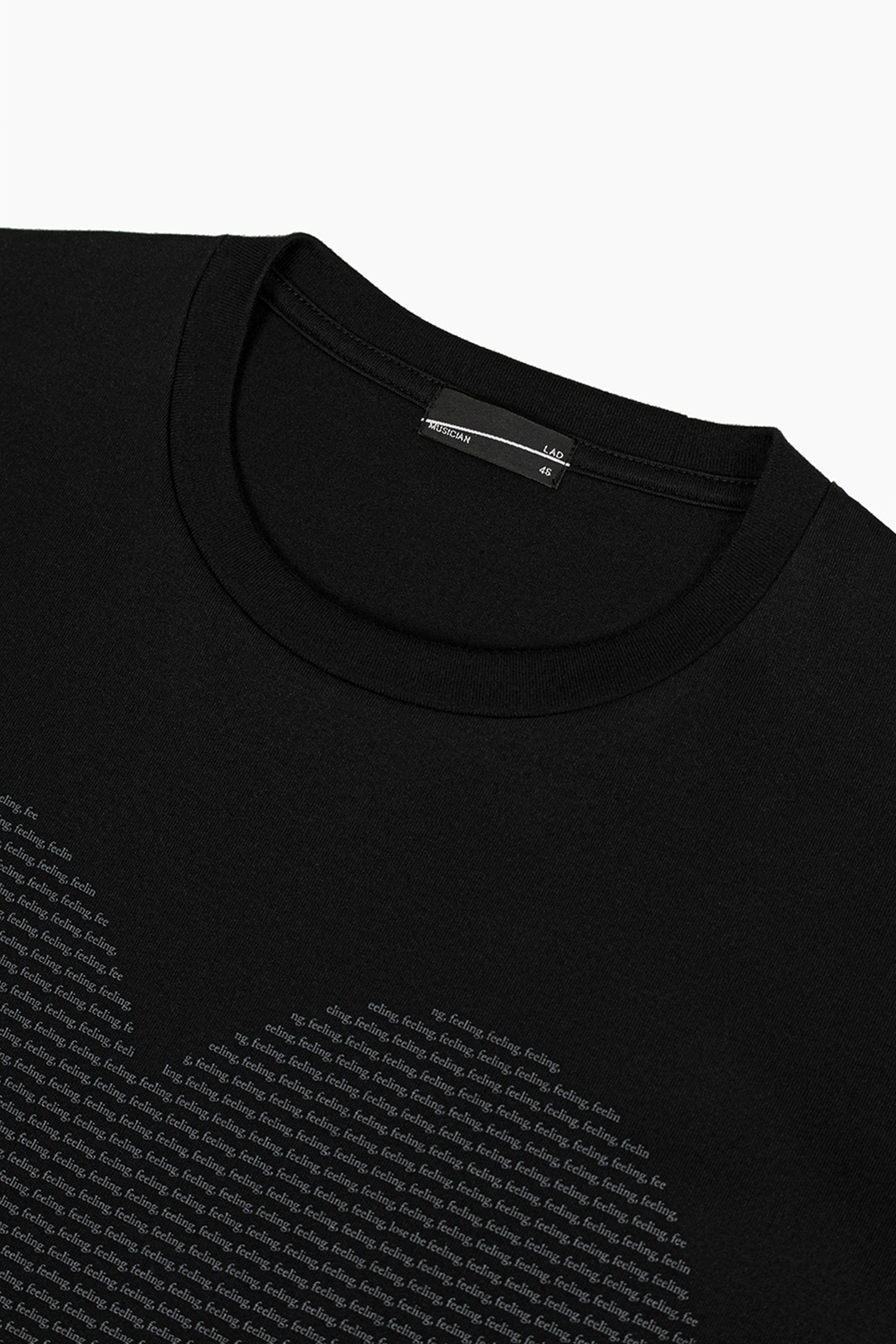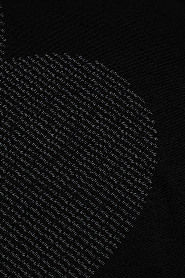 細かい「feeling」の文字で構成されたハートの中にシーズンのキーワードを忍ばせた柄をプリントしています。