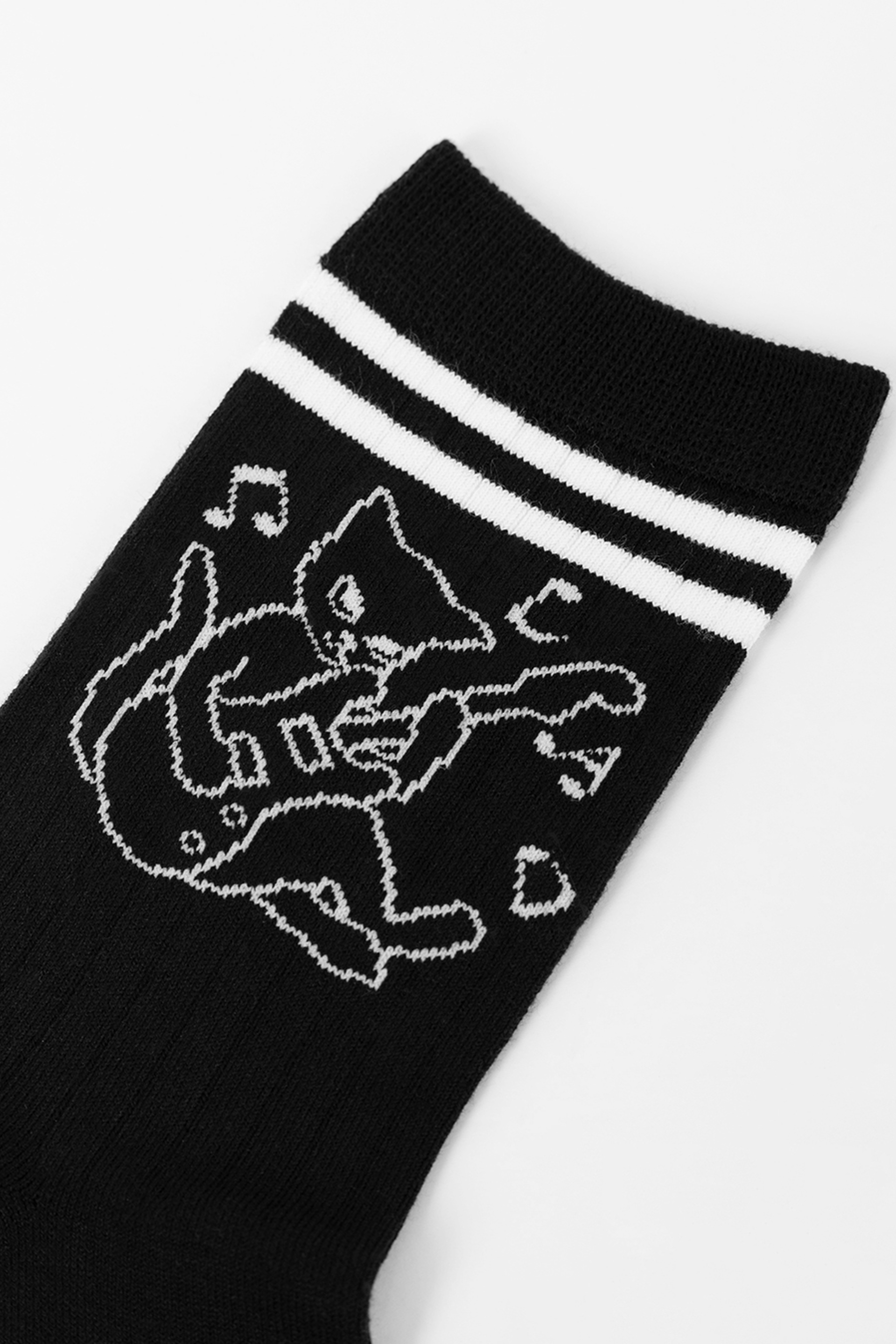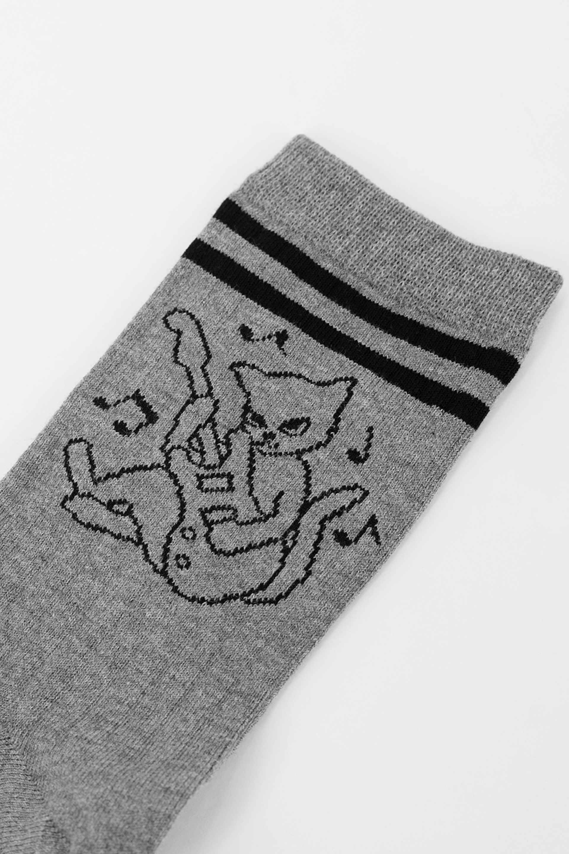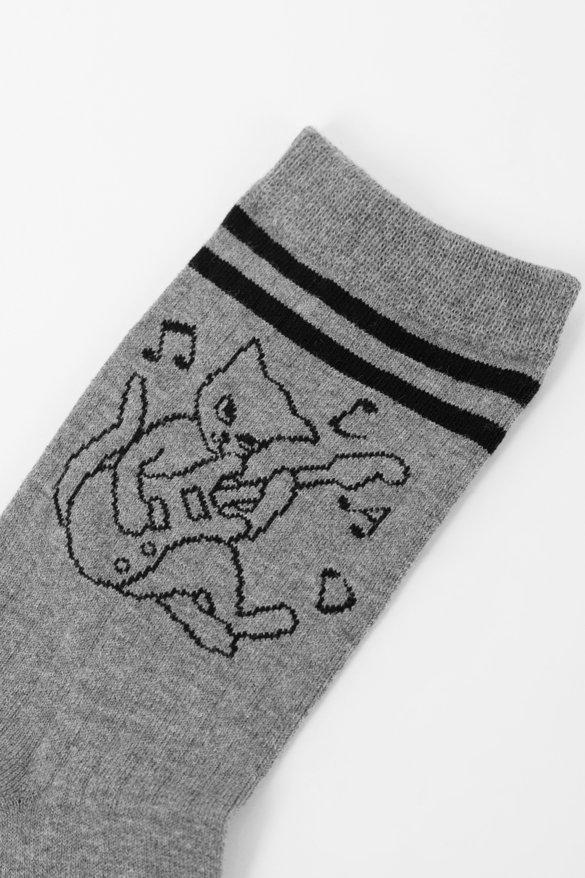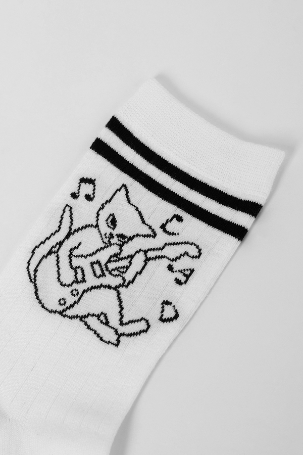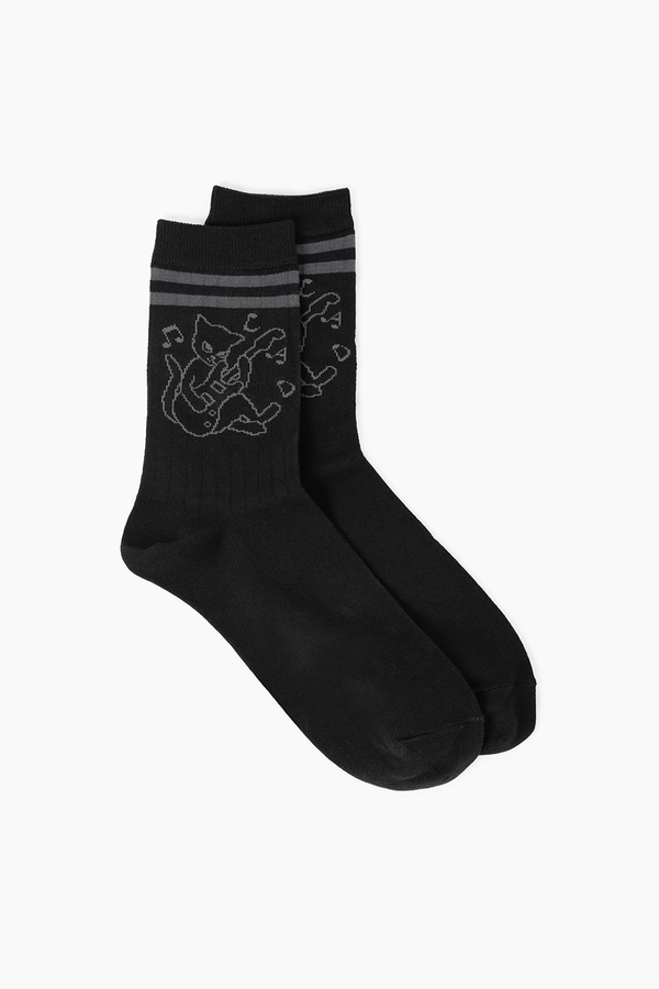ギターを弾く猫のモチーフをジャガードで繊細に表現しています。