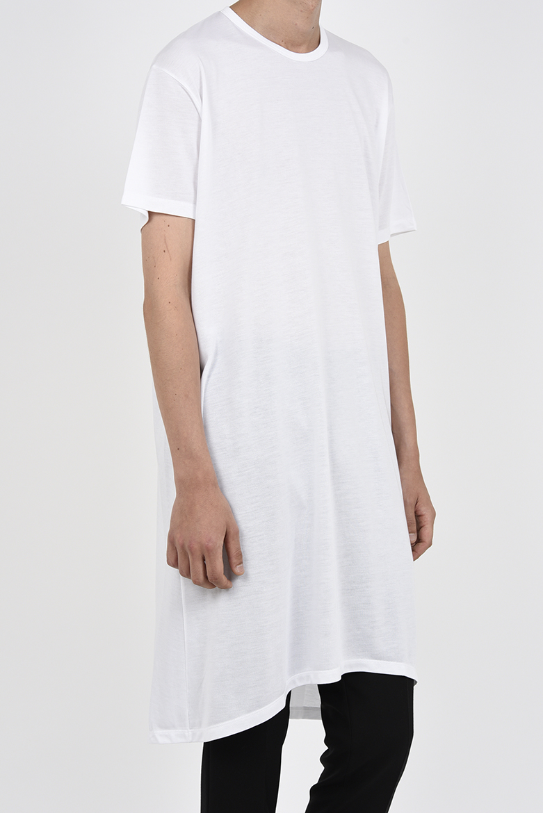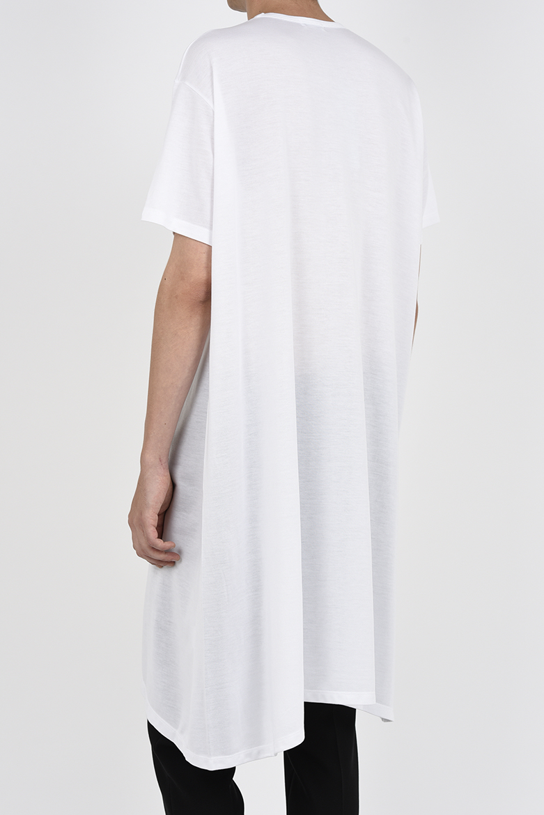 ドレープ性の強い天竺素材を使用したフレアロングTシャツ。