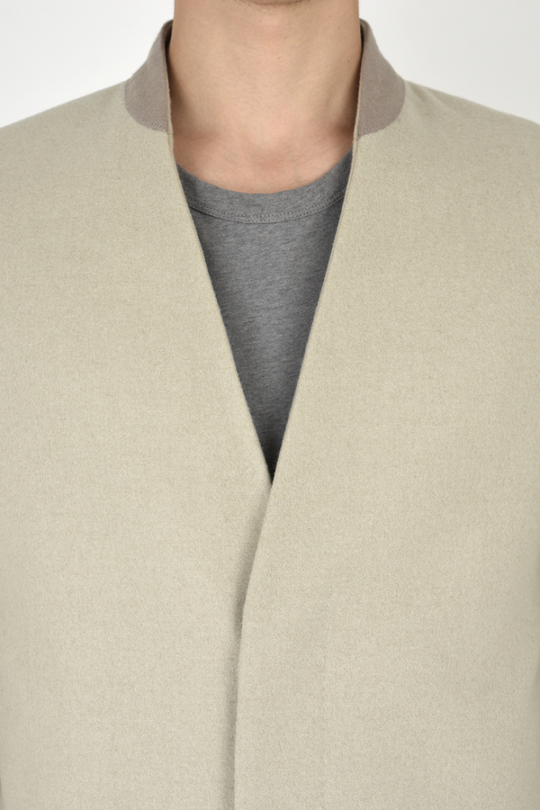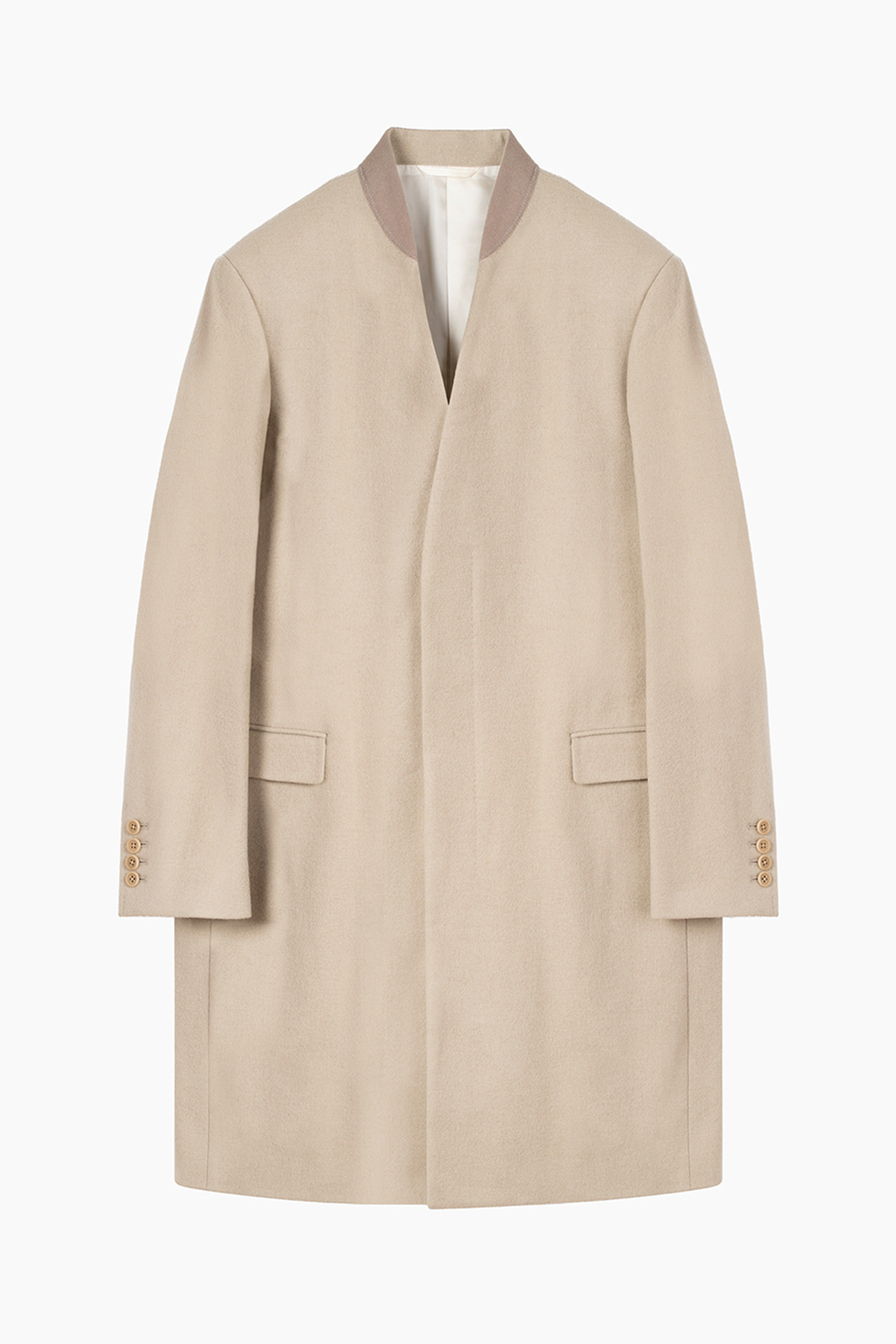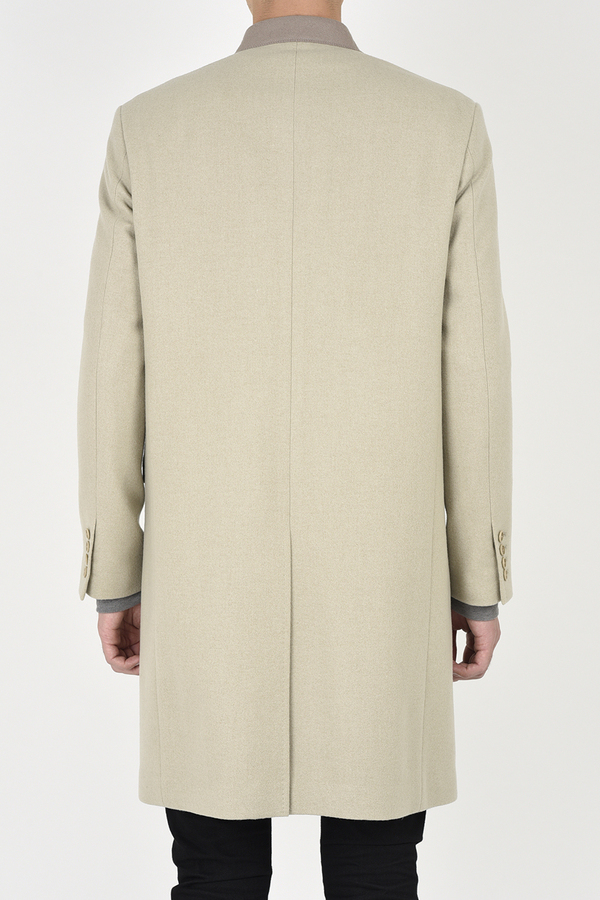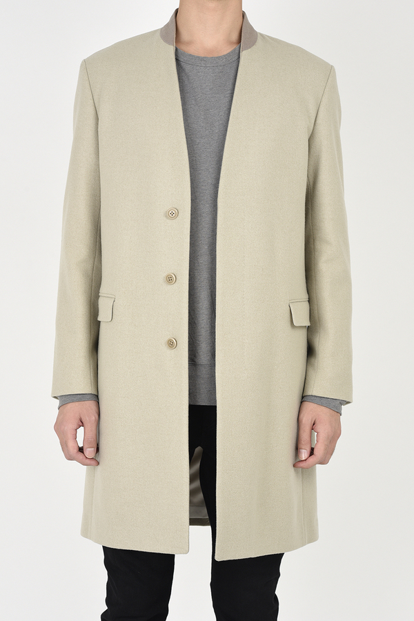 きれいな表面と柔らかさを持ったメルトン素材を使用したカラーレスチェスターコート。