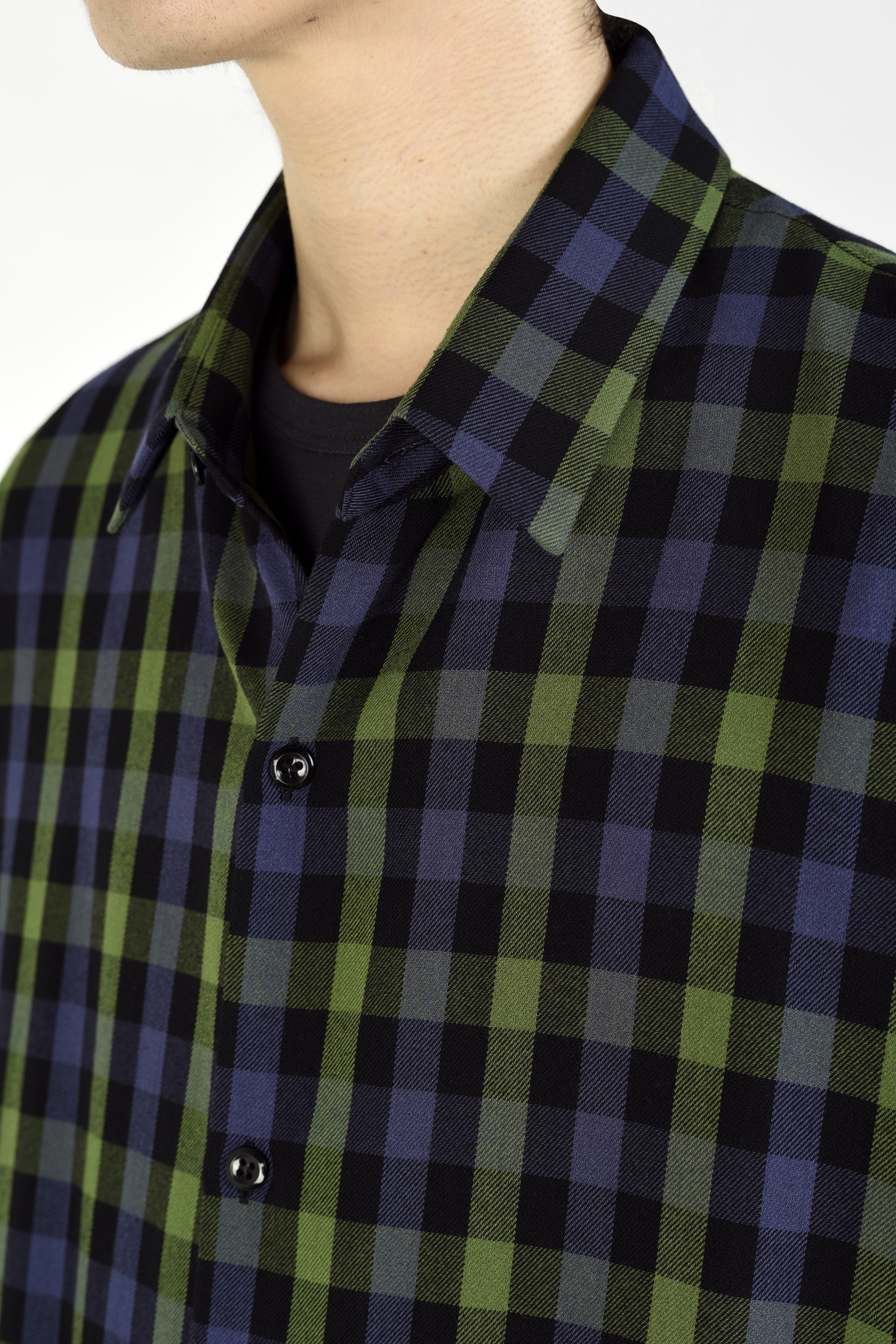 ガンクラブチェック柄のモダール素材を使用したビッグシャツ。